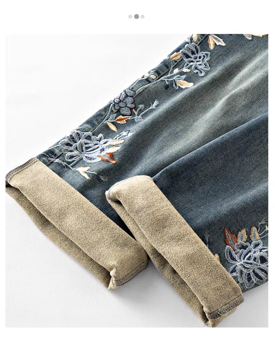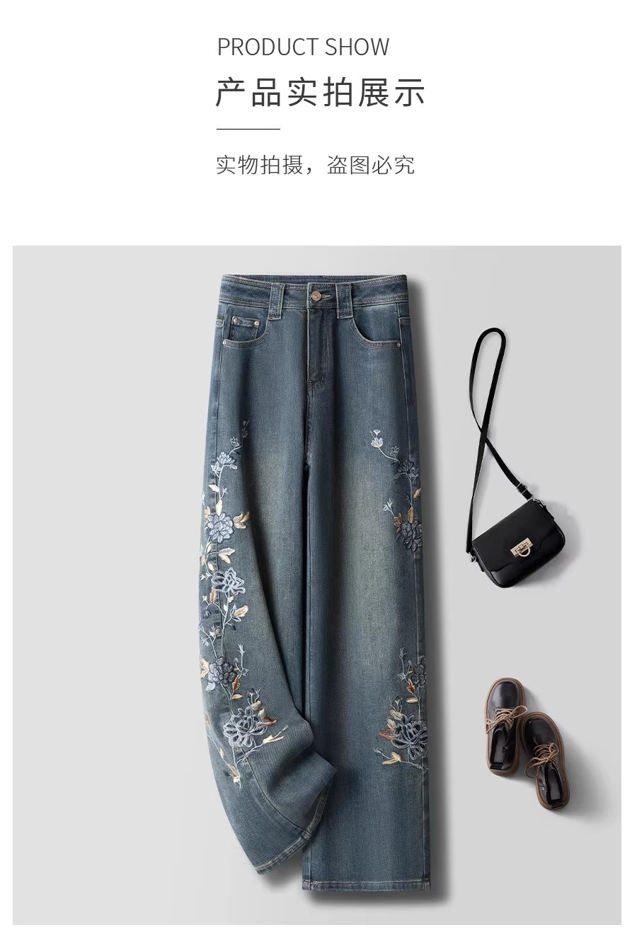 중국풍 자수 데님 슬림핏 와이드 팬츠 여성용 봄 가을 2026년 신상 디자인 감각적인 패셔너블 하이웨이스트 스트레이트 팬츠스토어 가기