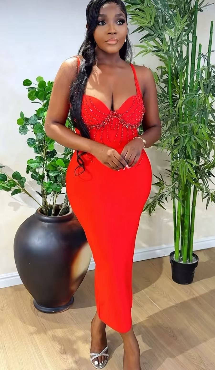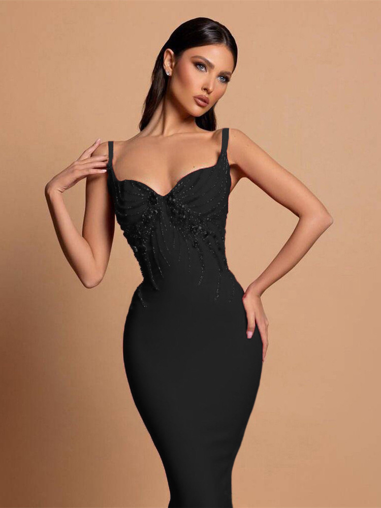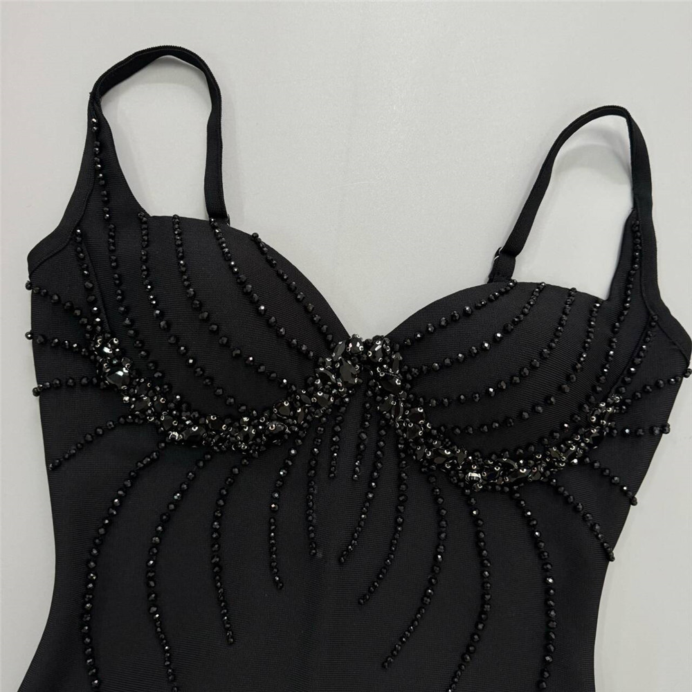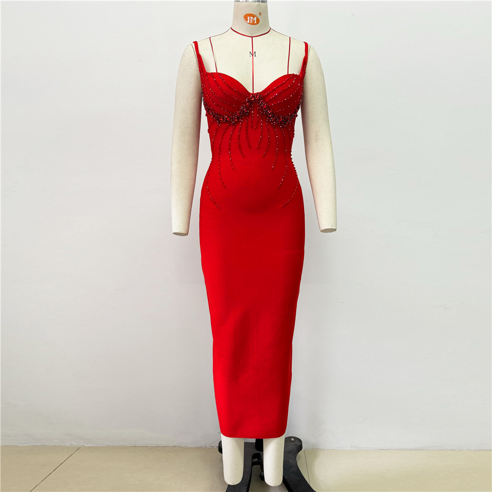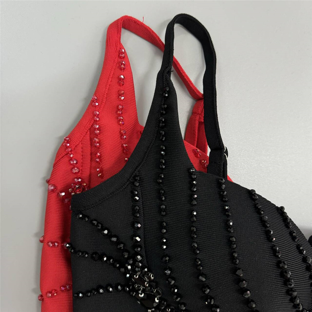유럽과 미국의 국경 간 패션 연회 원피스 원피스 새로운 섹시한 V 넥 스트랩 붕대 원피스 구슬 연예인 파티