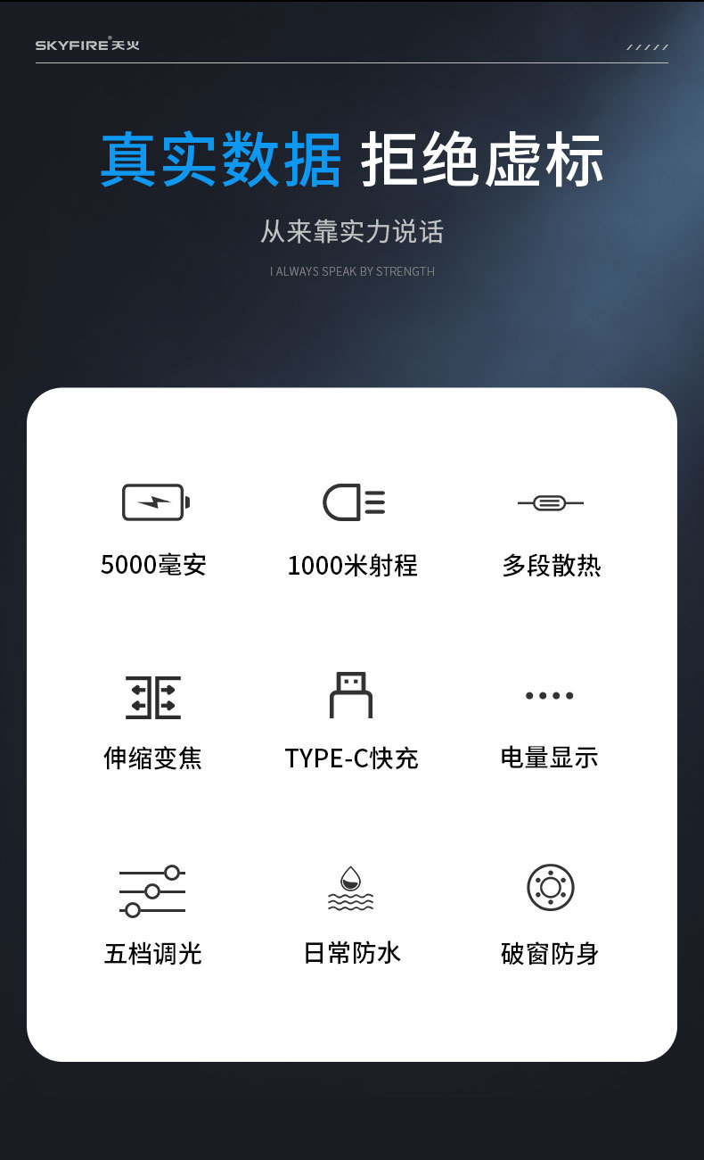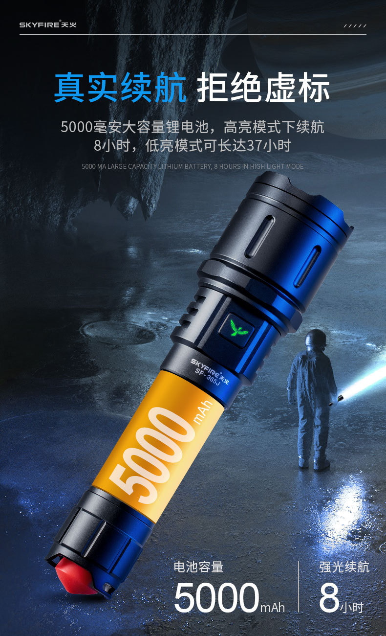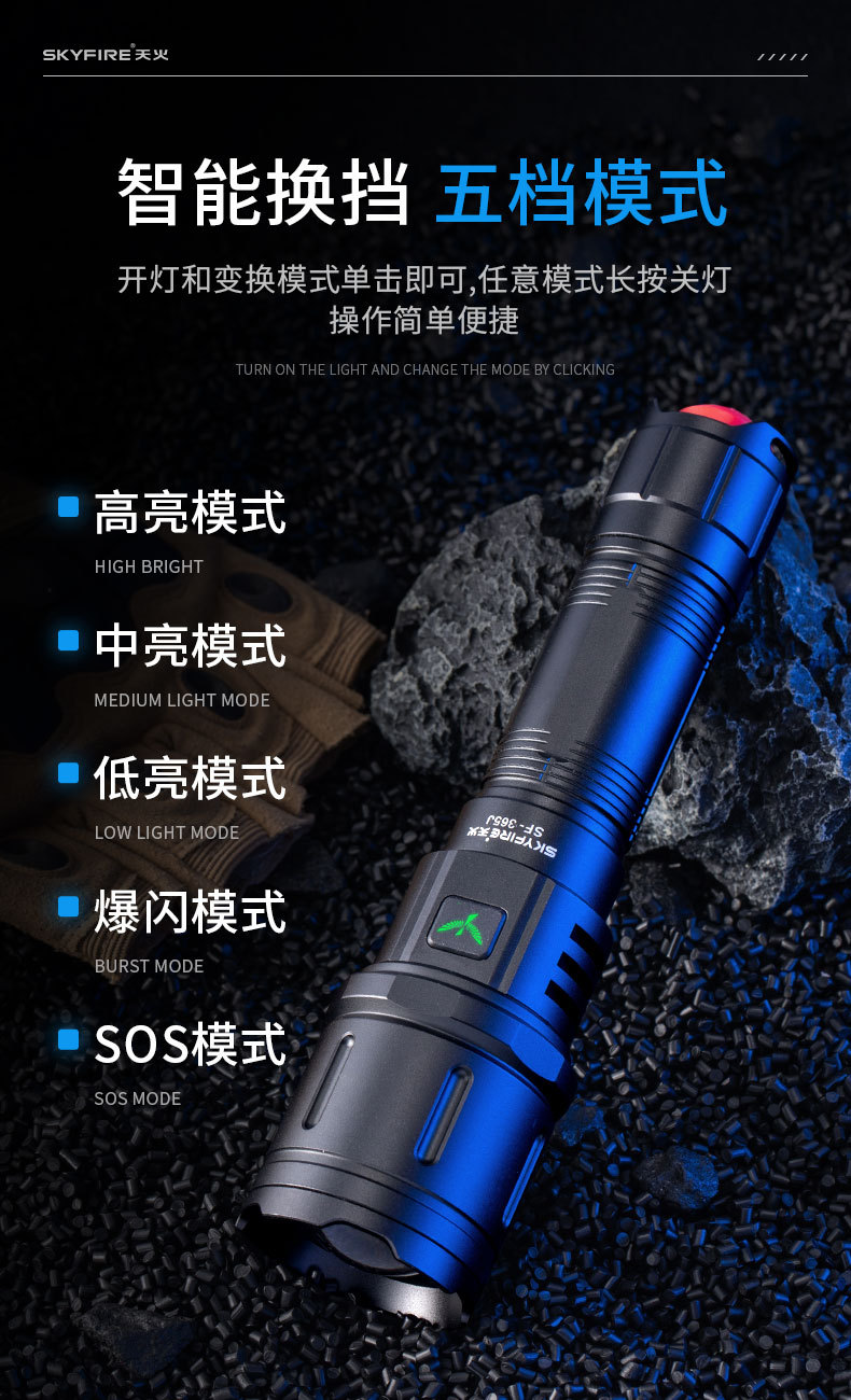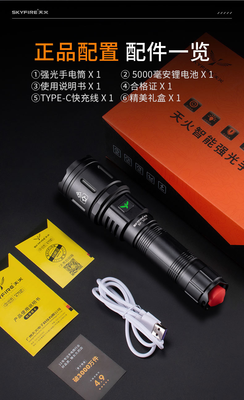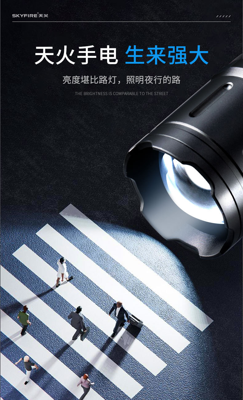 Skyfire 슈퍼 밝은 손전등 충전식 장거리 야외 가정용 비상 스포트라이트 줌 업그레이드 손전등스토어 가기
