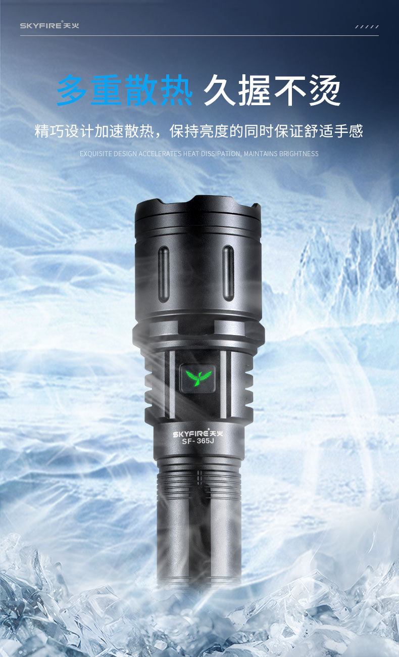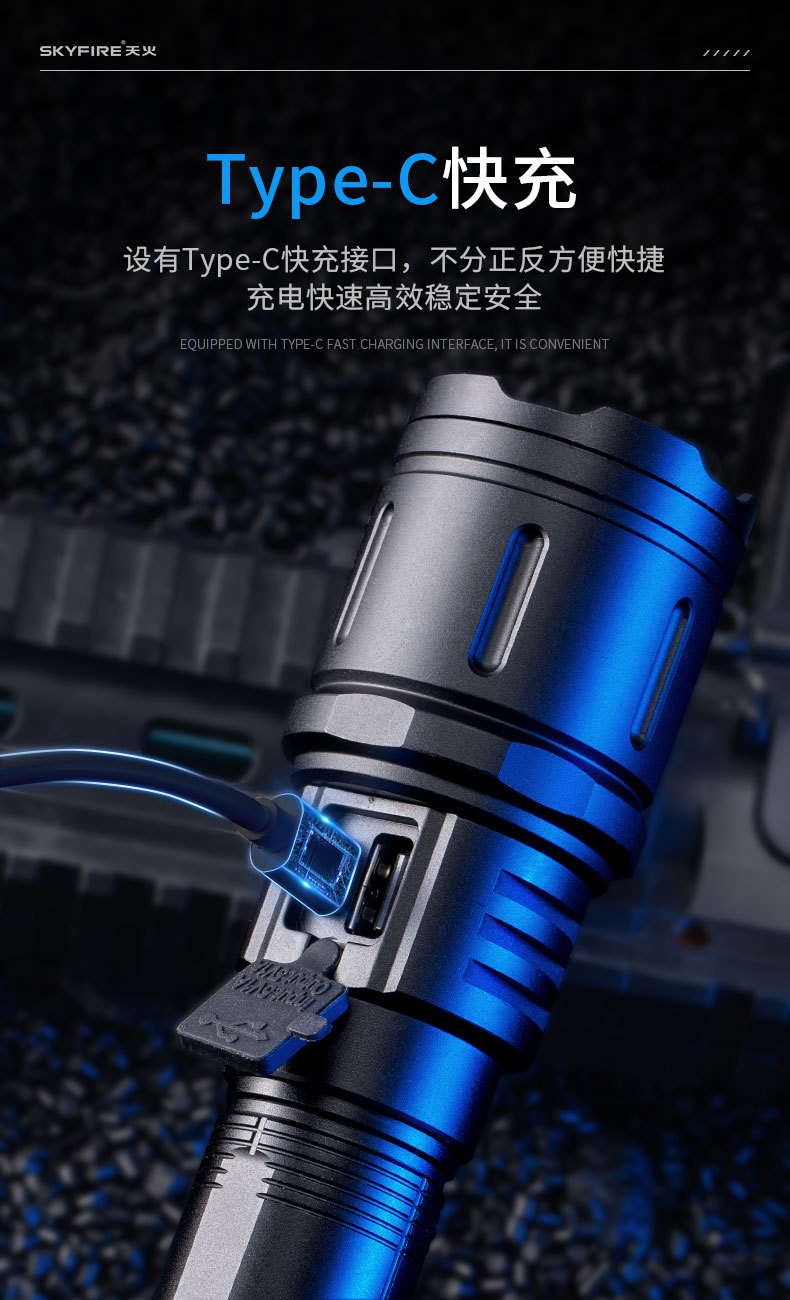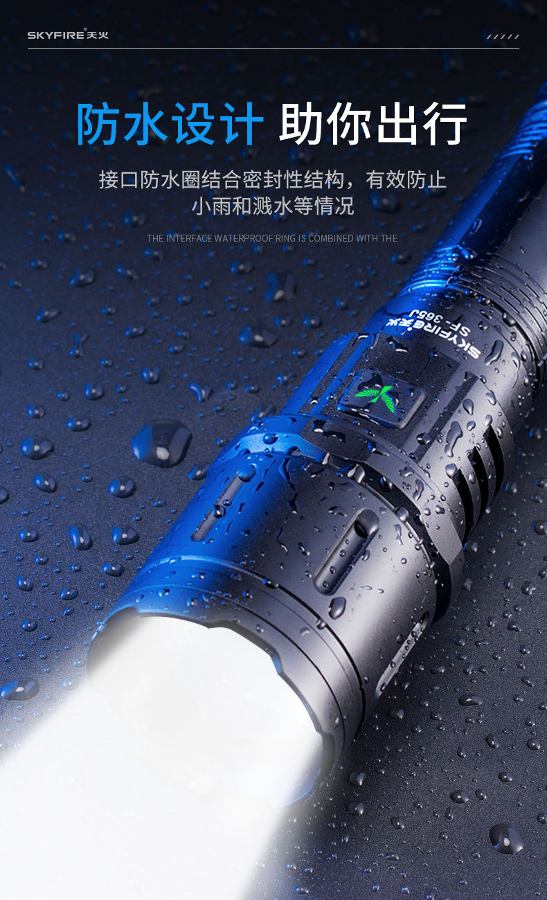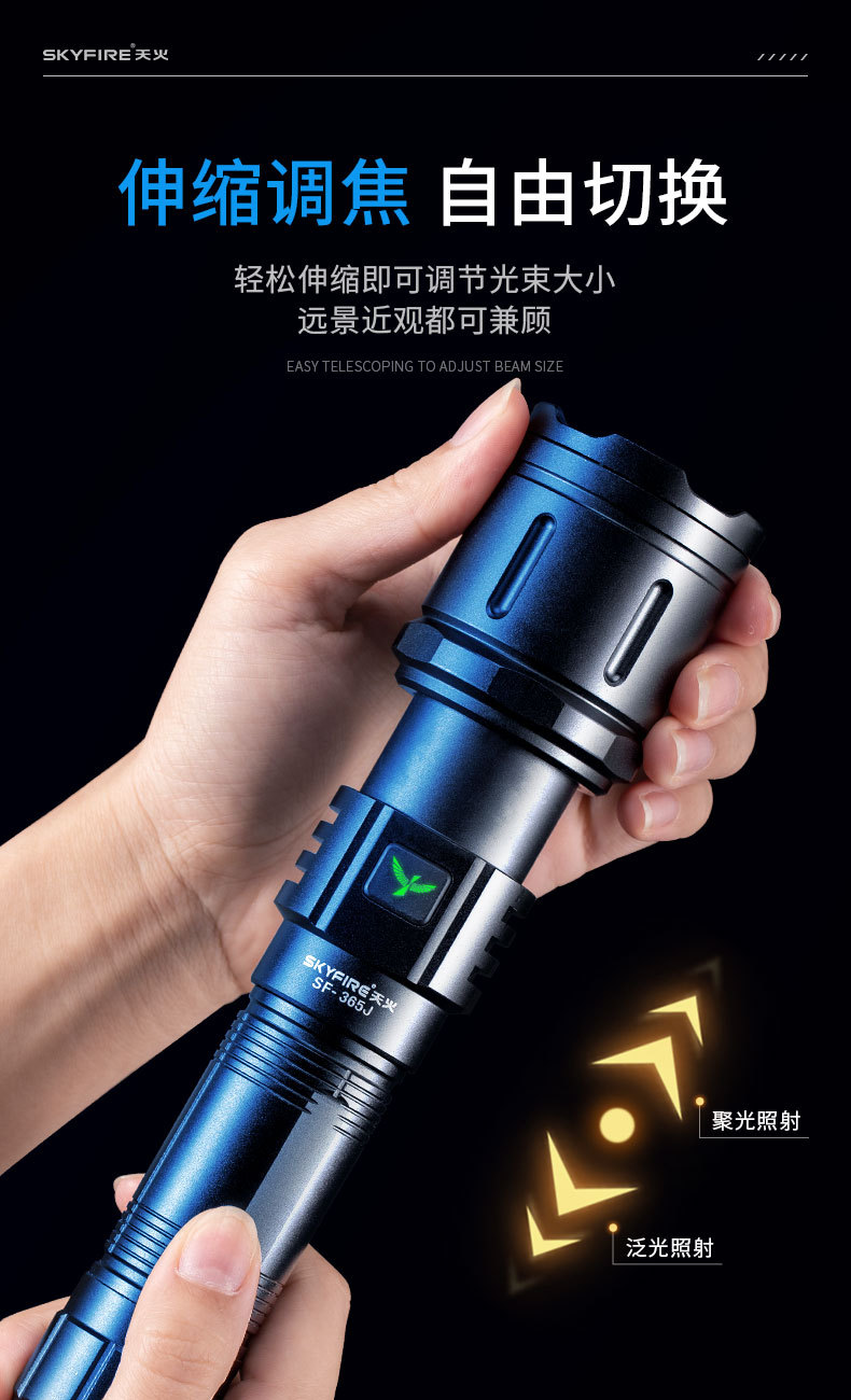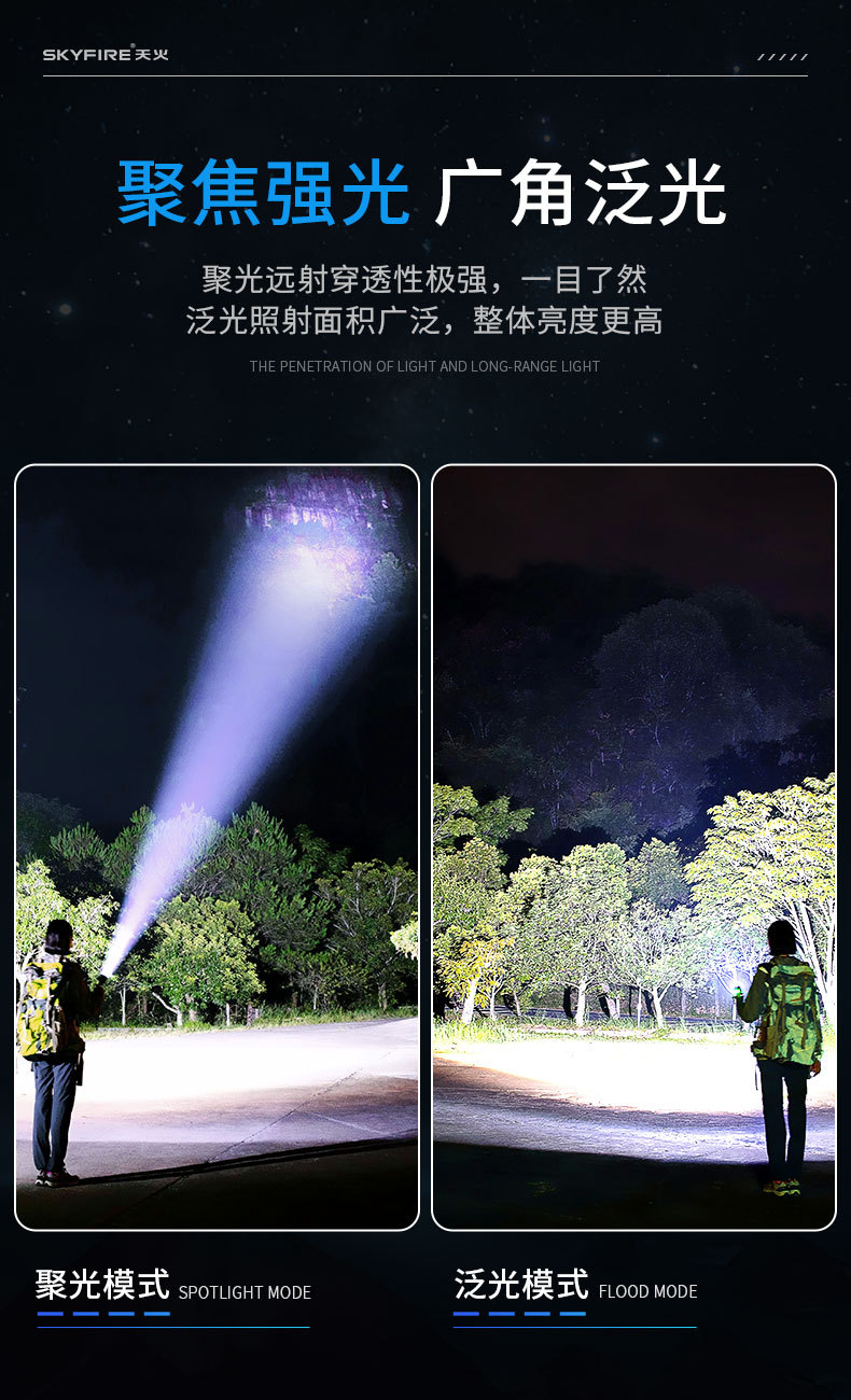 Skyfire 슈퍼 밝은 손전등 충전식 장거리 야외 가정용 비상 스포트라이트 줌 업그레이드 손전등