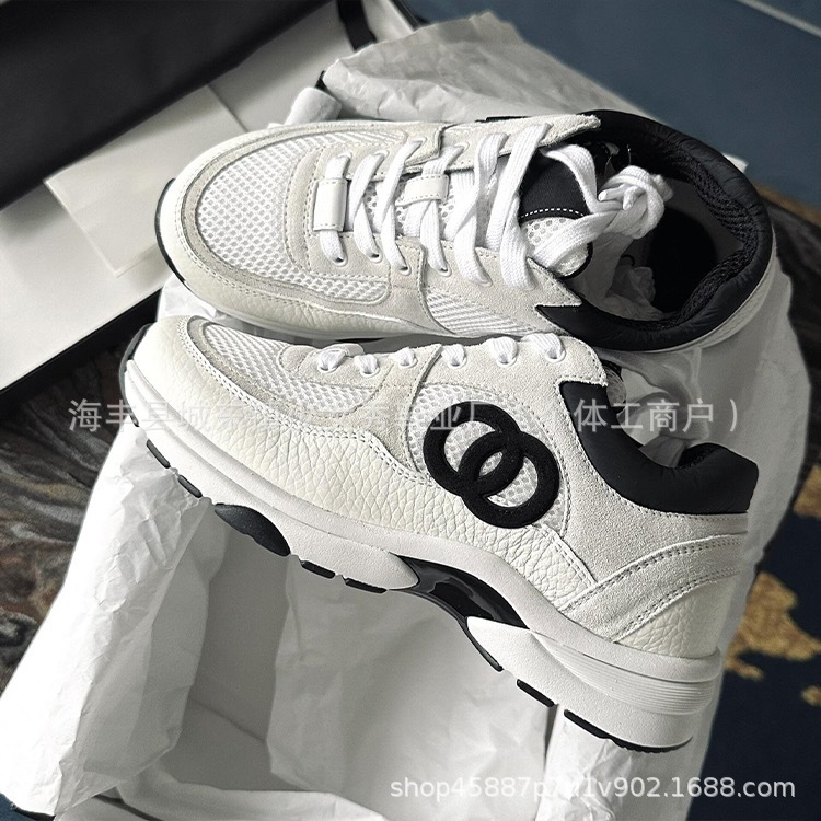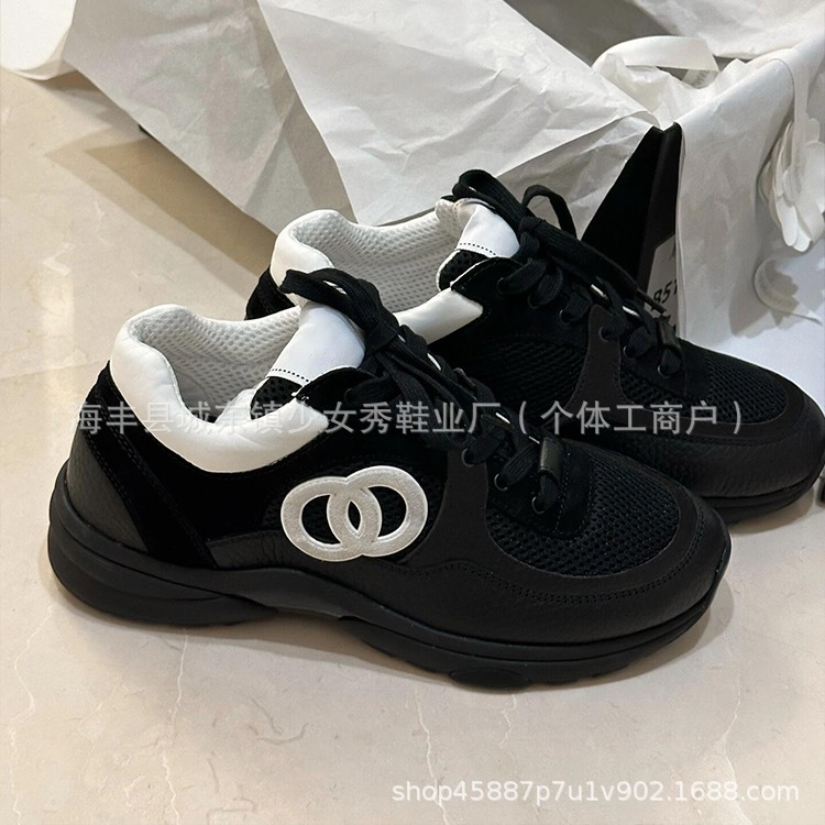 샤넬 스타일 스포츠 캐주얼 신발 여성의 2025 새로운 정품 가죽 메쉬 통기성 높이 증가 두꺼운 하단 레이스 업 컬러 블록 토레 신발스토어 가기