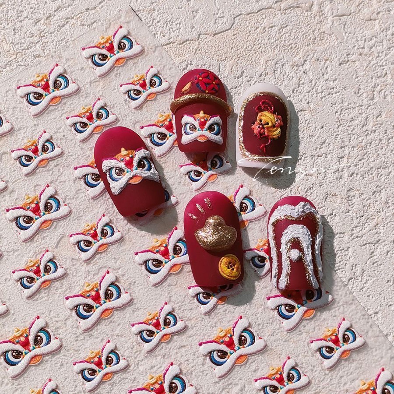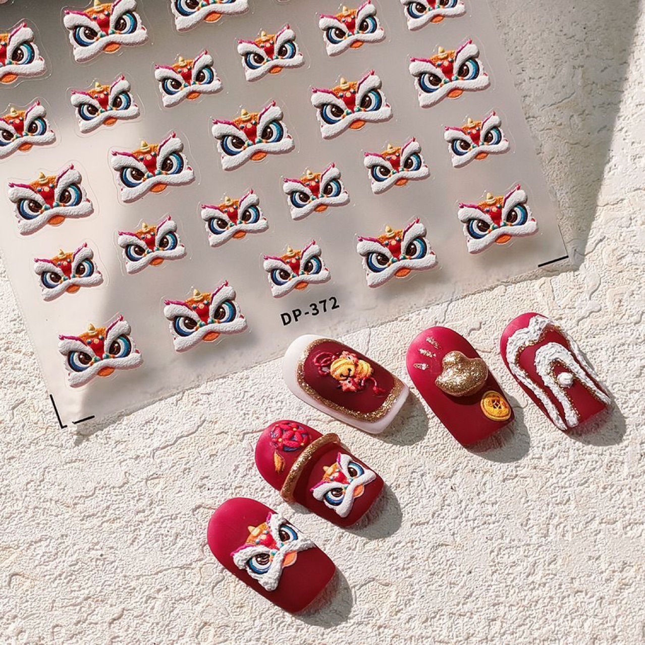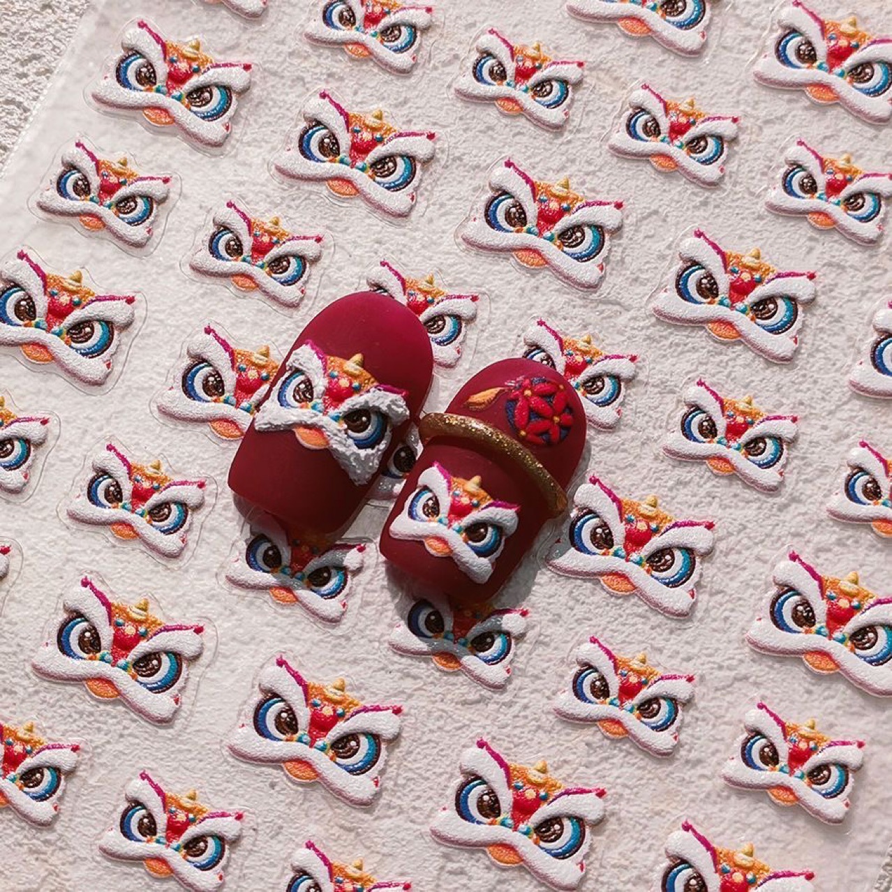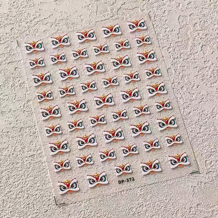 2024 신년 뜨거운 스타일 사자 네일 아트 스티커 양각 입체 중국 스타일 행운의 사자 네일 스티커스토어 가기