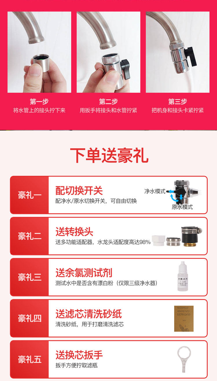 브랜드 핫 세일 그루퍼 홈 정수기 수도꼭지 직접 마시는 수돗물 사전 필터 주방 테이블스토어 가기