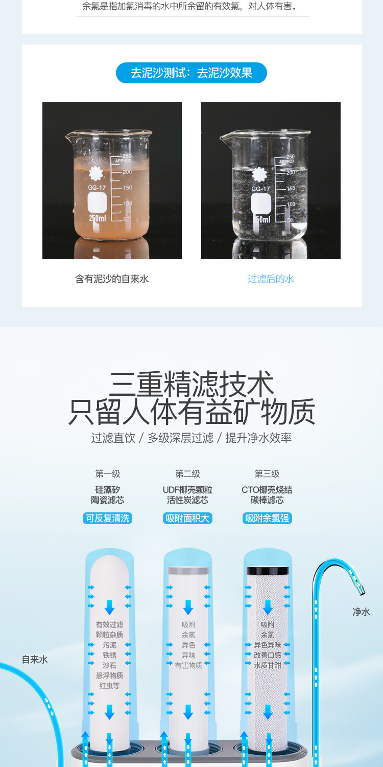 • 나노 한외여과막을 탑재한 투명 업그레이드 버전(3레벨, 총 3코어)
