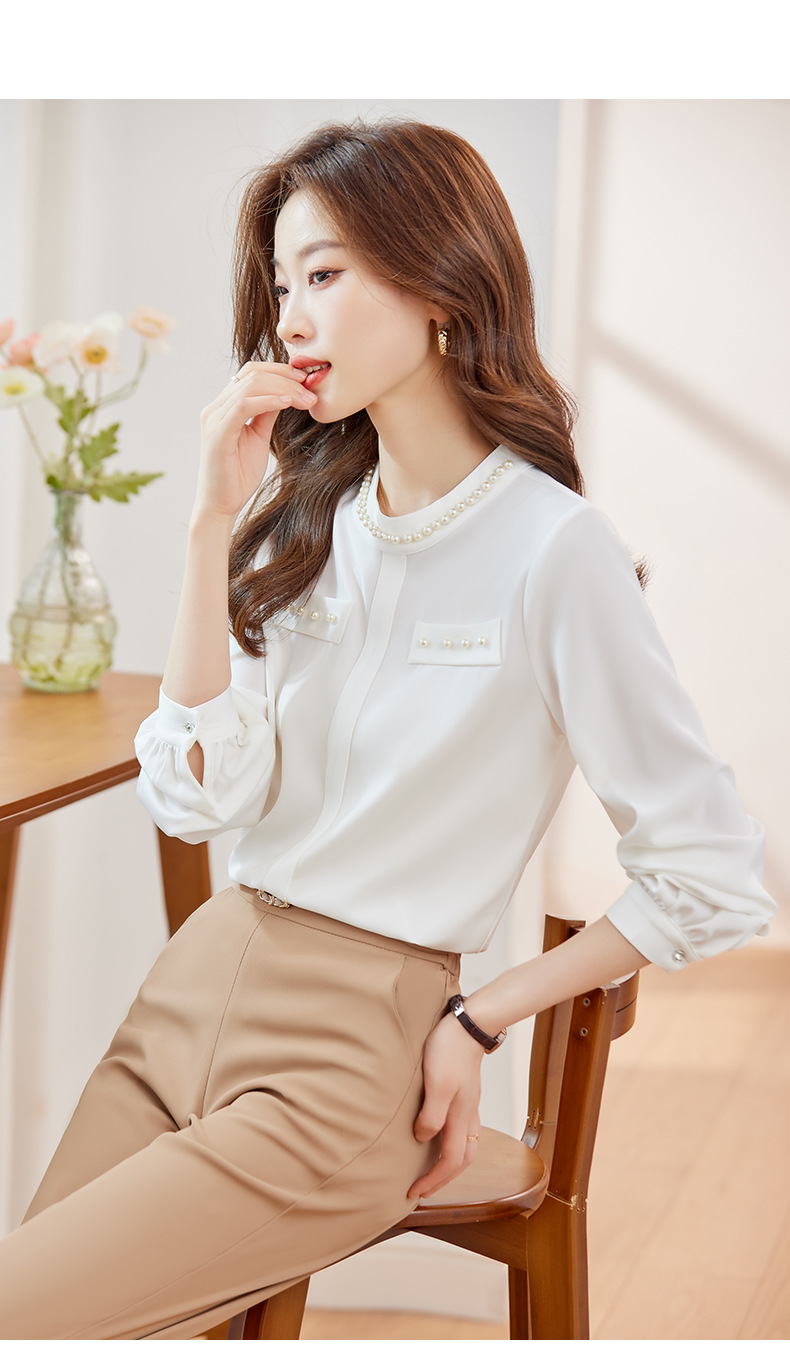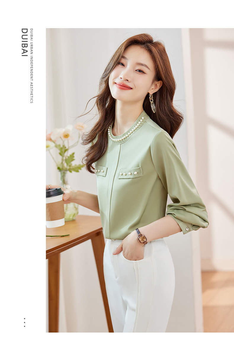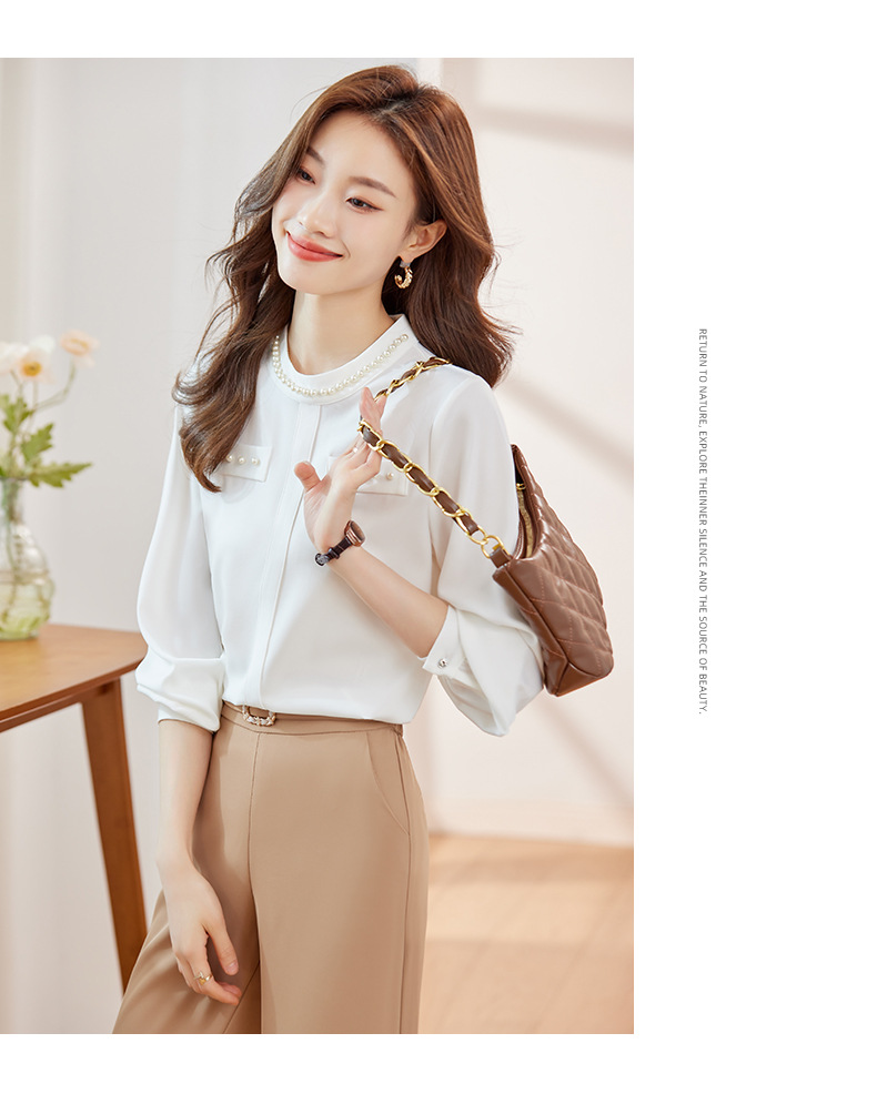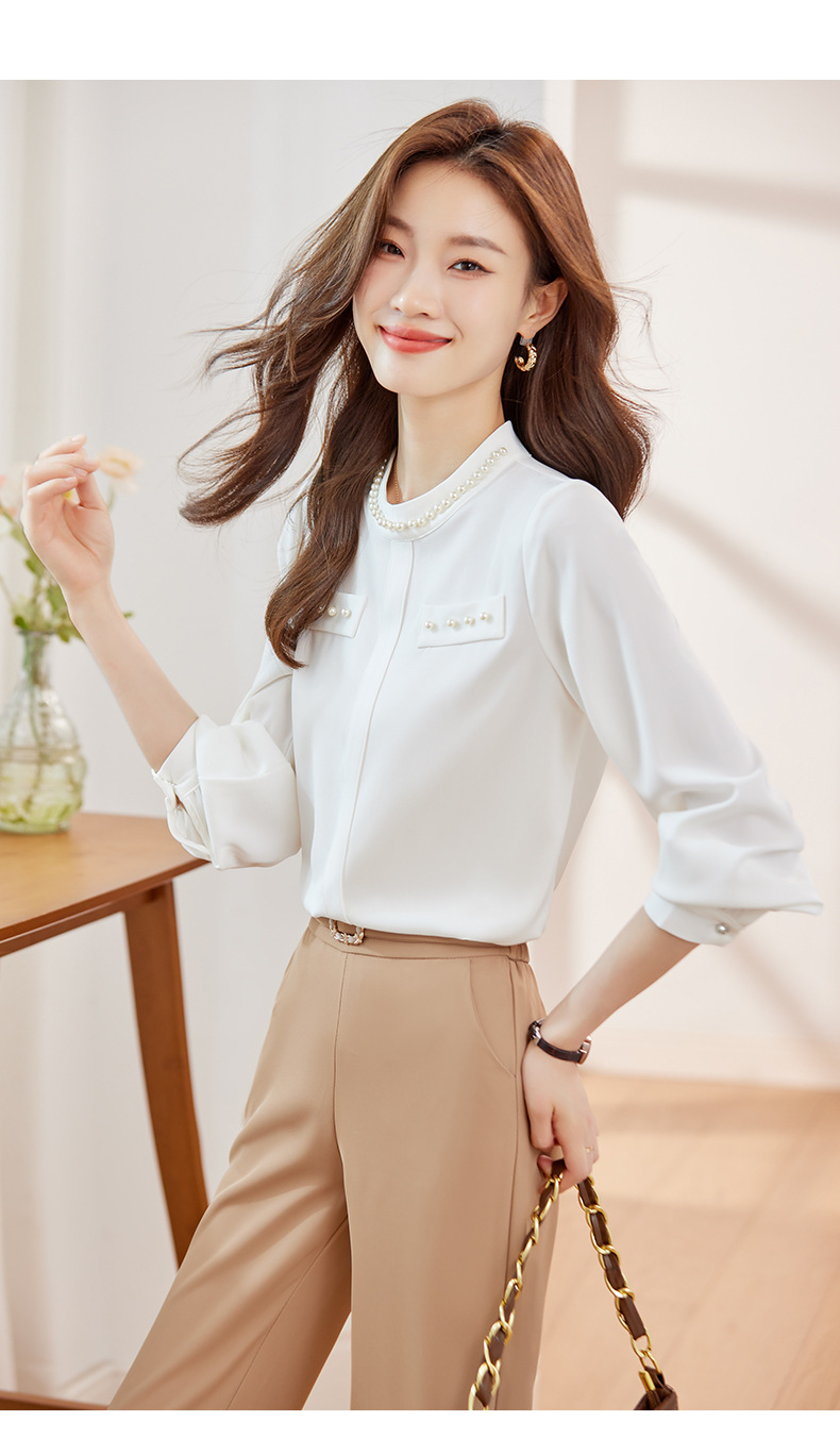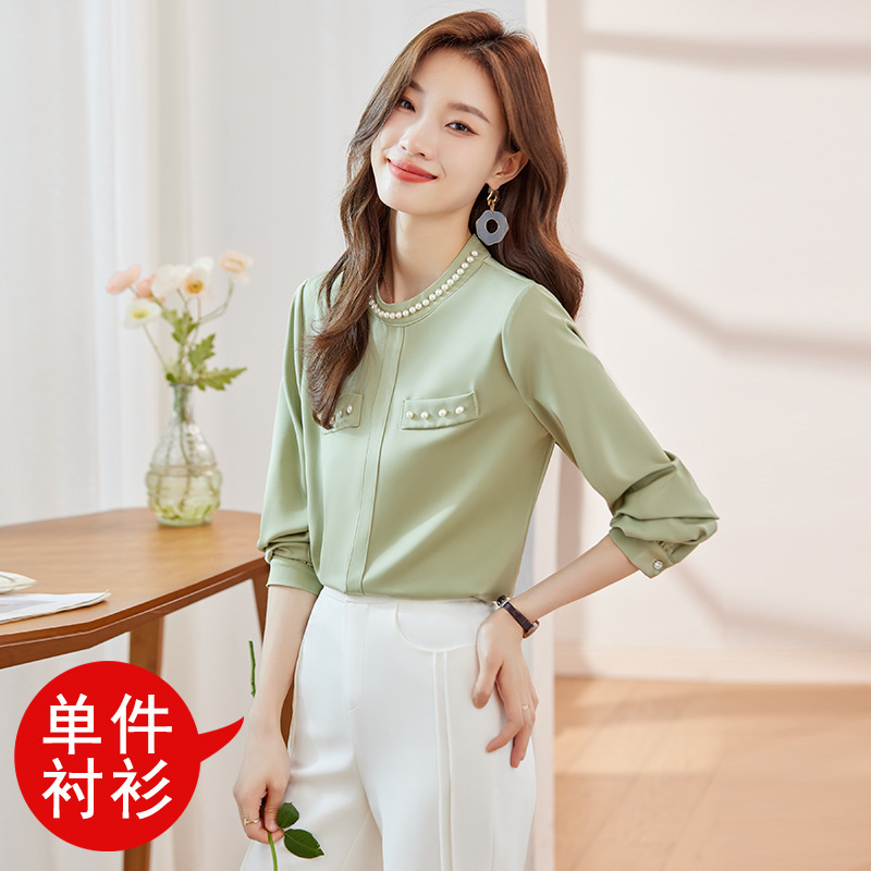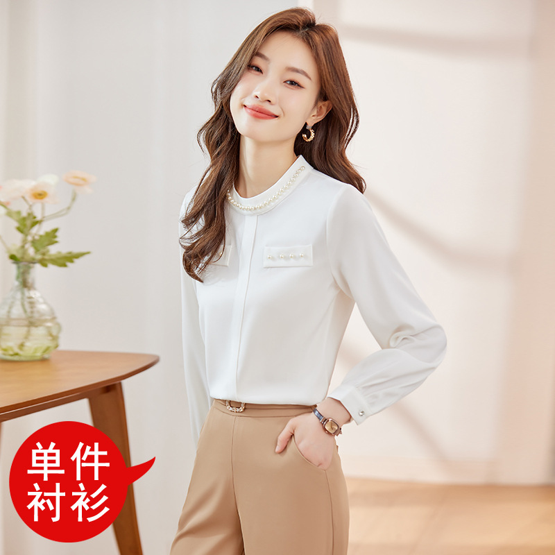 2024 봄과 가을 고급 쉬폰 셔츠 긴팔 여성 디자인 센스 패션 슬리밍 탑 달콤한 우아한 셔츠스토어 가기