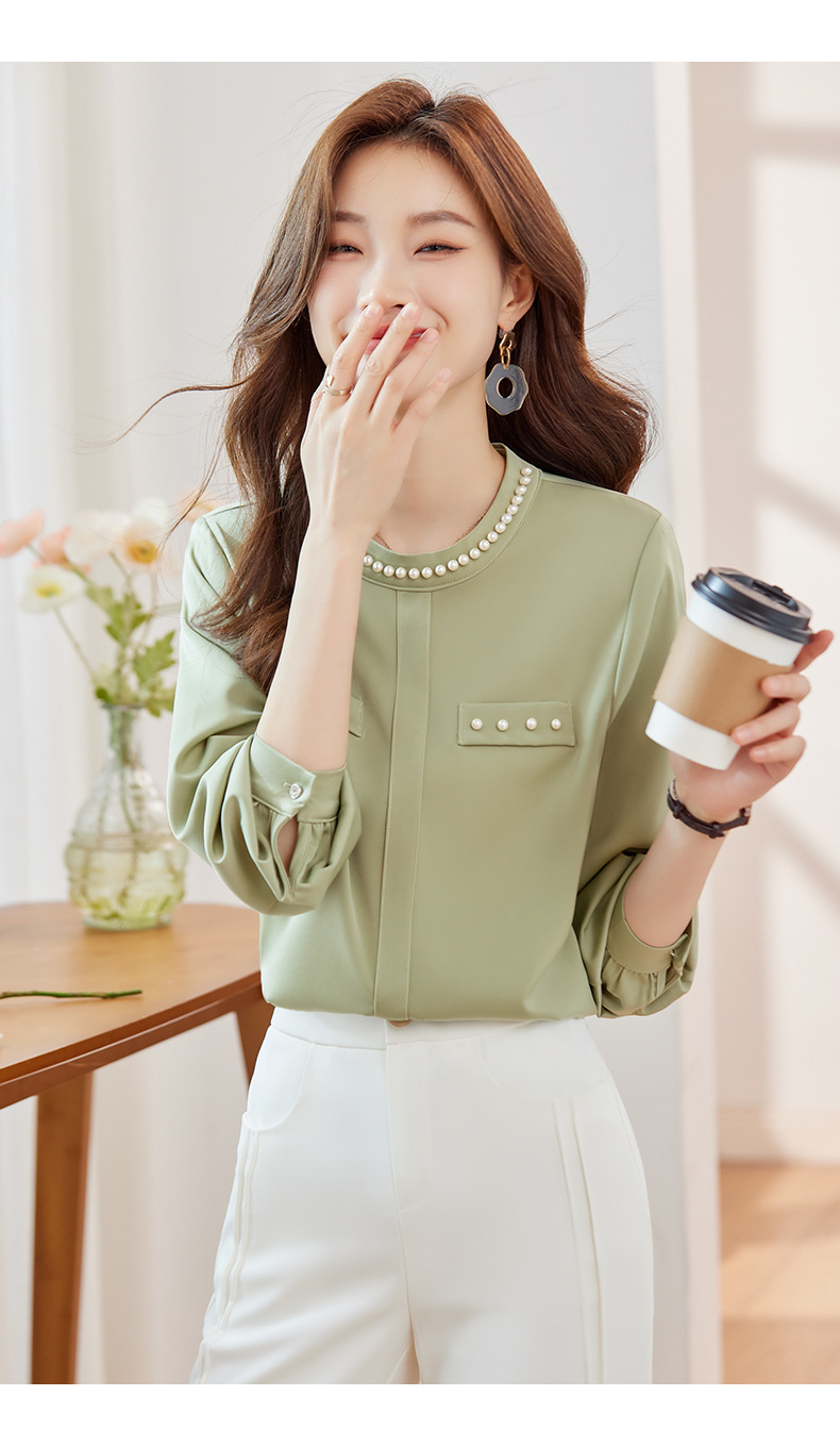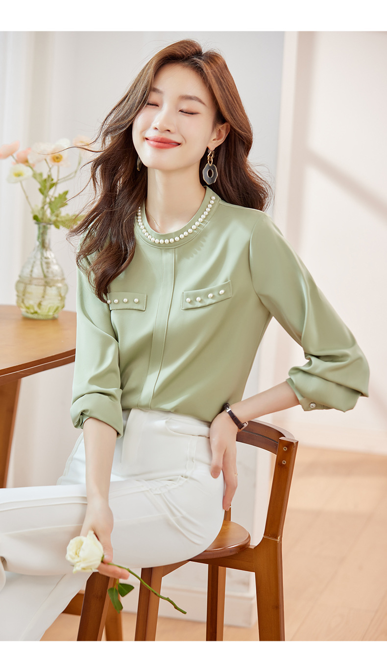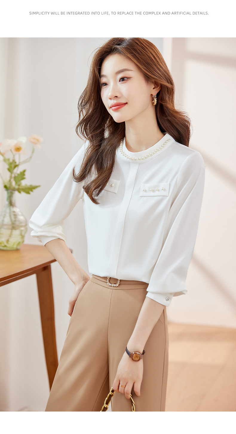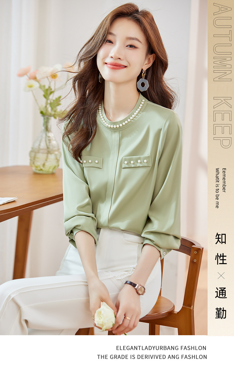 2024 봄과 가을 고급 쉬폰 셔츠 긴팔 여성 디자인 센스 패션 슬리밍 탑 달콤한 우아한 셔츠스토어 가기