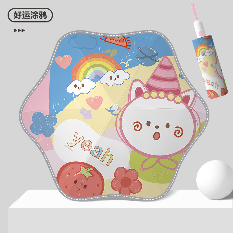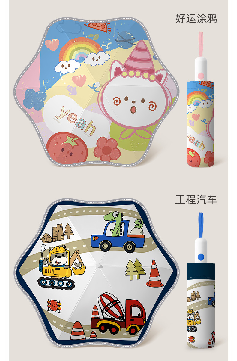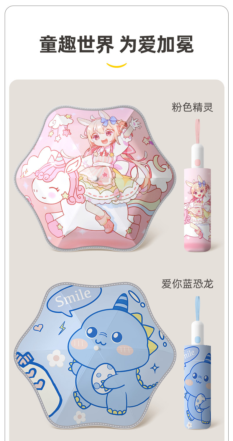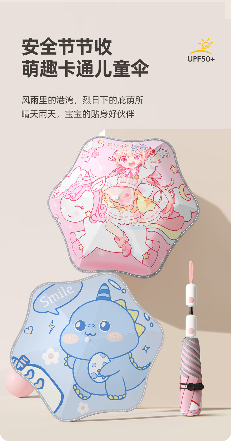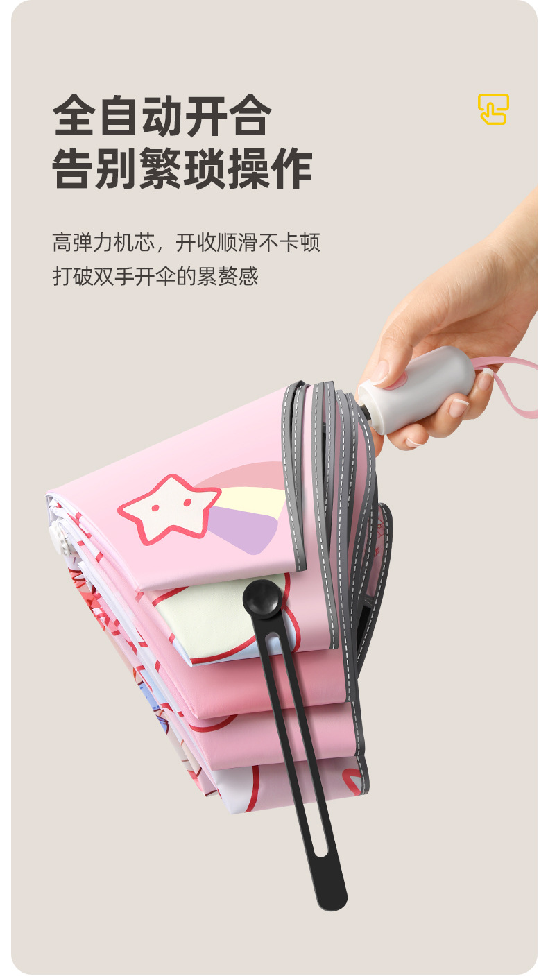 완전 자동 안전 반동 방지 어린이 우산 소녀 초등학교 소년 검은 고무 맑고 비 이중 목적 접기 붕괴스토어 가기