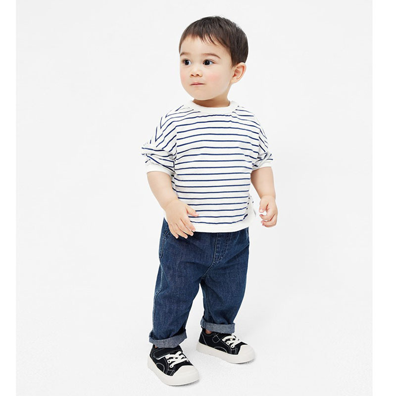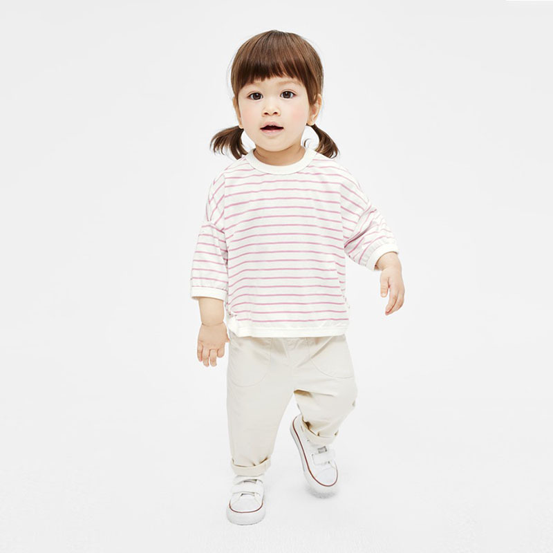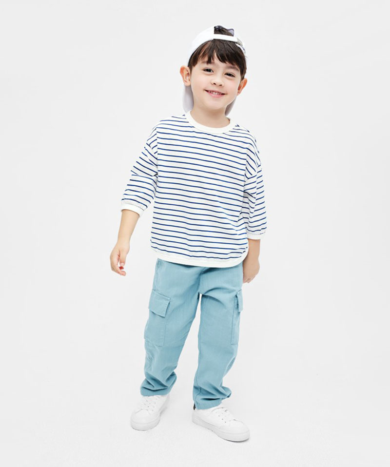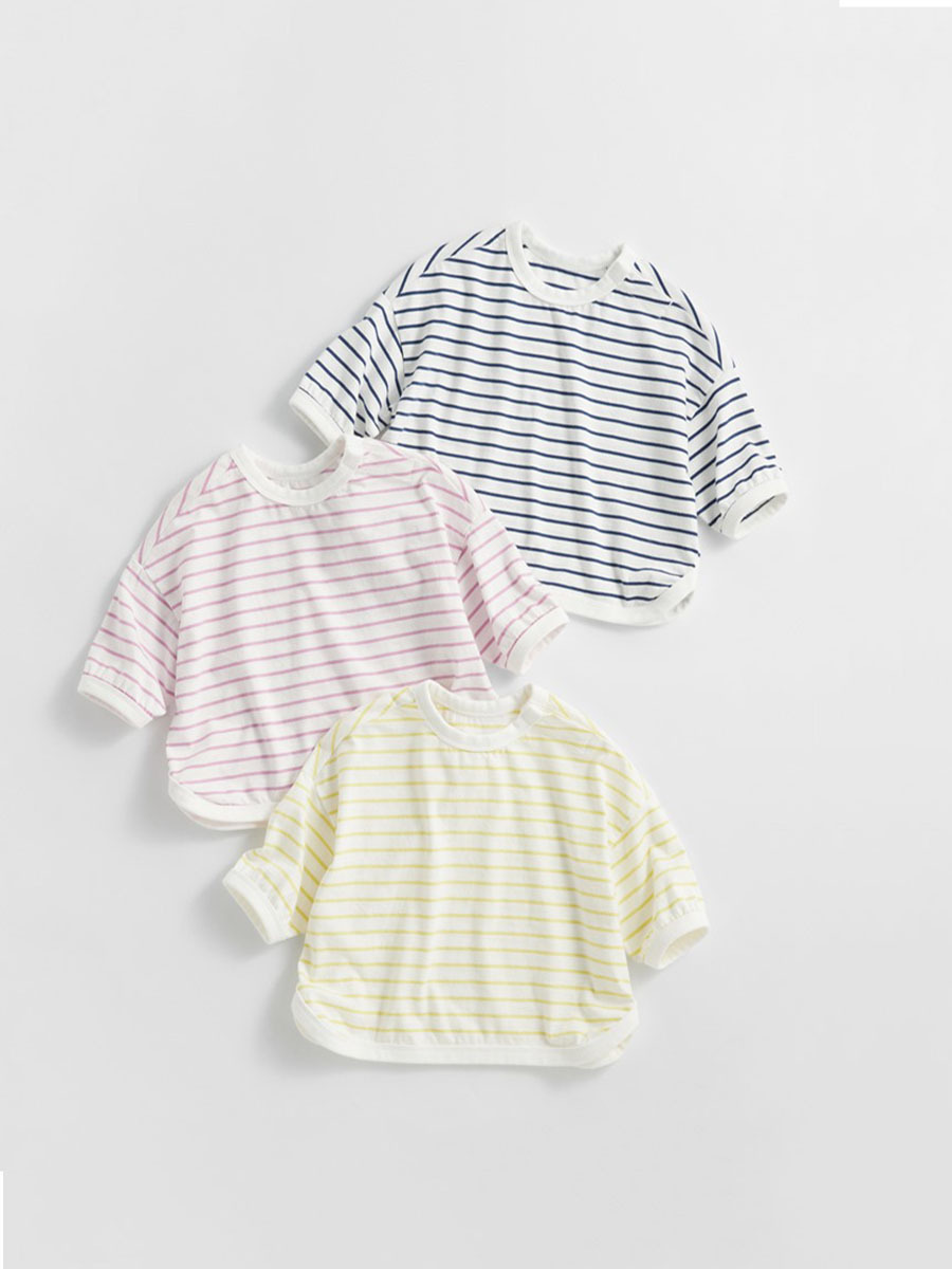 어린이 숄더 드롭 슬리브 스트라이프 티셔츠 소년 · 여자 중견 올매치 한국식 루즈베이스 셔츠 3 색스토어 가기
