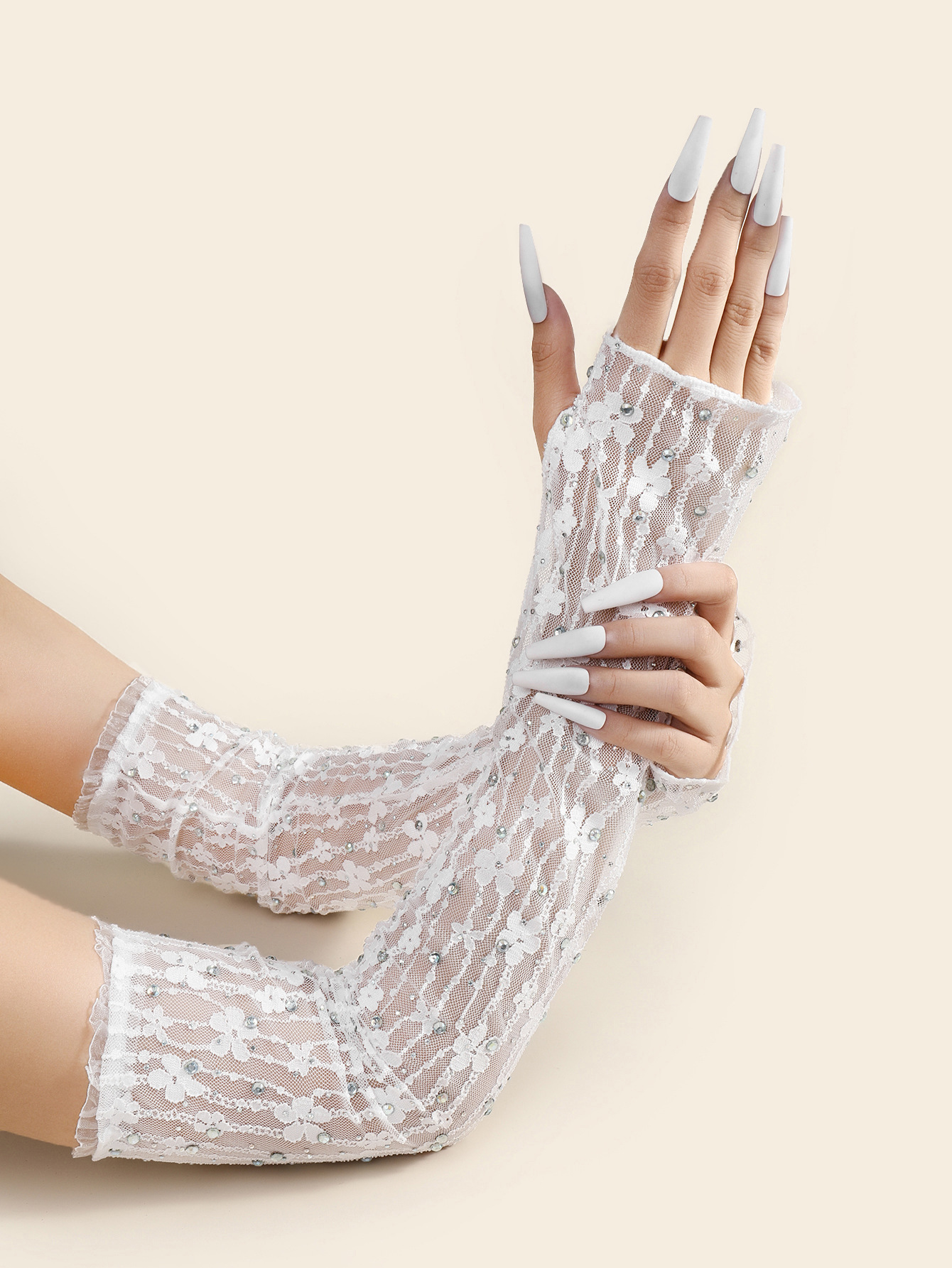 국경 간 여름 메쉬 장갑 여성의 초박형 핫 플래시 모조 다이아몬드 긴 사이클링 섹시한 검은 선 스크린 소매 얇은 장갑