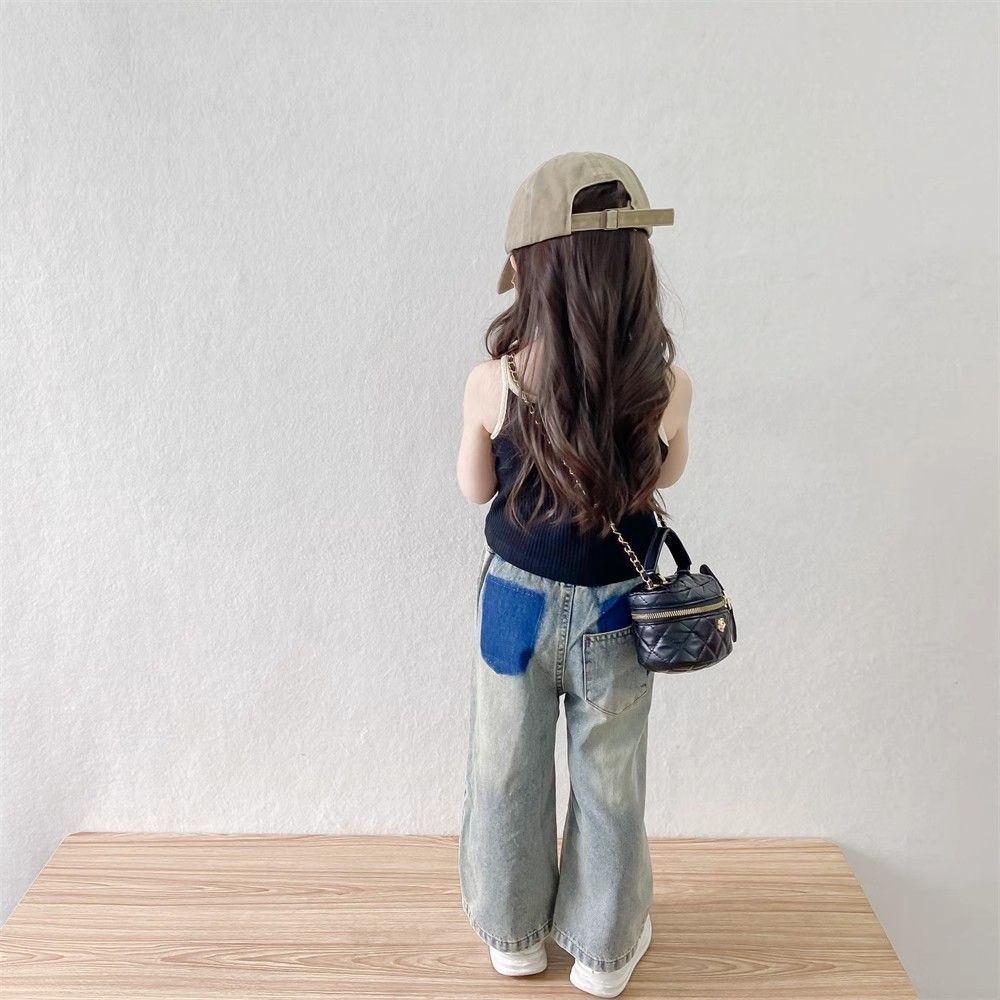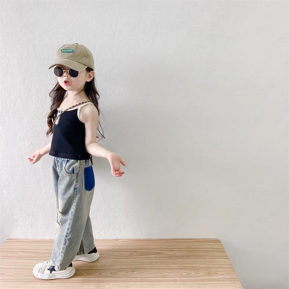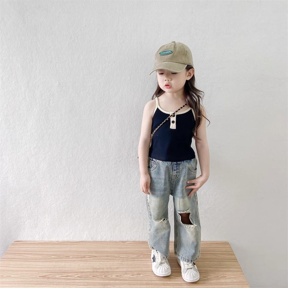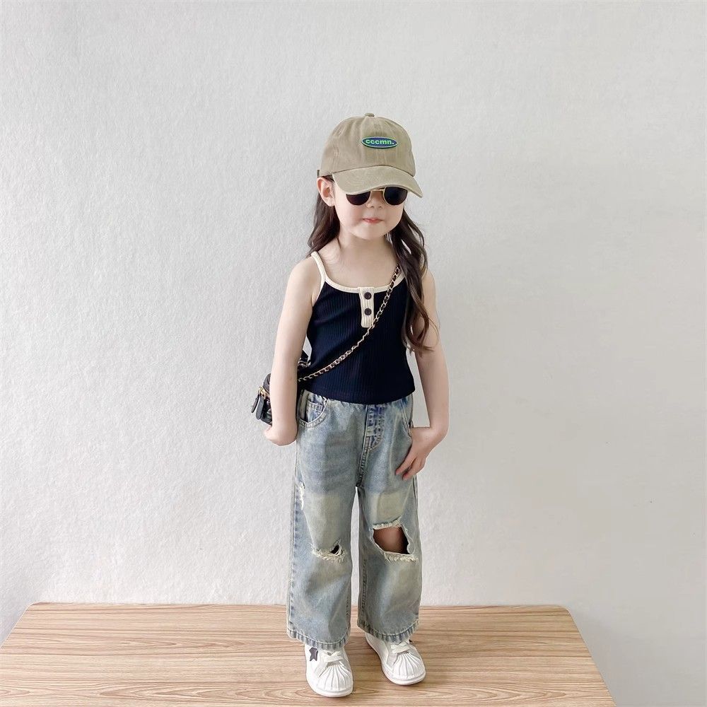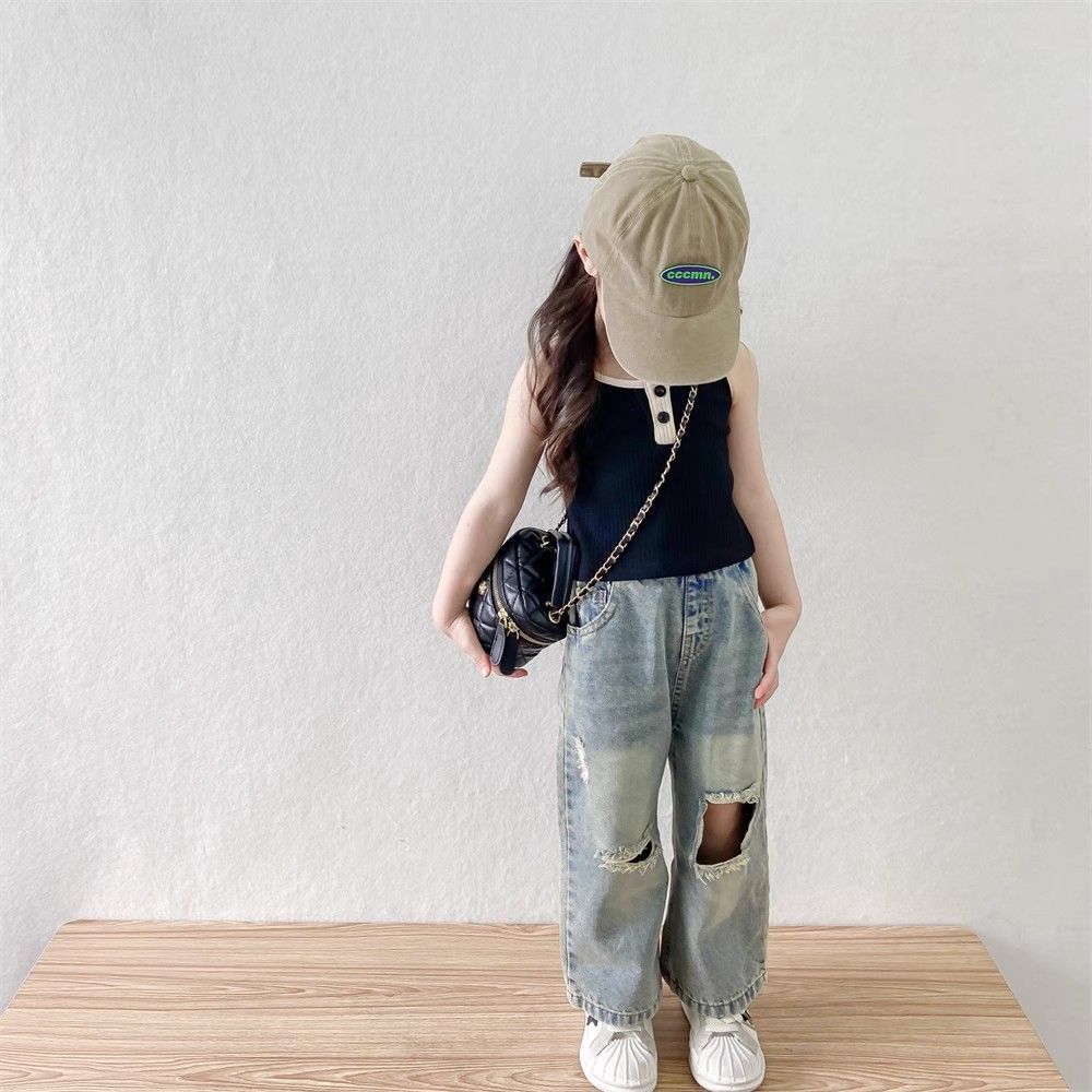 소녀들의 향수를 불러일으키는 찢어진 청바지 2025 여름 새로운 한국 스타일 소년 소녀 트렌디한 복고풍 데님 바지 얇은 스타일