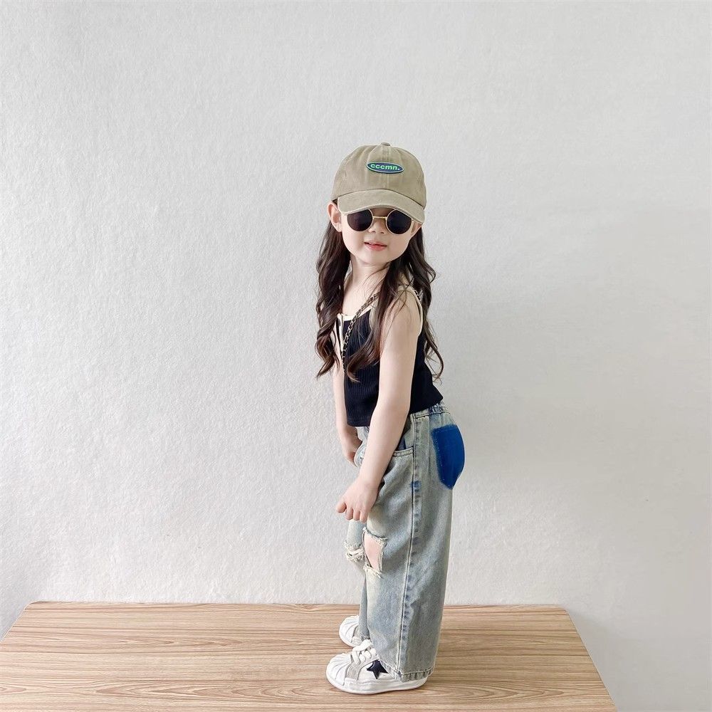 소녀들의 향수를 불러일으키는 찢어진 청바지 2025 여름 새로운 한국 스타일 소년 소녀 트렌디한 복고풍 데님 바지 얇은 스타일스토어 가기
