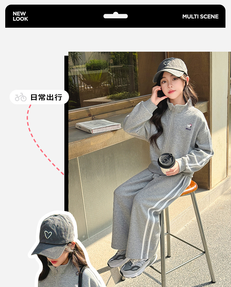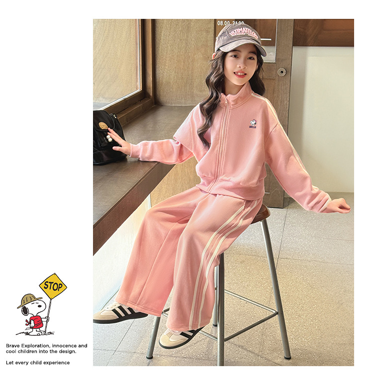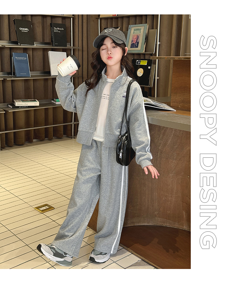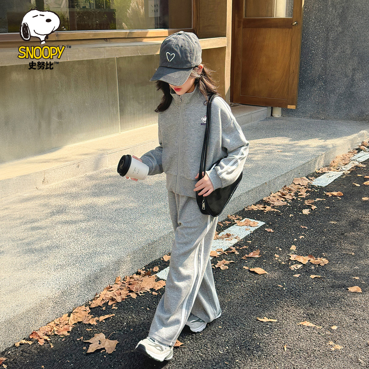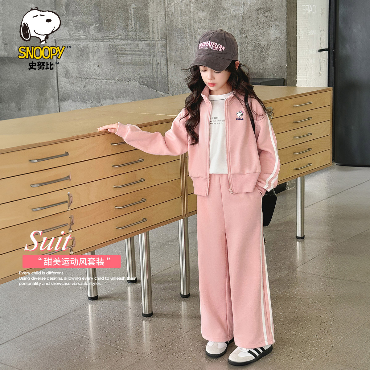 스누피 봄 새 여자 운동복 재킷 바지 정장 중대형 어린이 캐주얼 스포츠 세트 어린이 봄 의류 트렌드스토어 가기