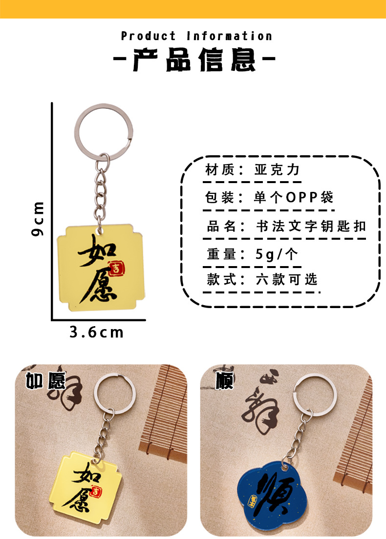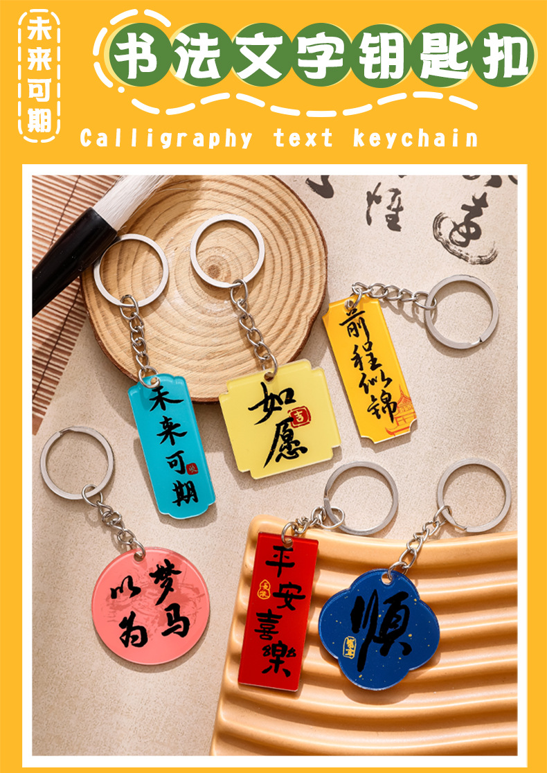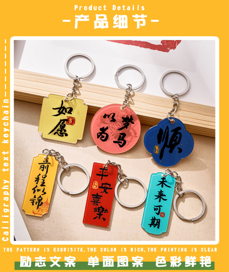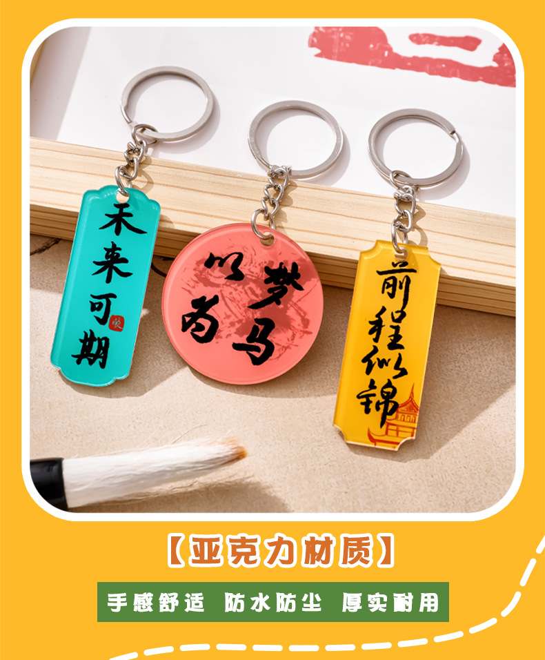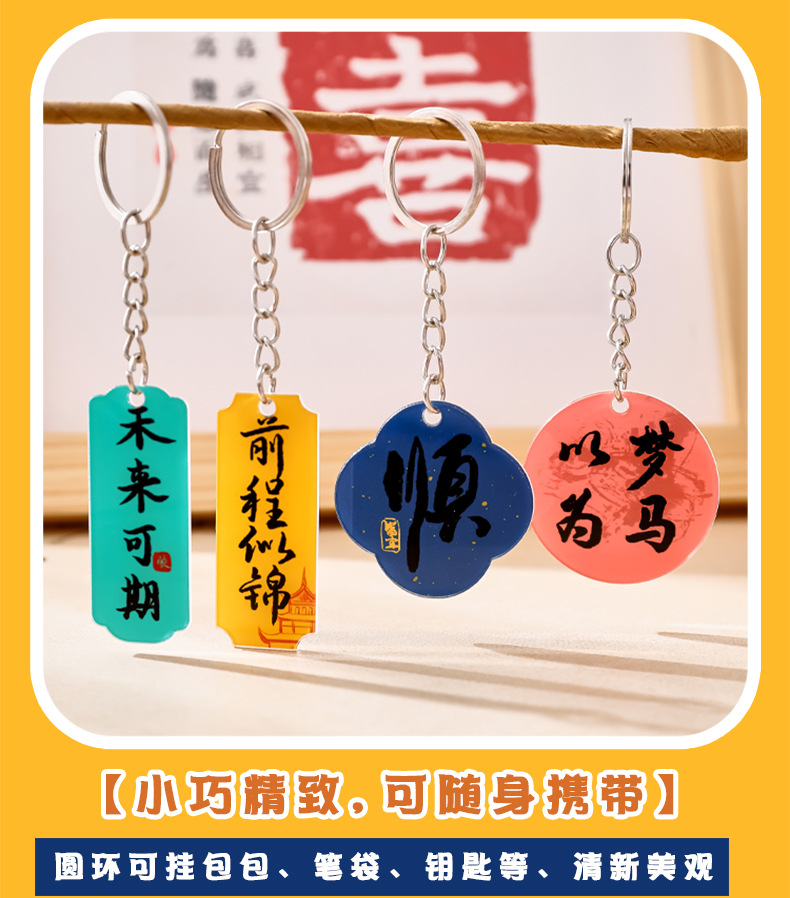 중국풍 감동적인 문구 열쇠고리 만화 장식품 가방 귀여운 장식 펜던트 축복 문구 상품 선물스토어 가기