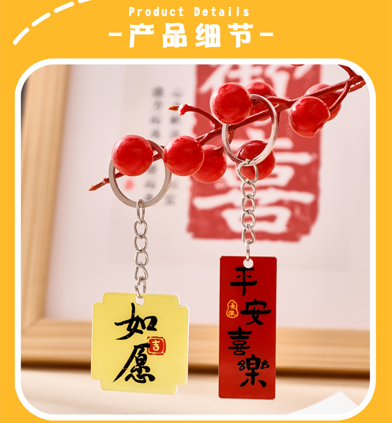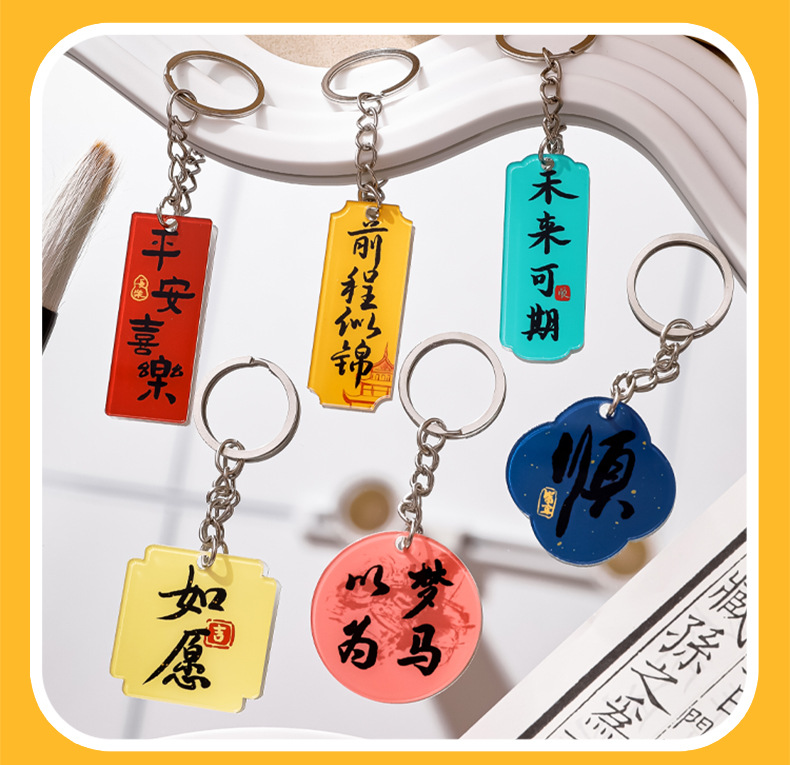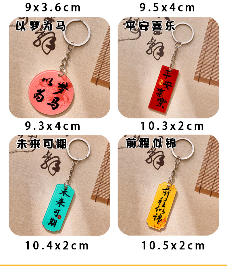 중국풍 감동적인 문구 열쇠고리 만화 장식품 가방 귀여운 장식 펜던트 축복 문구 상품 선물