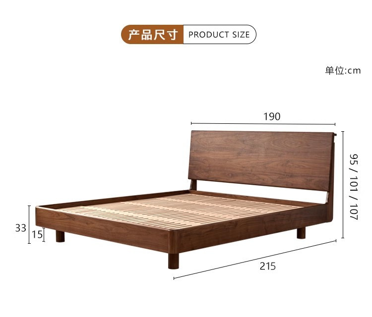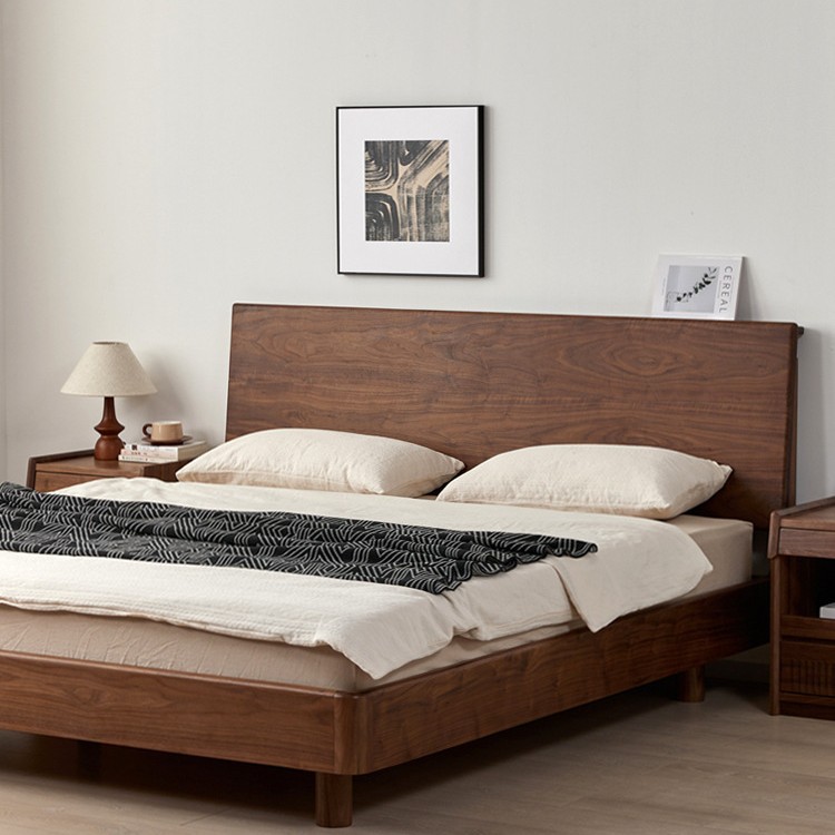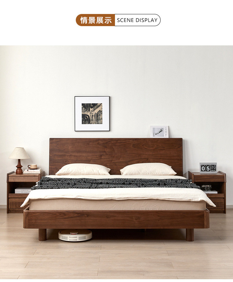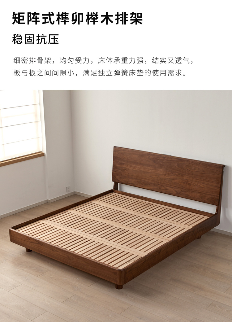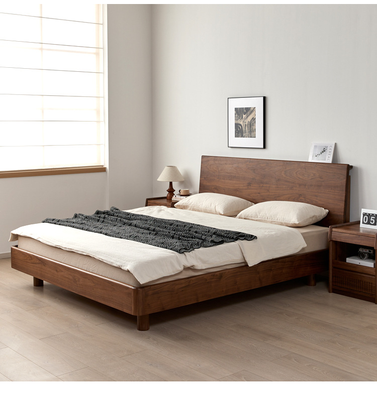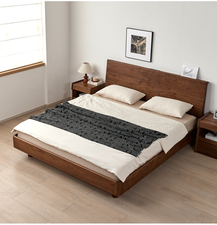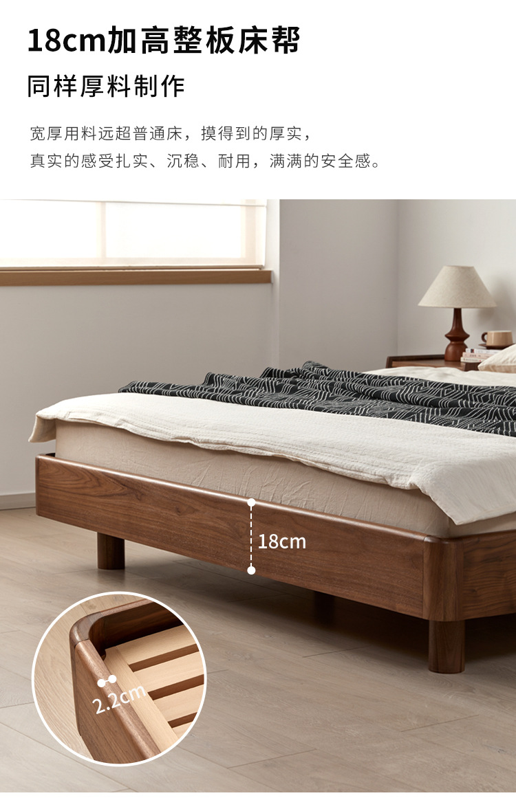 북유럽 일본식 체리 우드 블랙 호두 솔리드 우드 서스펜션 침대 간단한 곡선 표면 단단한 모양 없음