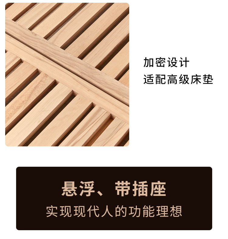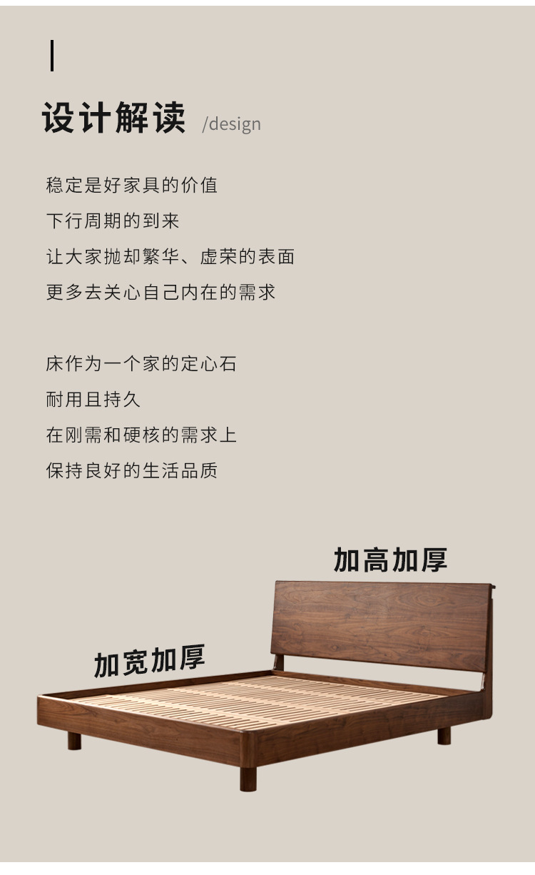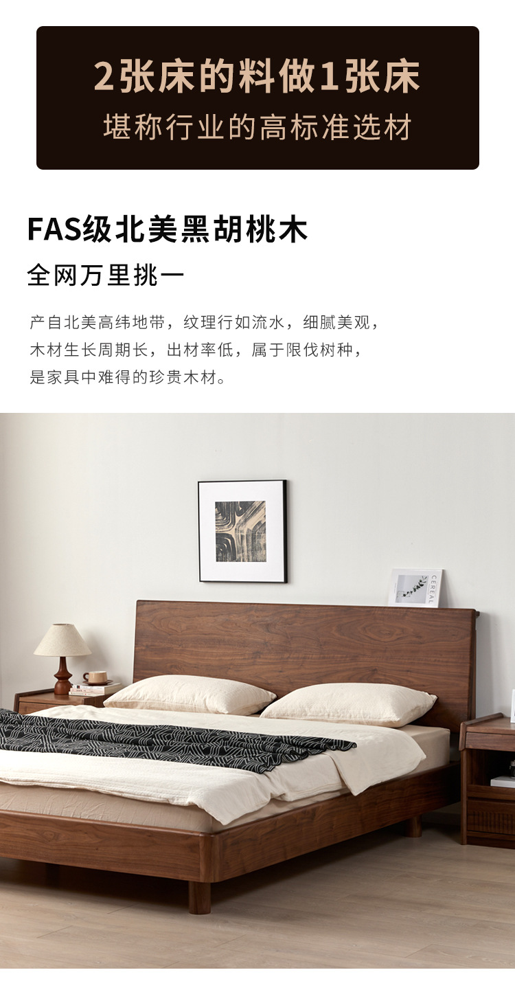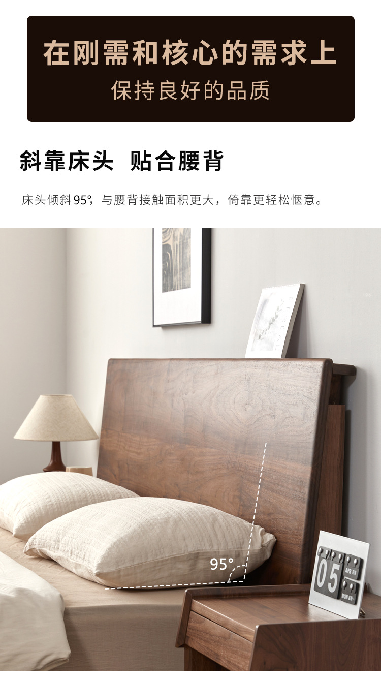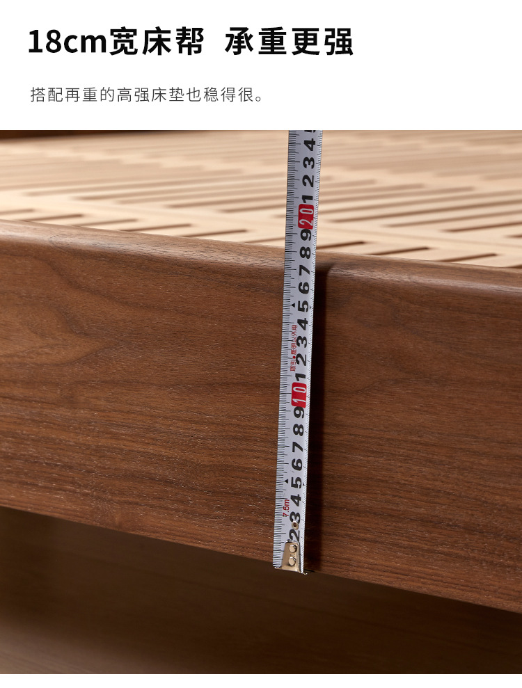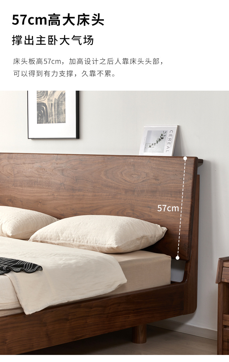 북유럽 일본식 체리 우드 블랙 호두 솔리드 우드 서스펜션 침대 간단한 곡선 표면 단단한 모양 없음