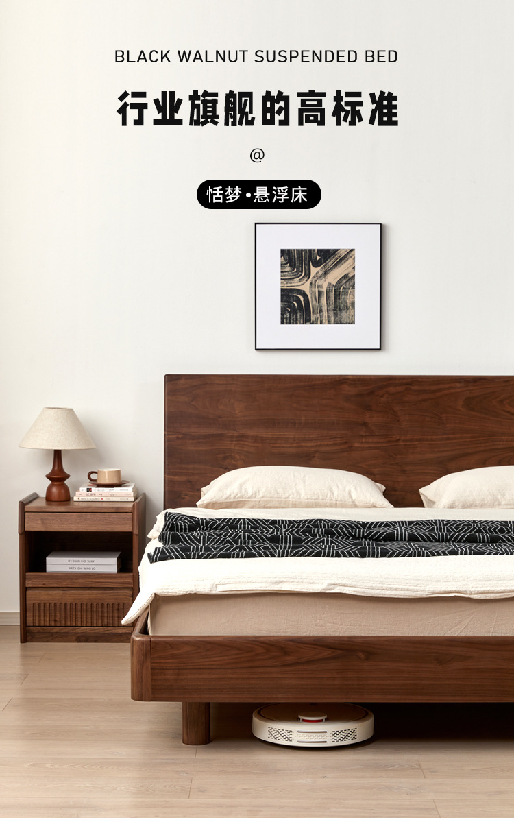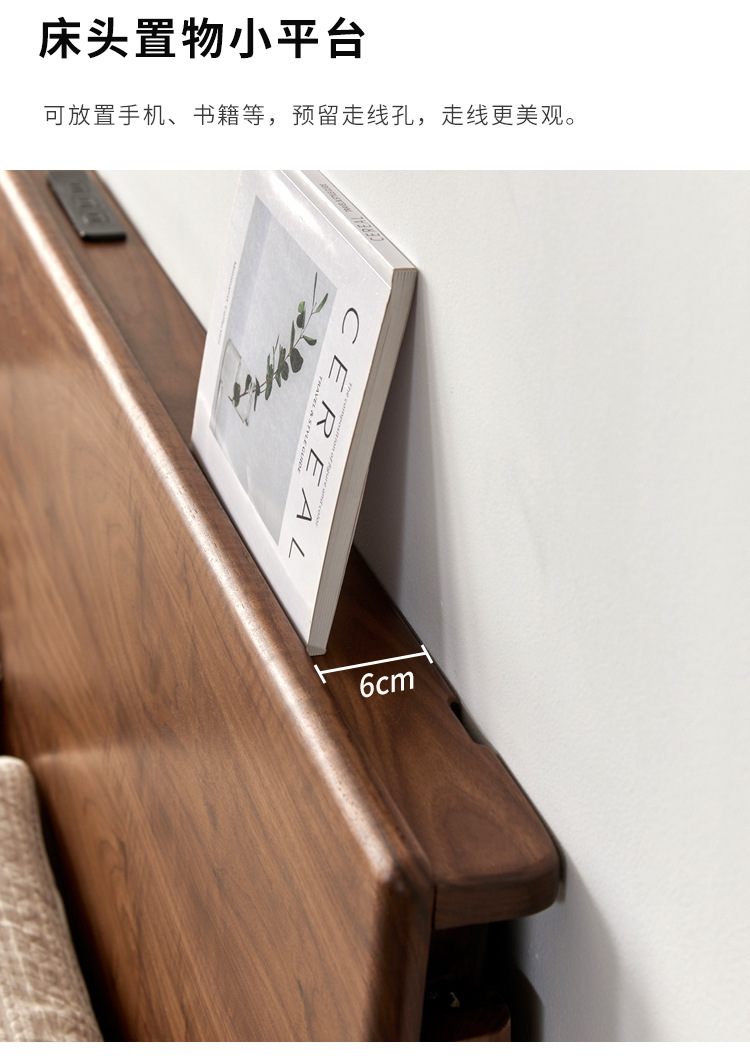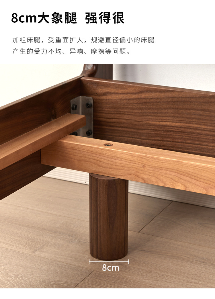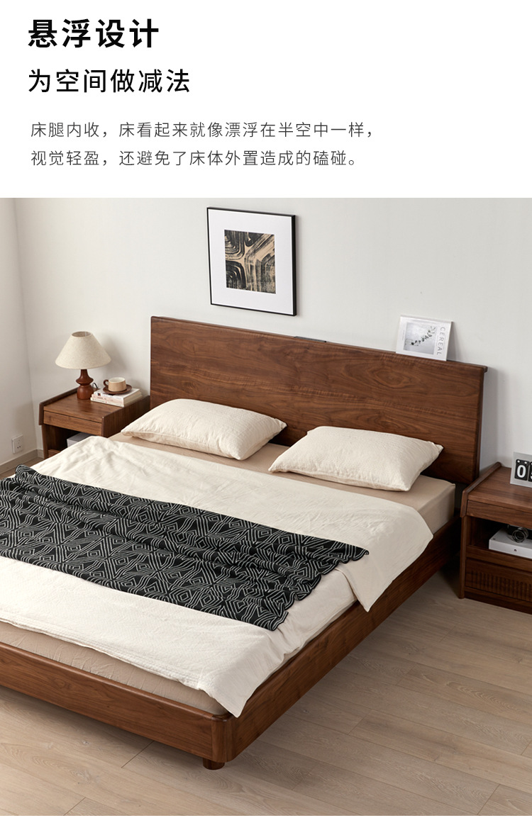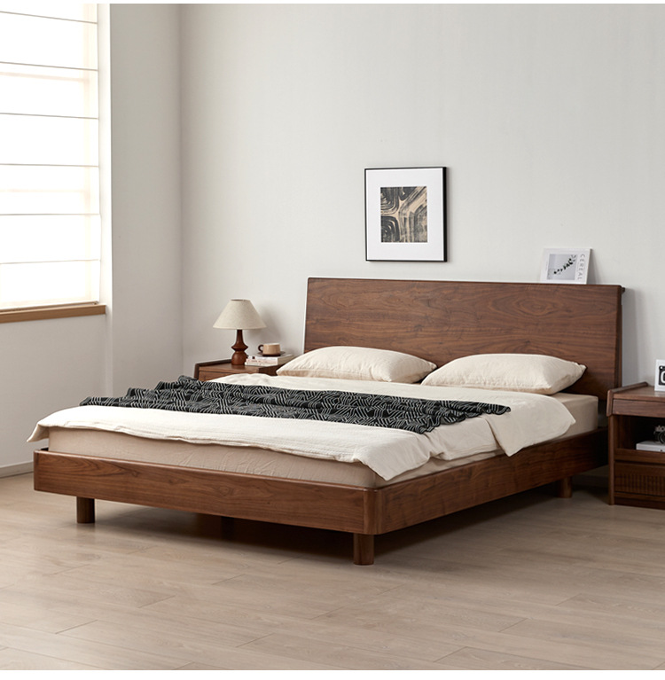 북유럽 일본식 체리 우드 블랙 호두 솔리드 우드 서스펜션 침대 간단한 곡선 표면 단단한 모양 없음스토어 가기