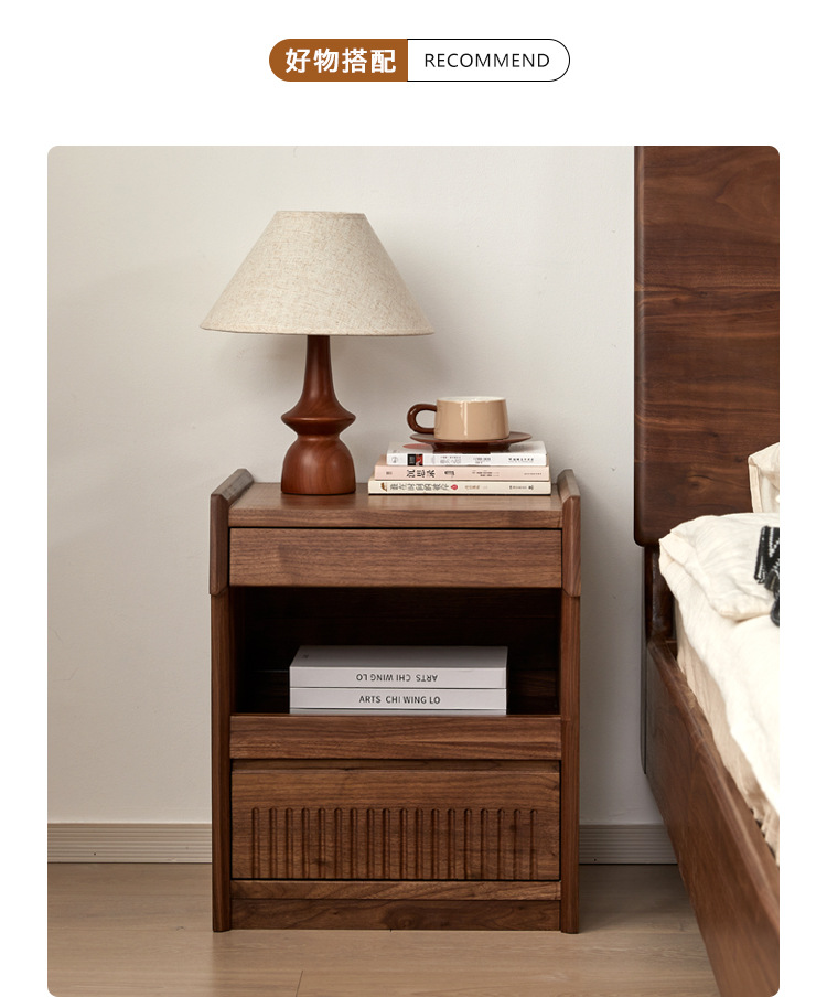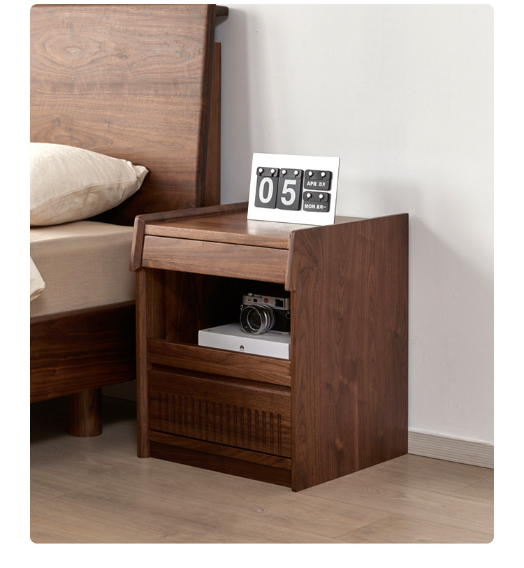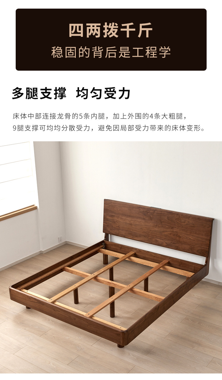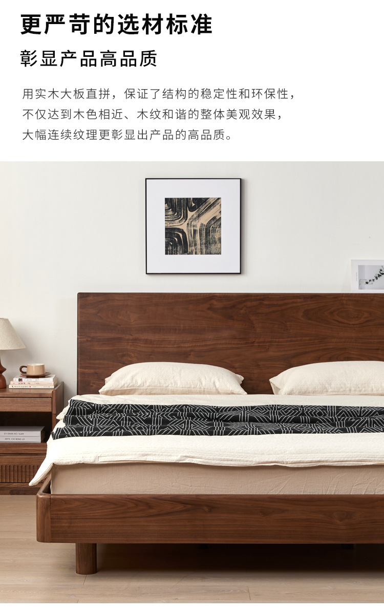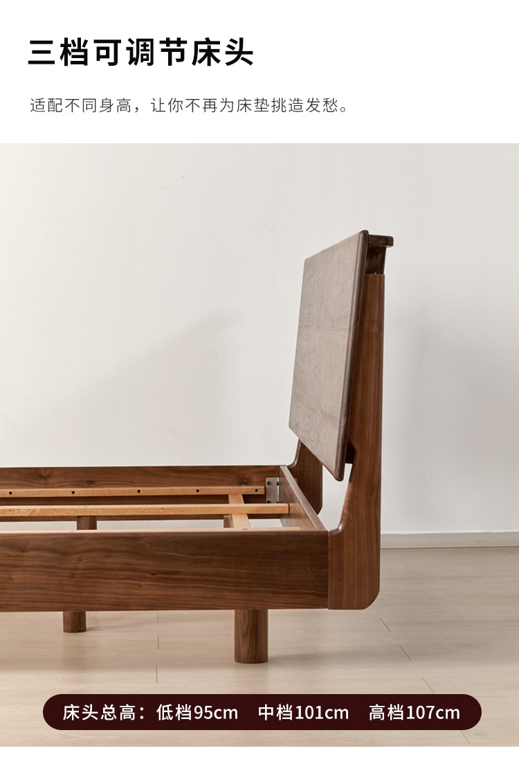 북유럽 일본식 체리 우드 블랙 호두 솔리드 우드 서스펜션 침대 간단한 곡선 표면 단단한 모양 없음스토어 가기