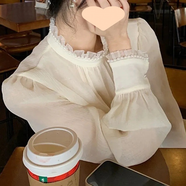봄 가을을위한 여성용 반 높이 칼라 레이스베이스 셔츠, 우드 이어 엣지 달콤한 우아한 스택 쉬폰 셔츠 탑