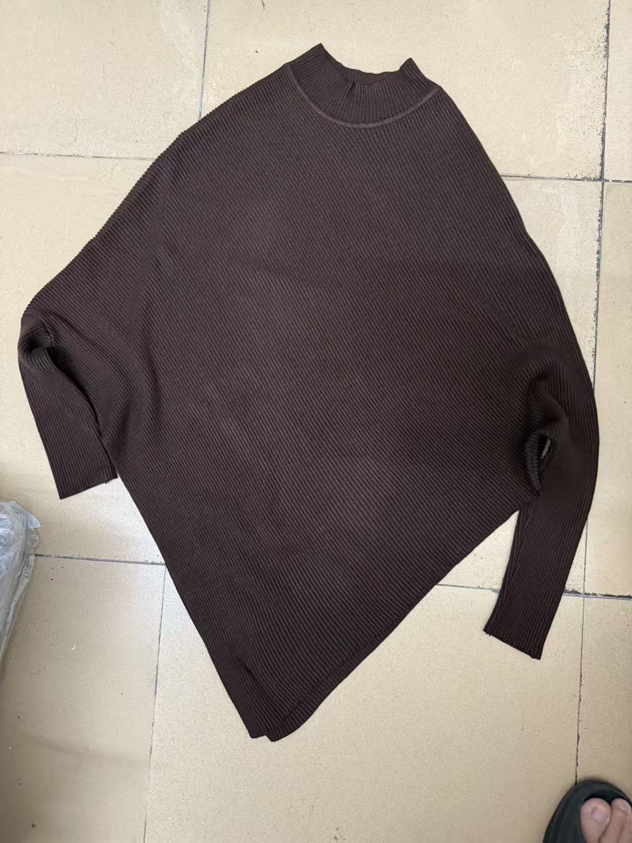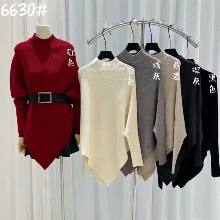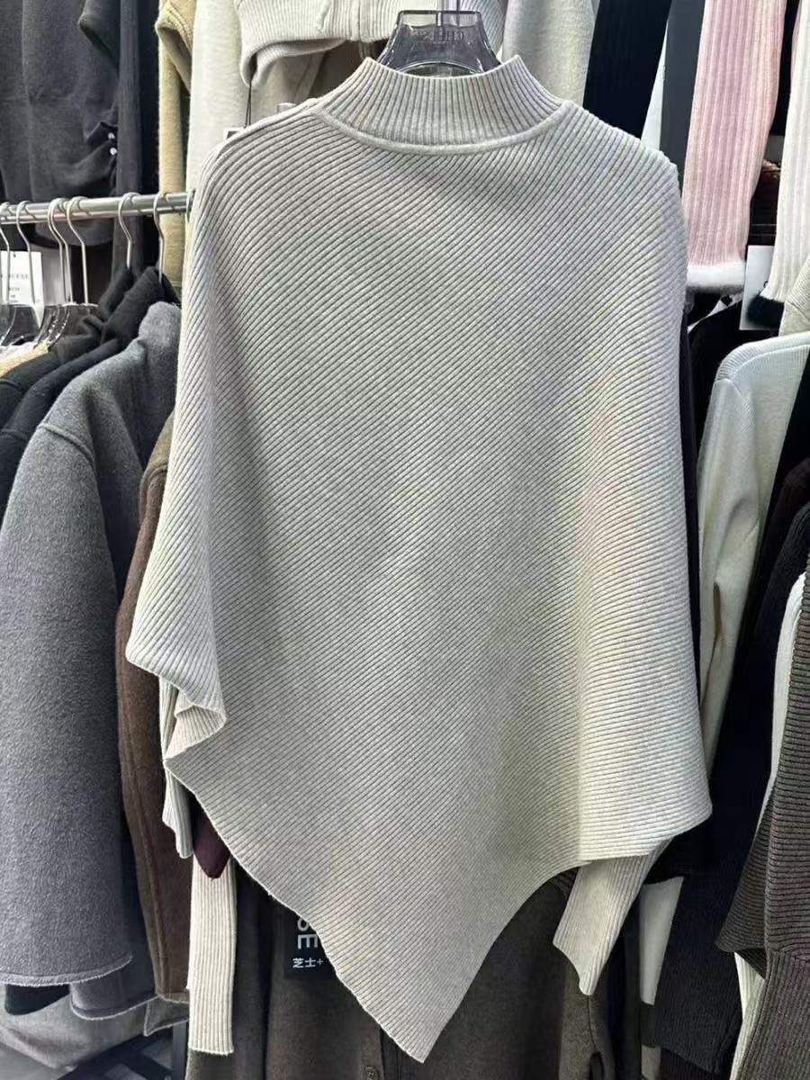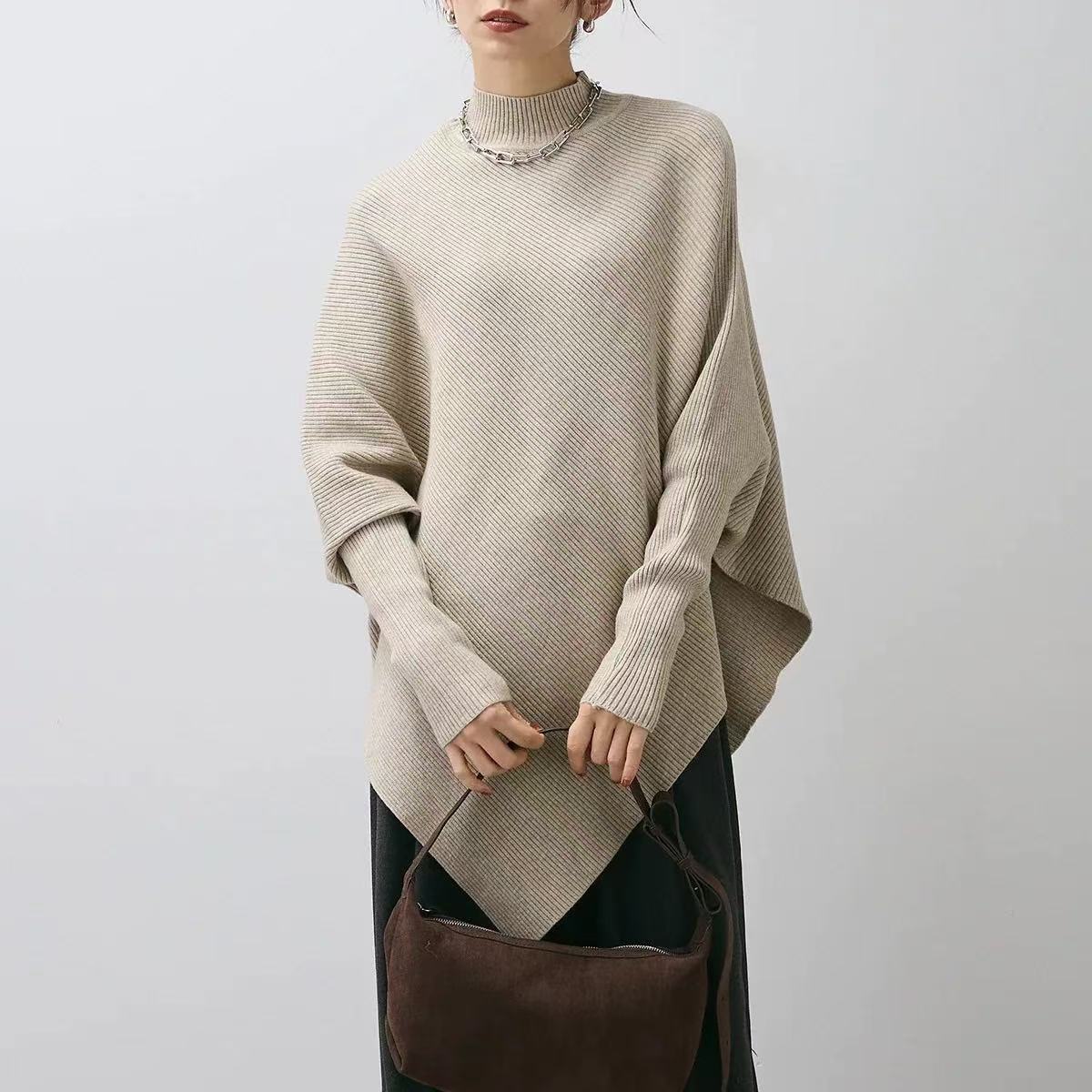 올드머니 스타일 심플 망토 스웨터 여성용 불규칙 슬림핏 박쥐소매 고급스러운 하이넥 트렌디 니트스토어 가기
