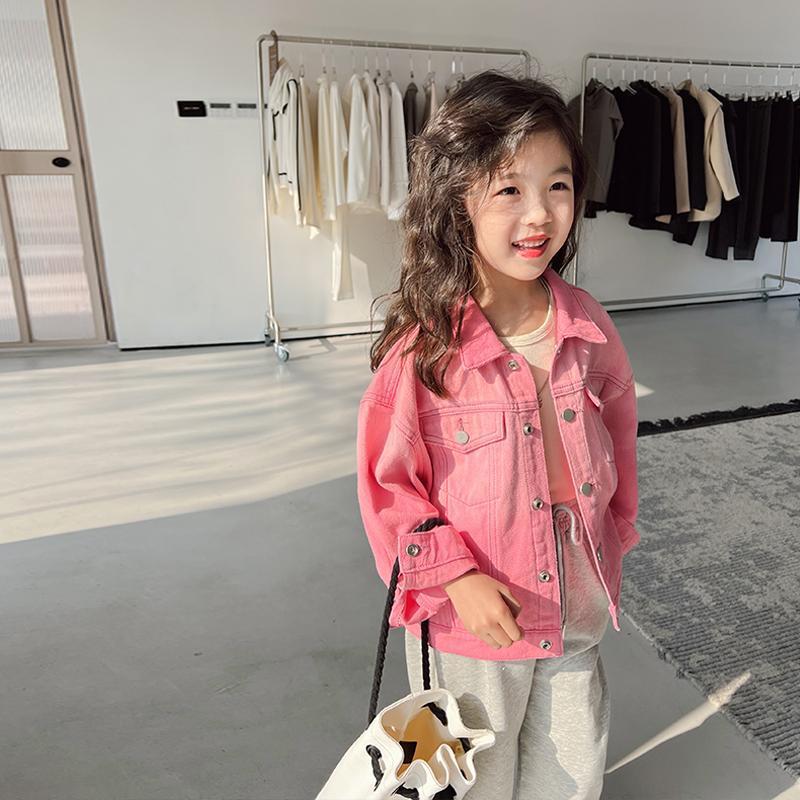 여아 핑크 데님 재킷 2025 봄 가을 신상 한국 스타일 아기 인기 유행 상의 트렌디 캐주얼 만능 아이템스토어 가기