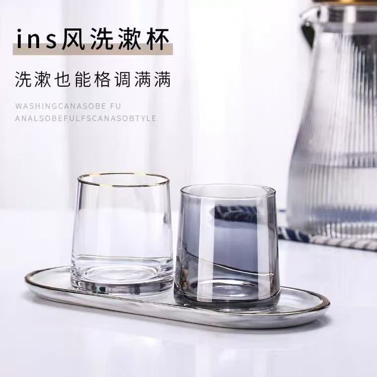 Kaiyao 간단한 노르딕 엔트리 럭셔리 무더워시 컵 가정용 유리 브러쉬 컵 세트 브러쉬 컵 호텔 호텔 칫솔 컵
