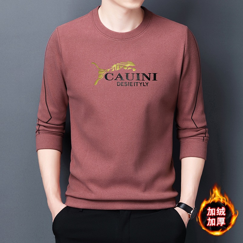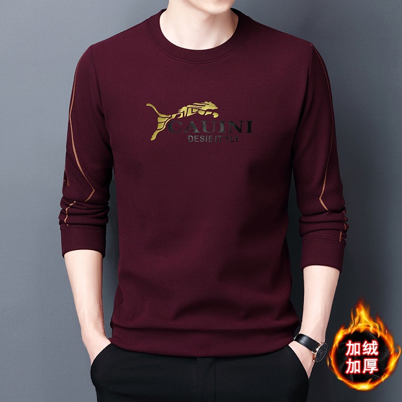 其力男装冬款加绒德绒卫衣男2022新款韩版休闲印花男士加厚打底衫