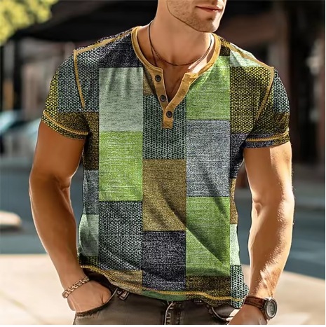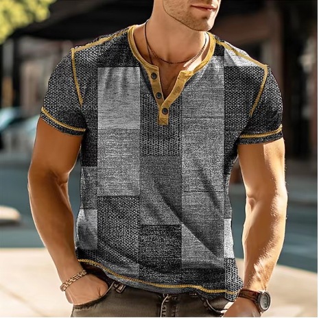 2025 국경 간 대외 무역 남성의 새로운 반팔 티셔츠 3D 디지털 인쇄 3 버튼 플래켓 패션 캐주얼 남성 의류