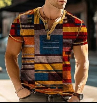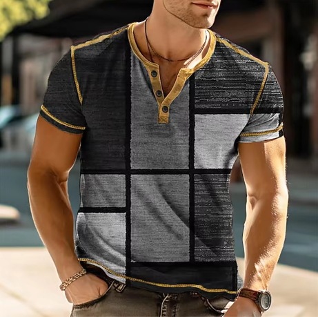 2025 국경 간 대외 무역 남성의 새로운 반팔 티셔츠 3D 디지털 인쇄 3 버튼 플래켓 패션 캐주얼 남성 의류스토어 가기