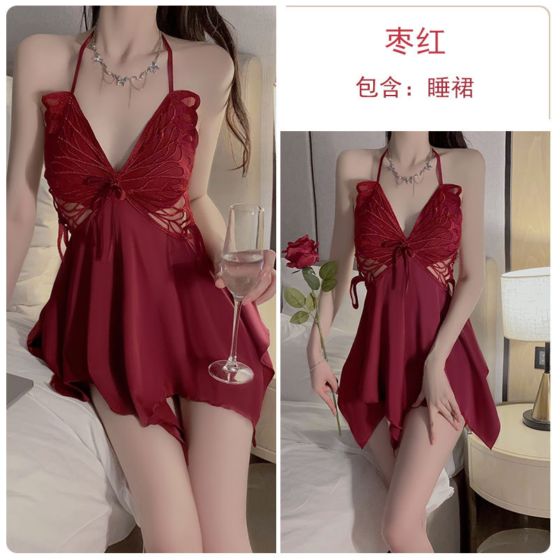 섹시한 여성 잠옷, 불규칙한 스커트, 아이스 실크 가슴 패드가 있는 잠옷과 가운 세트 P3945스토어 가기