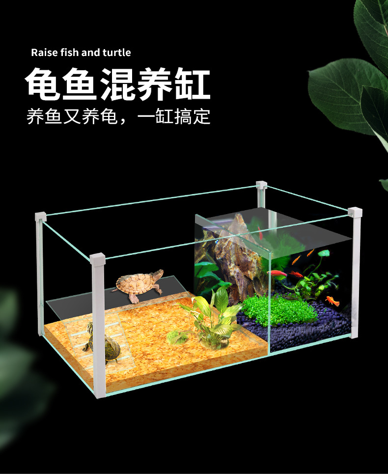 바구니 테이블 거북이 탱크 수족관 물고기 탱크 거북이 물고기 작은 집 혼합 번식 유리 거북이 탱크 금붕어 탱크 거북이 분지