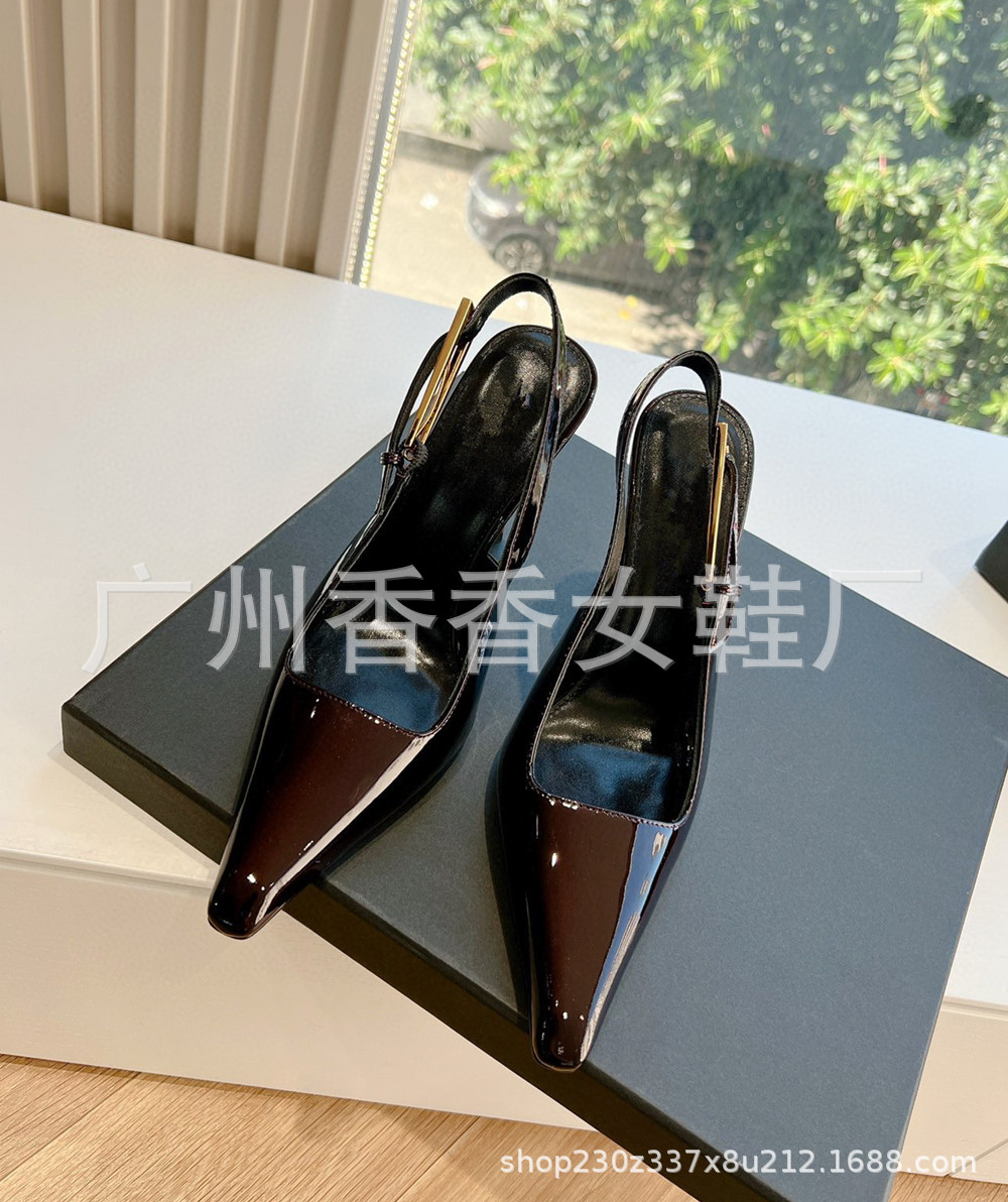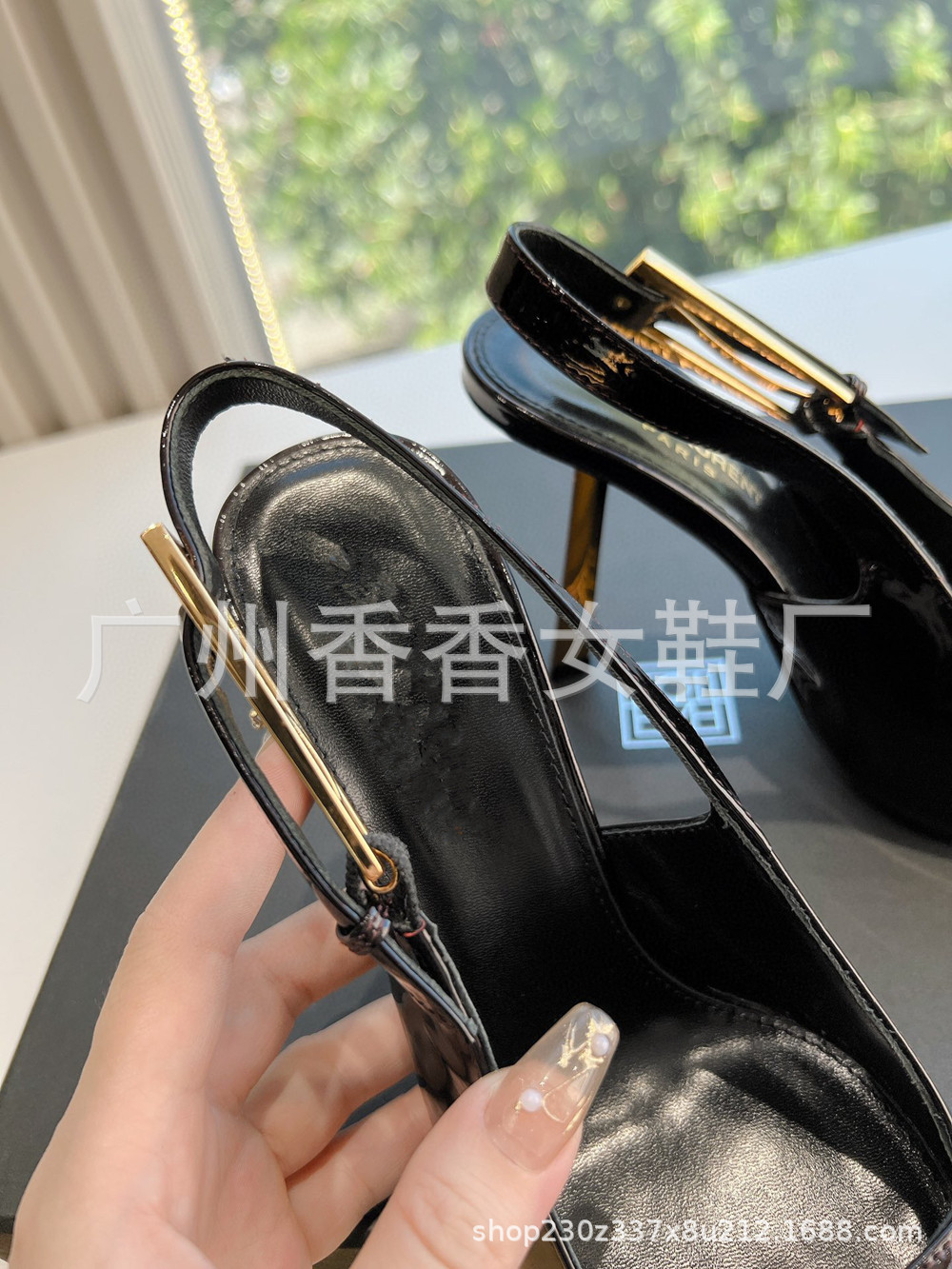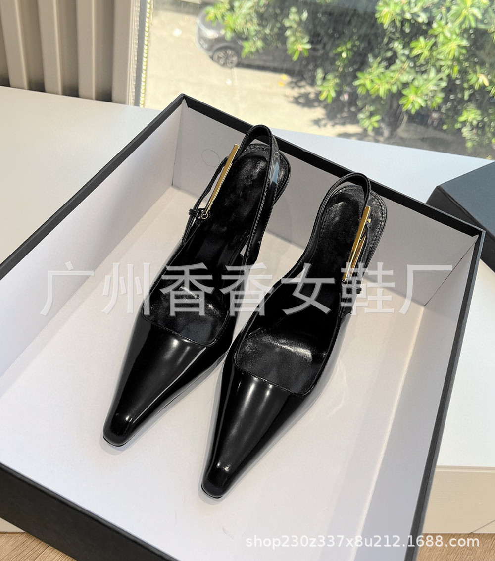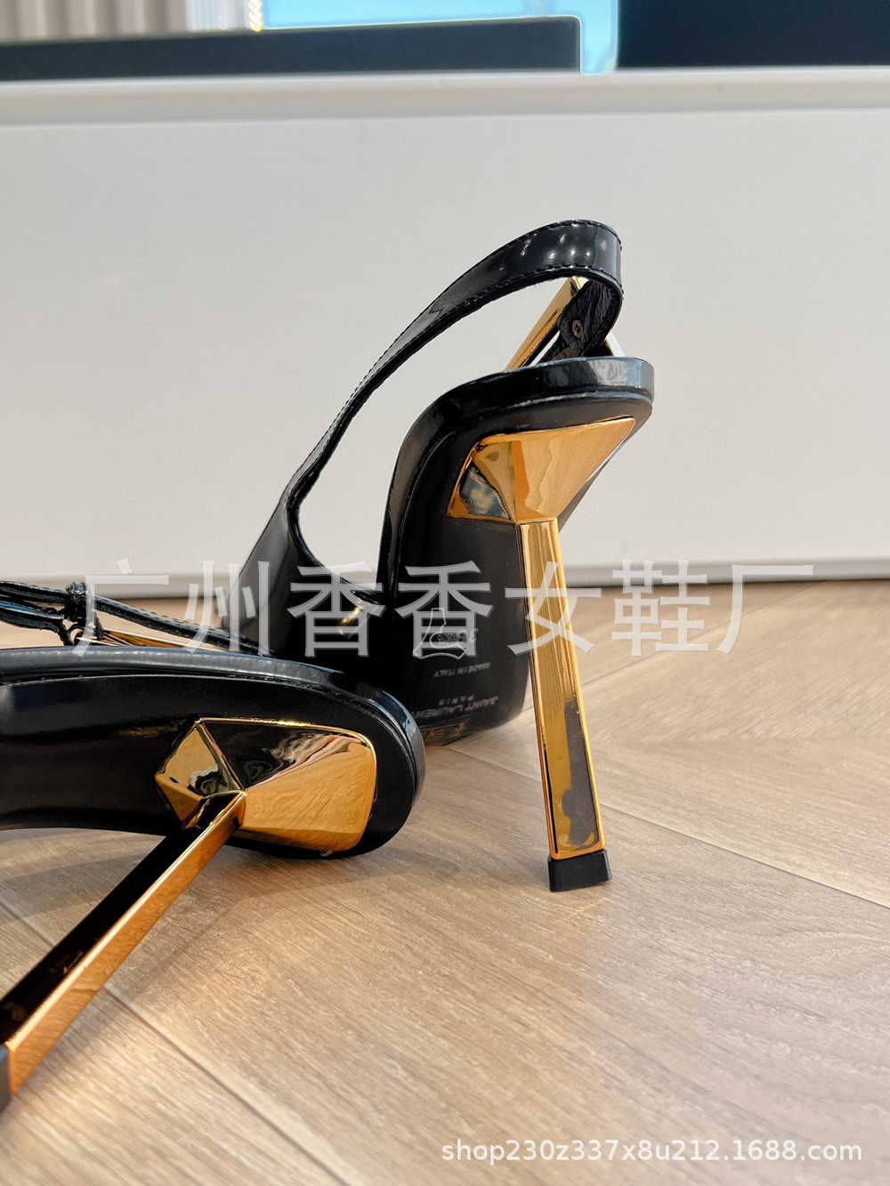 Nazha 하이힐 여성 2025 새로운 블랙 특허 가죽 우아한 싱글 레이어 신발 작은 골드 스트립 스틸레토 힐 포인팅 샌들 여성스토어 가기