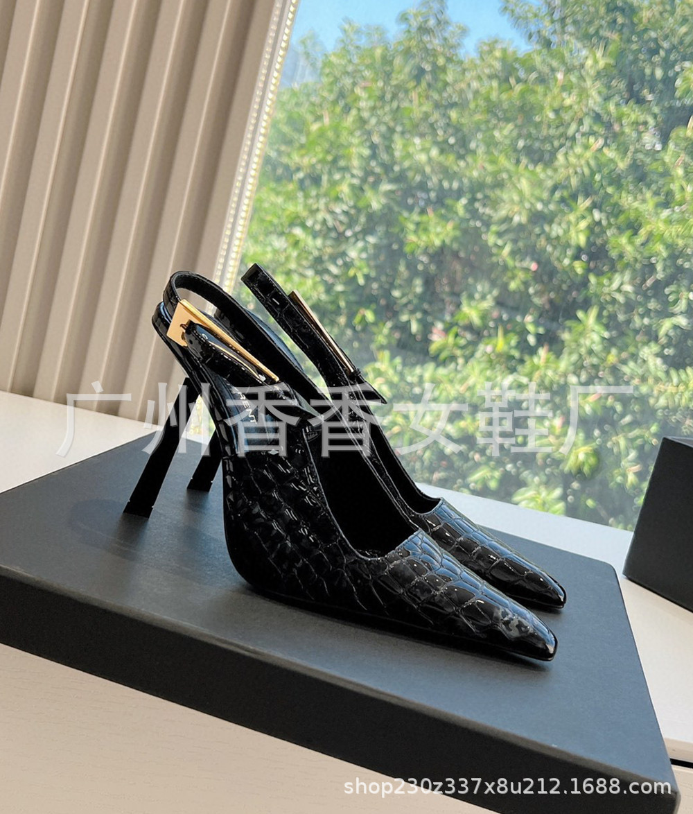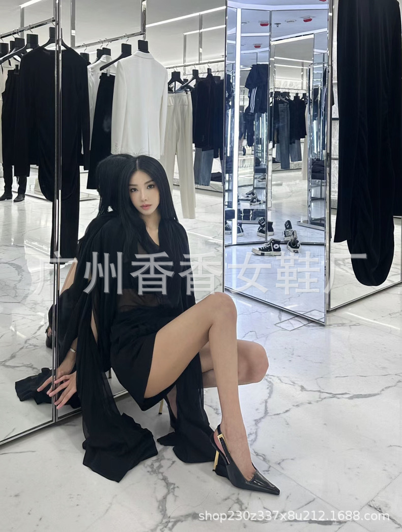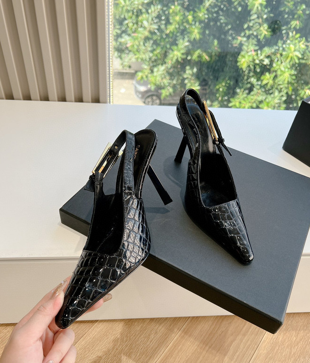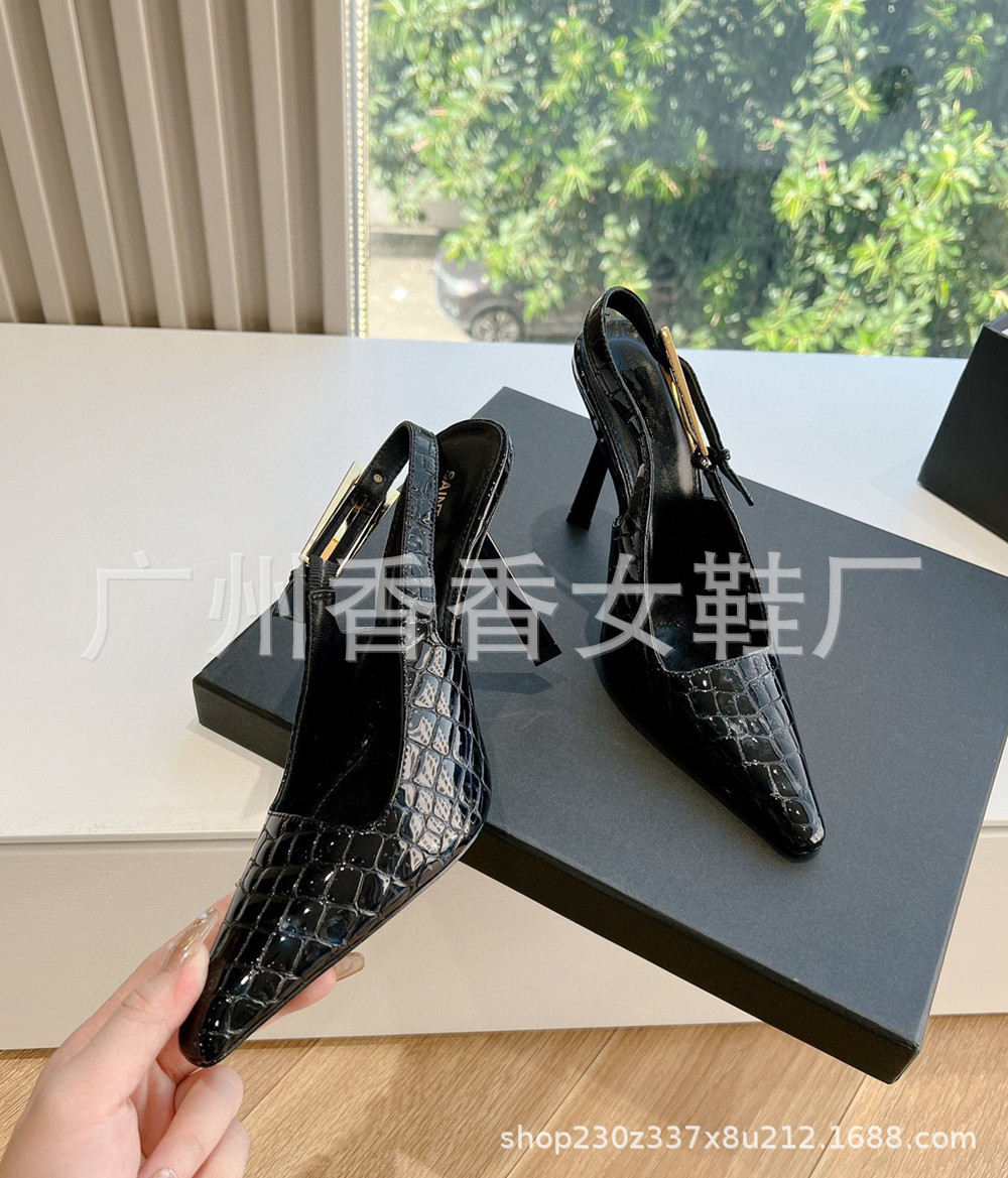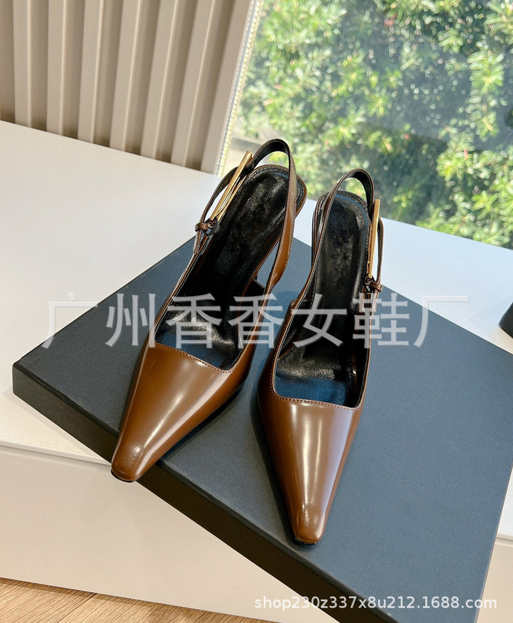 Nazha 하이힐 여성 2025 새로운 블랙 특허 가죽 우아한 싱글 레이어 신발 작은 골드 스트립 스틸레토 힐 포인팅 샌들 여성스토어 가기