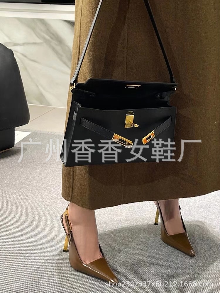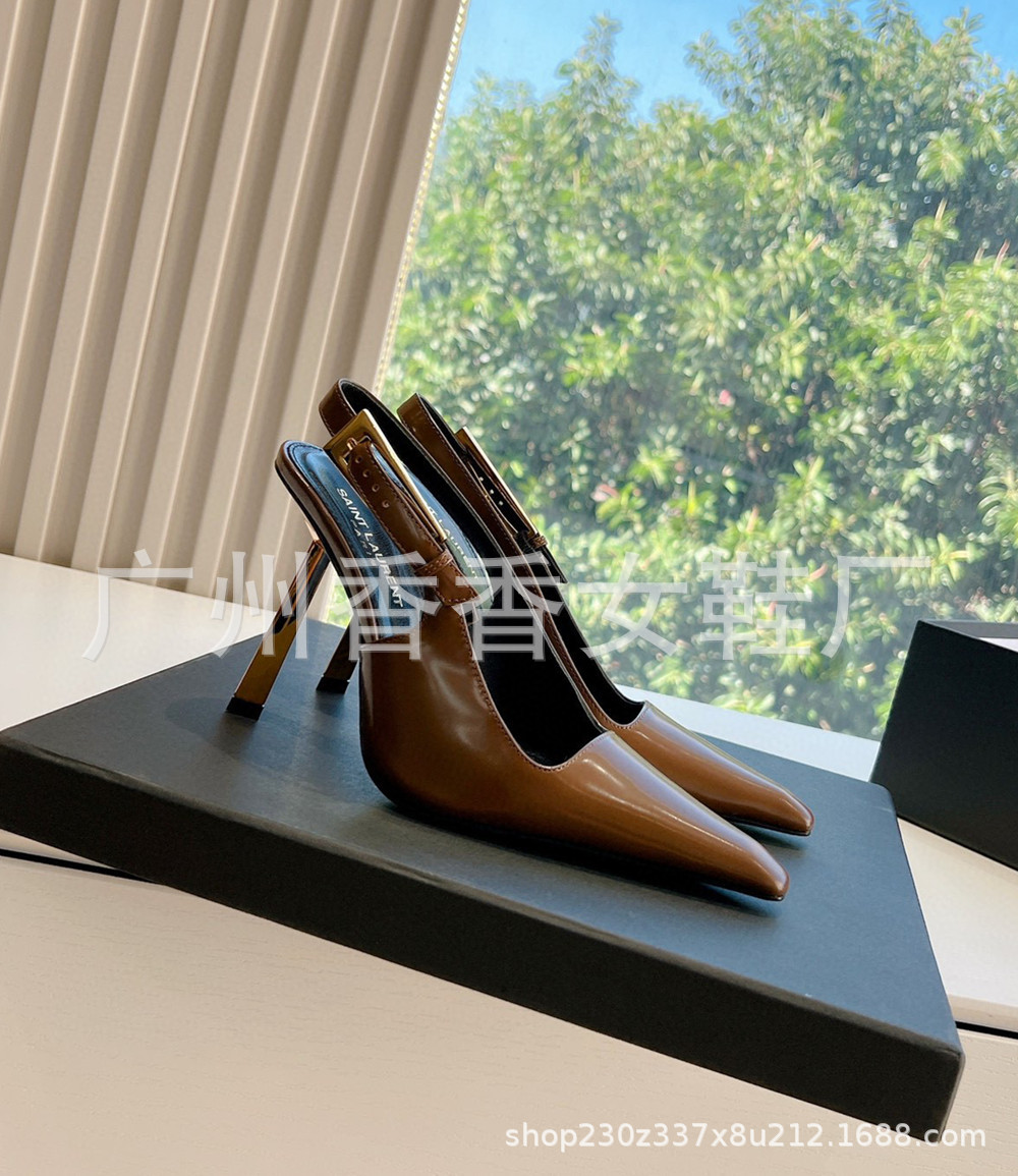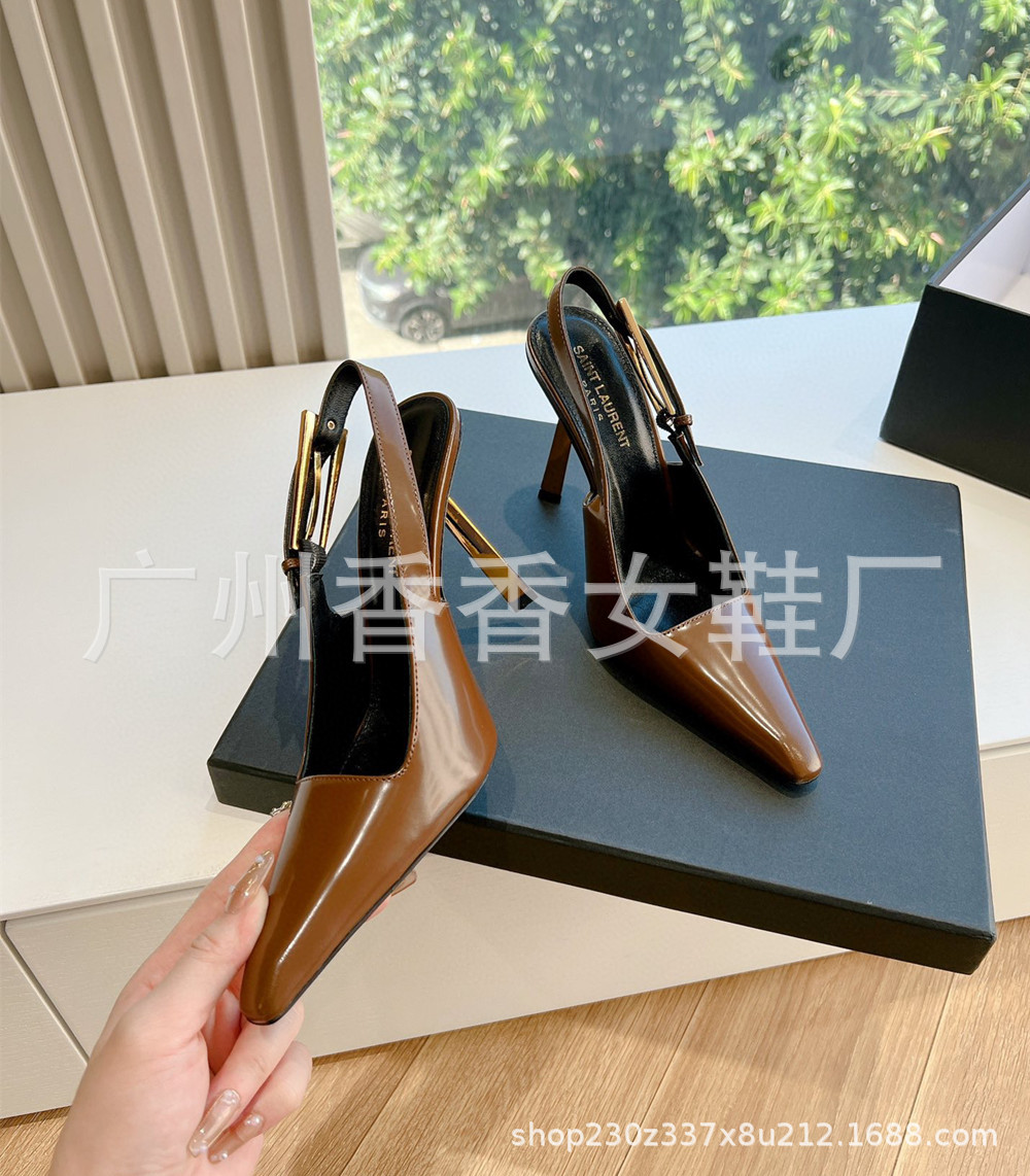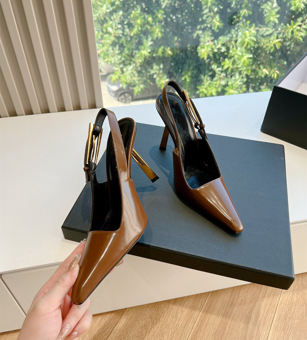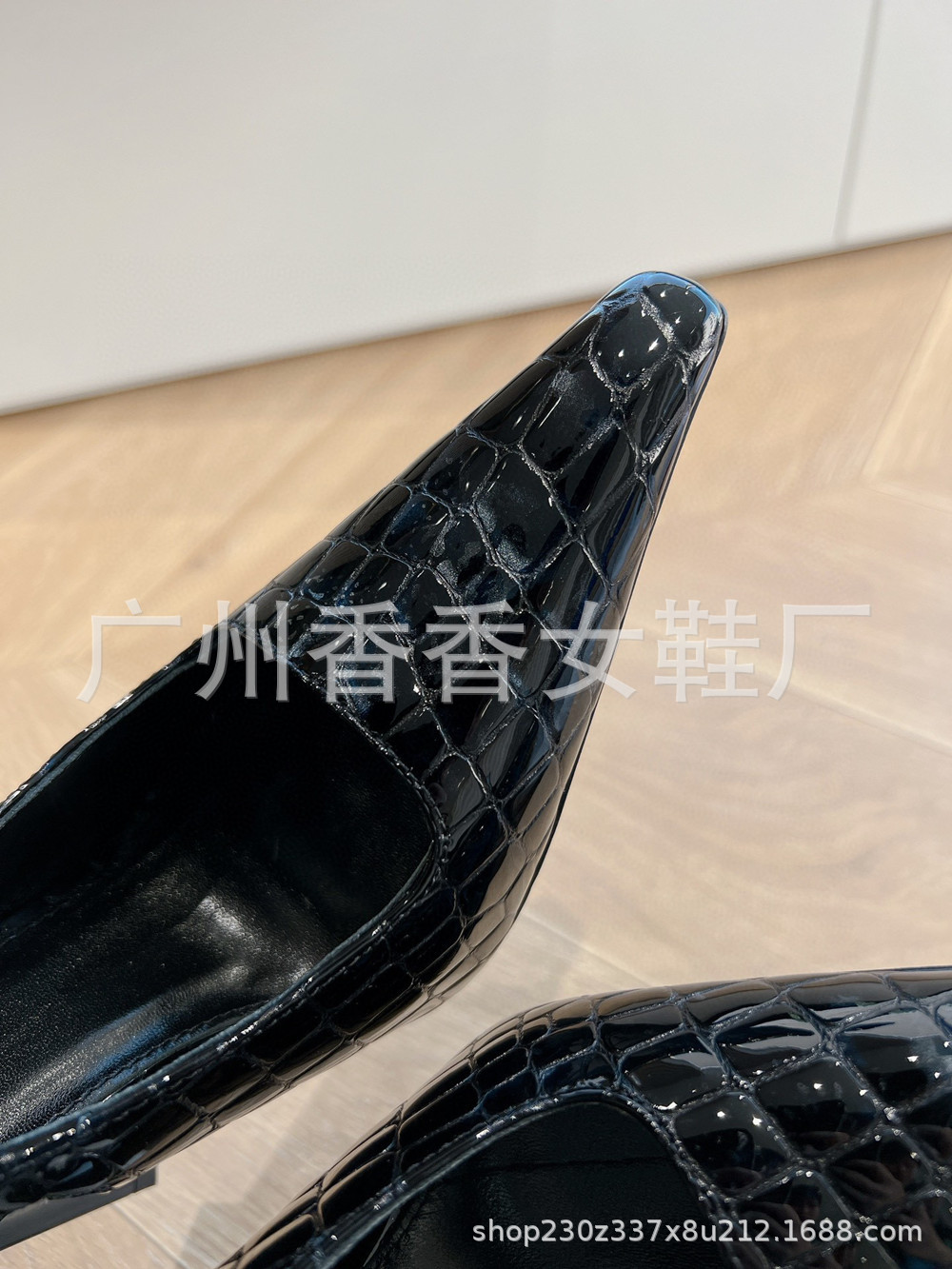 Nazha 하이힐 여성 2025 새로운 블랙 특허 가죽 우아한 싱글 레이어 신발 작은 골드 스트립 스틸레토 힐 포인팅 샌들 여성스토어 가기
