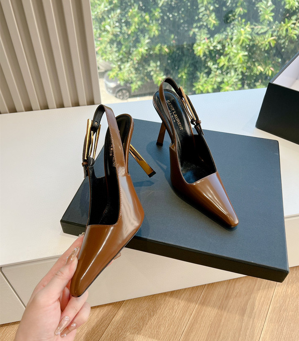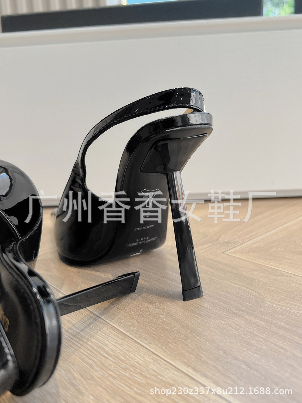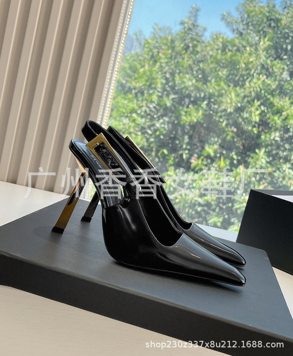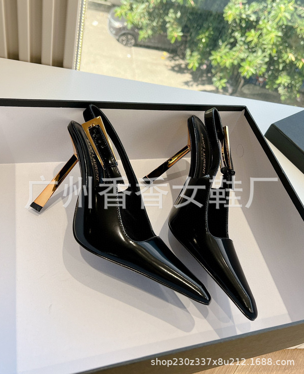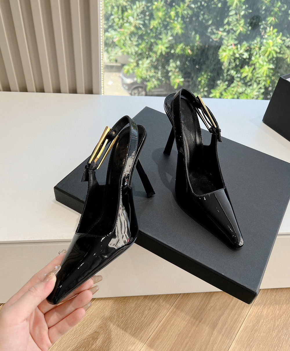 • 페이턴트 가죽 블랙 골드 힐-9cm