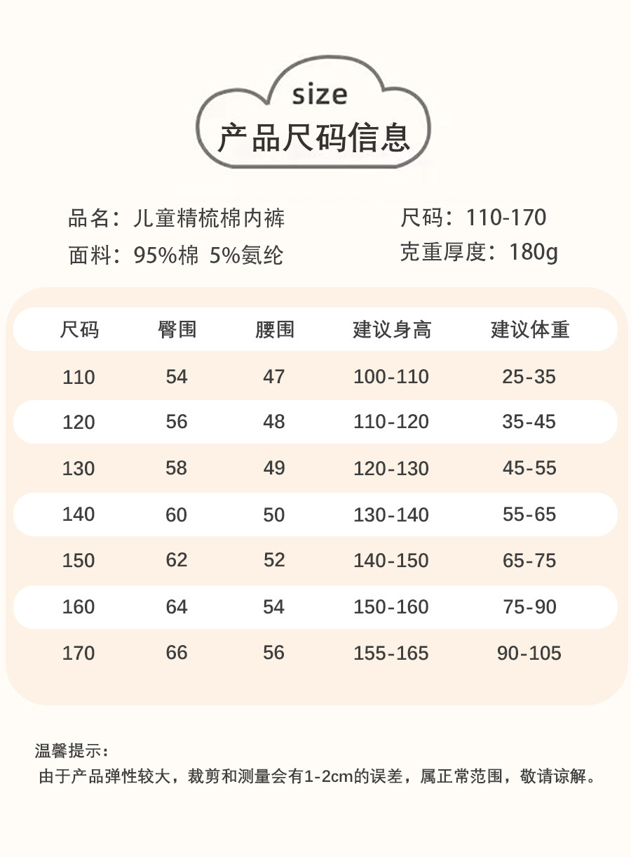 内裤尺码表
