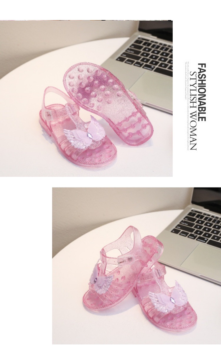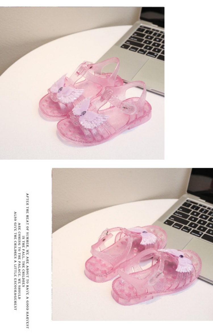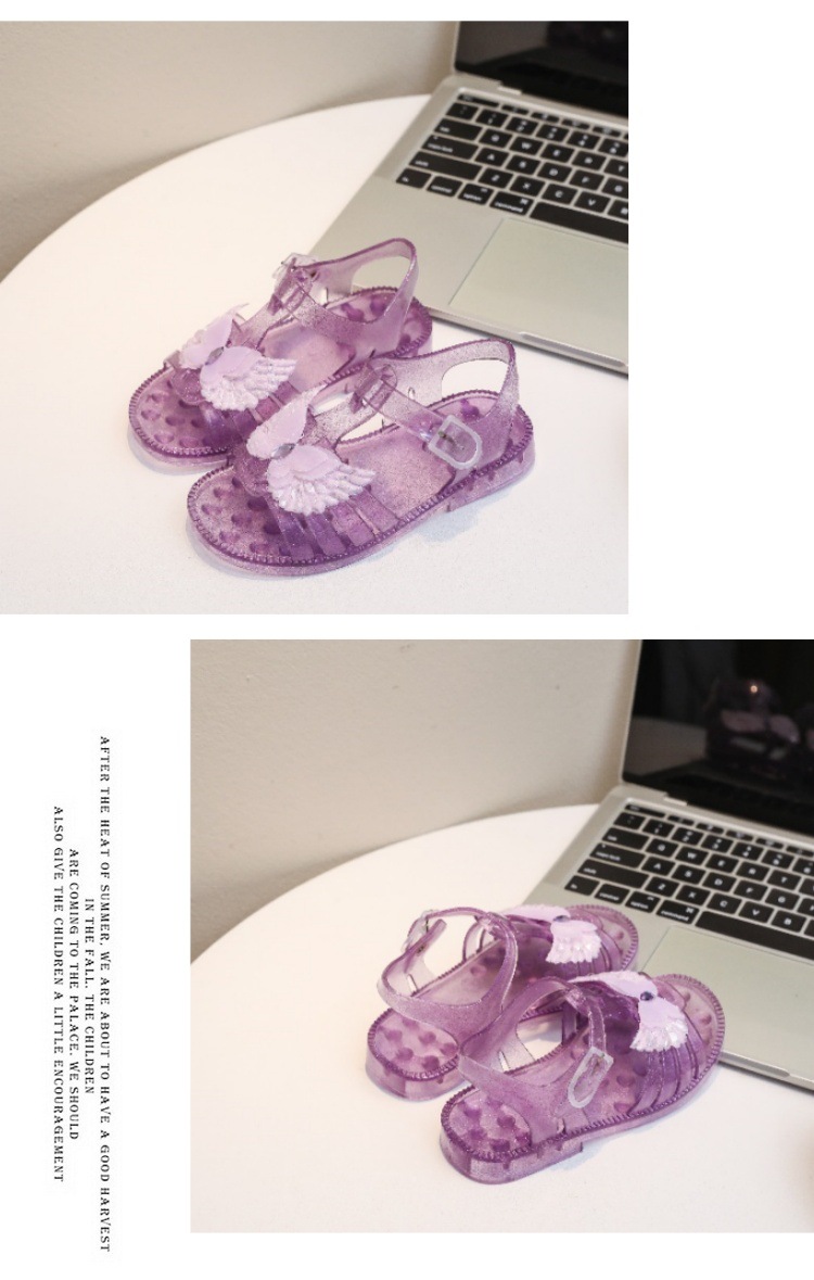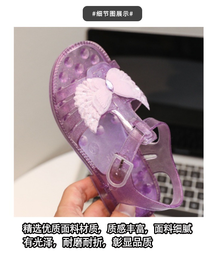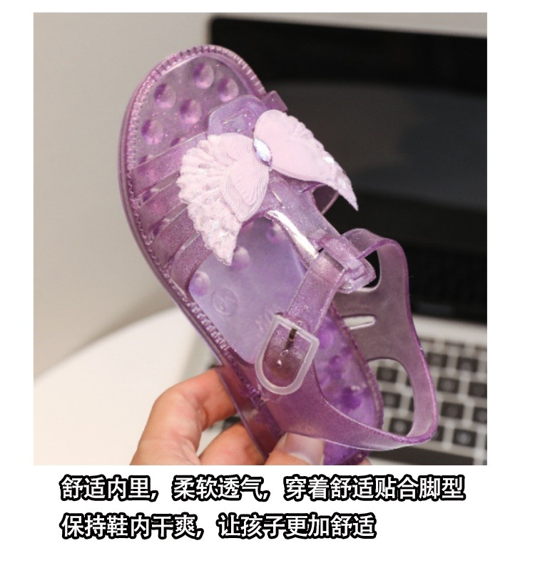 2025 여름 새 소녀 샌들 세련된 요정 공주 젤리 샌들 미끄럼 방지 소프트 단독 어린이 오픈 발가락 비치 슈즈스토어 가기