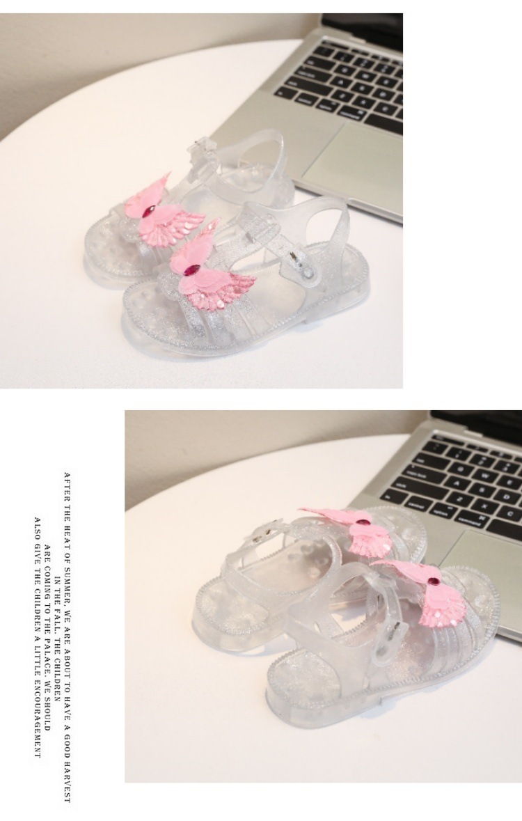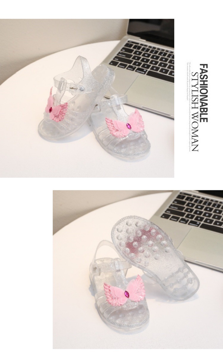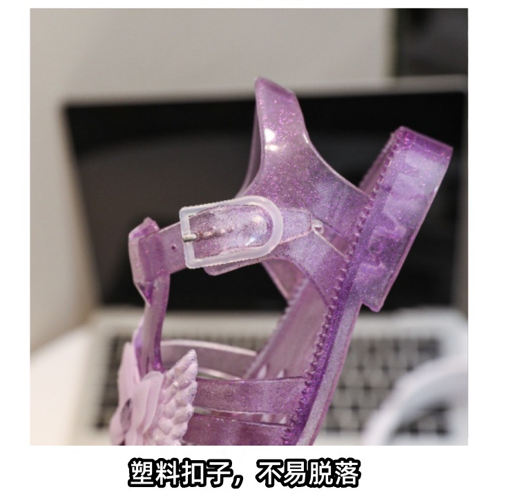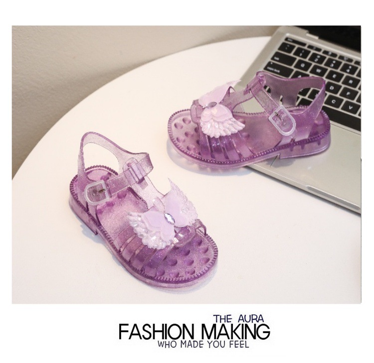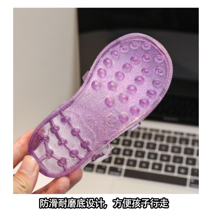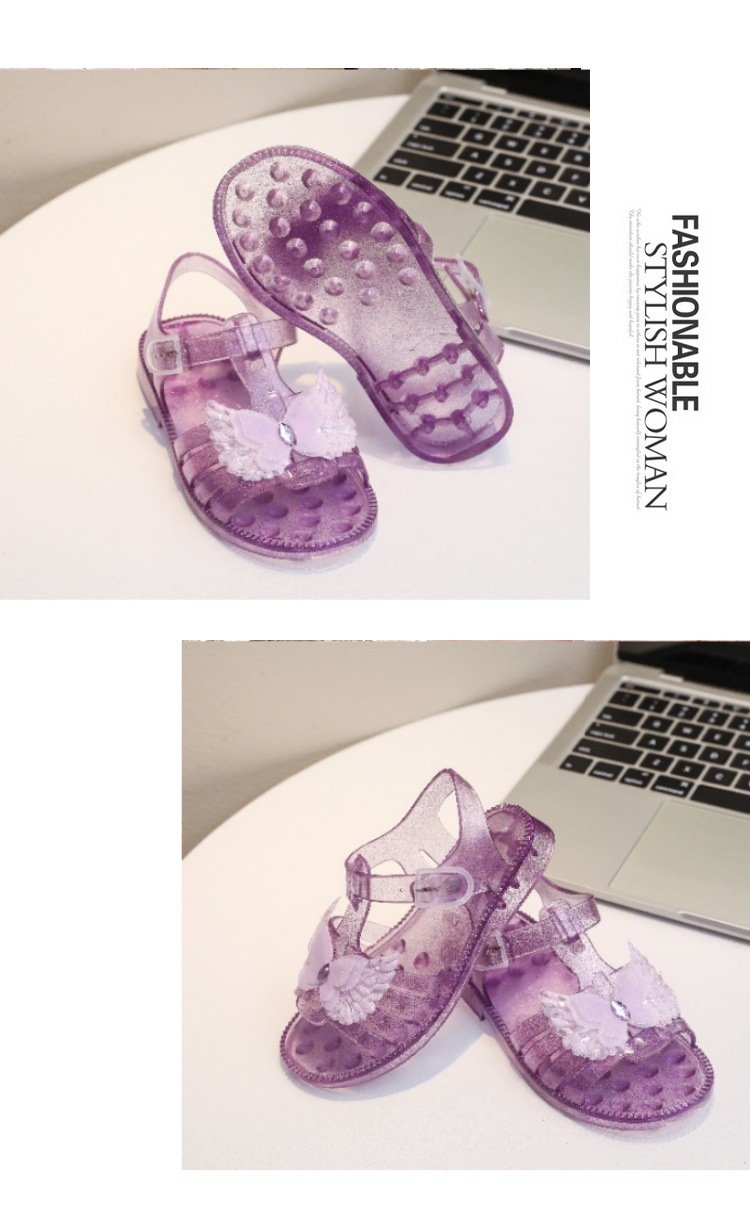 2025 여름 새 소녀 샌들 세련된 요정 공주 젤리 샌들 미끄럼 방지 소프트 단독 어린이 오픈 발가락 비치 슈즈스토어 가기