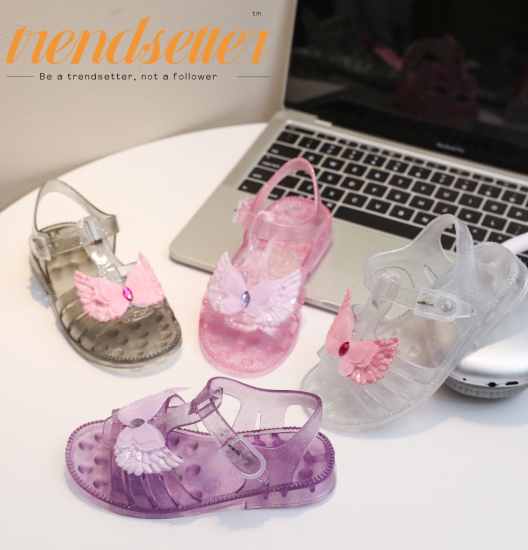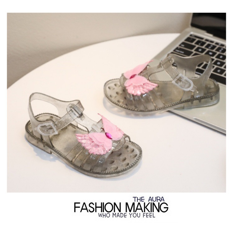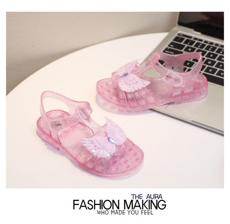 2025 여름 새 소녀 샌들 세련된 요정 공주 젤리 샌들 미끄럼 방지 소프트 단독 어린이 오픈 발가락 비치 슈즈