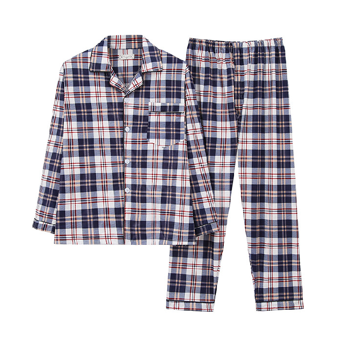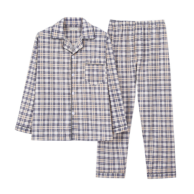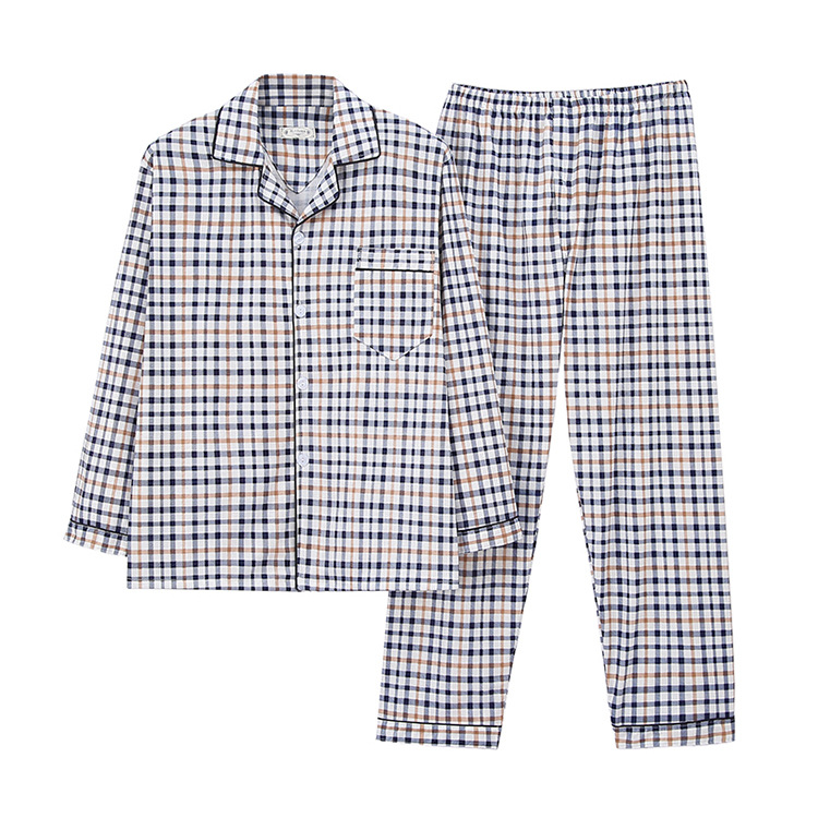 중년 및 노인 아빠의 세트 카디건 엔티티를위한 니트 코튼 가을 잠옷 남성용 긴팔 양면 고품질 코튼 홈 의류
