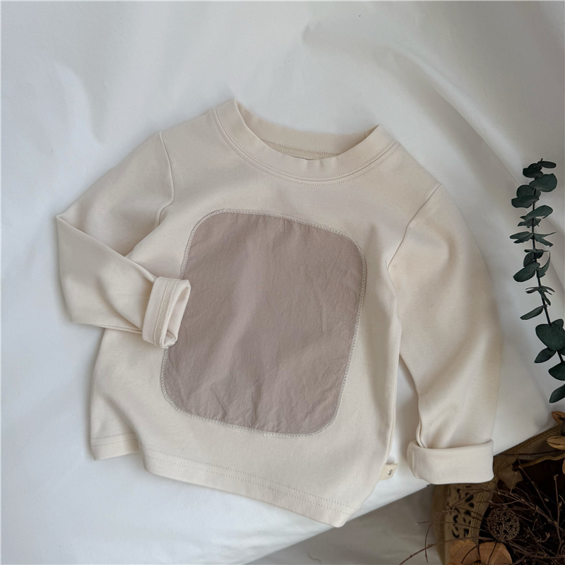 GL-kids 한국 스타일 가을 새로운 어린이 컬러 블록 패치 긴팔 티셔츠 남성과 여성 아기 순수 코튼 캐주얼 바닥 셔츠