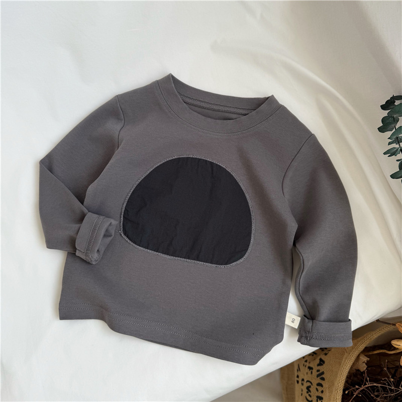 GL-kids 한국 스타일 가을 새로운 어린이 컬러 블록 패치 긴팔 티셔츠 남성과 여성 아기 순수 코튼 캐주얼 바닥 셔츠스토어 가기