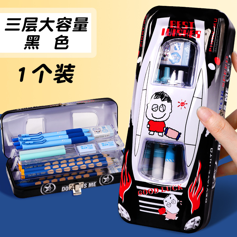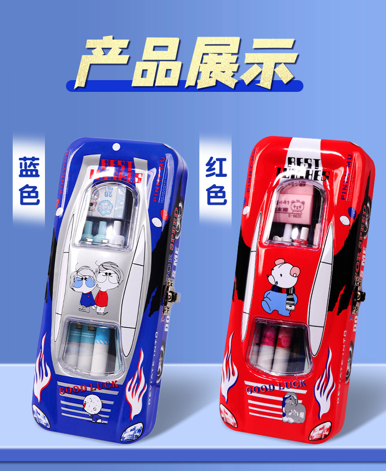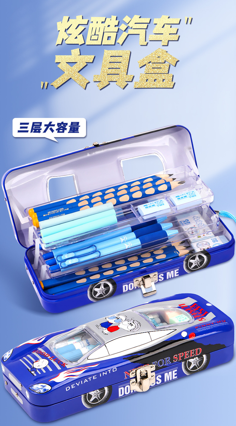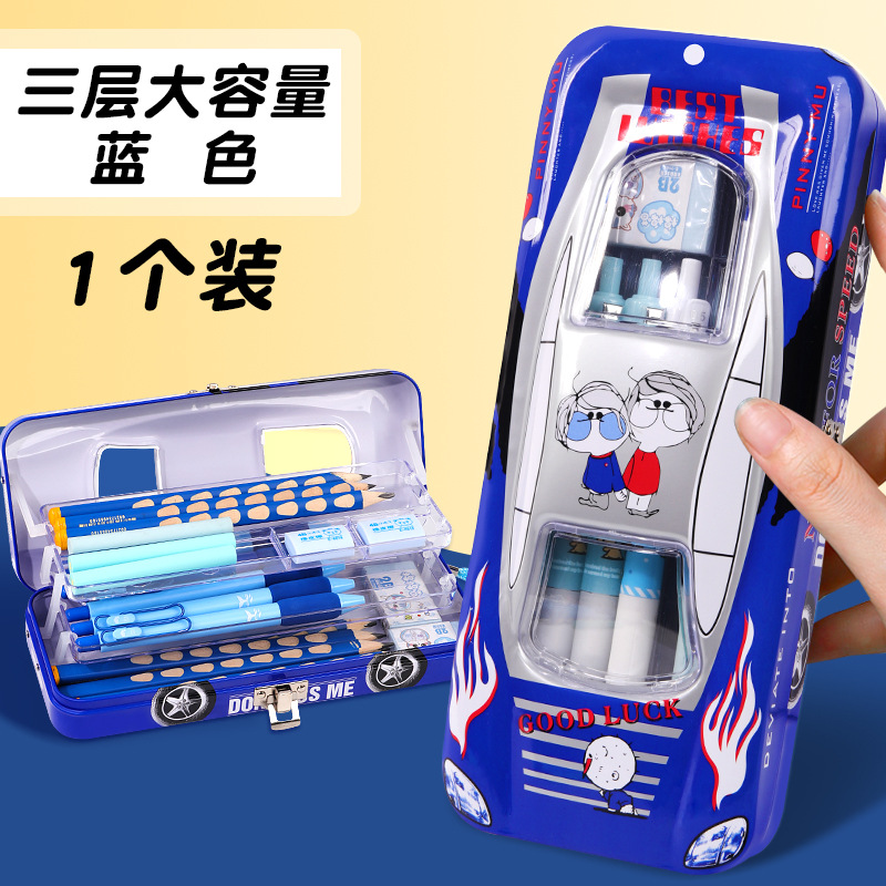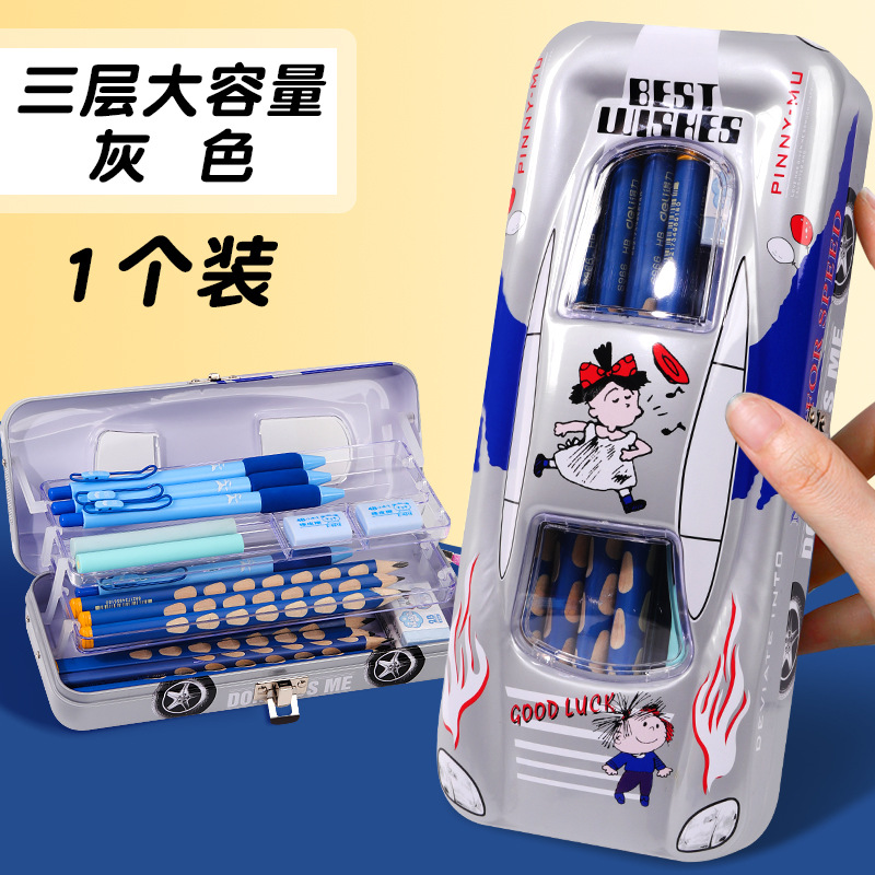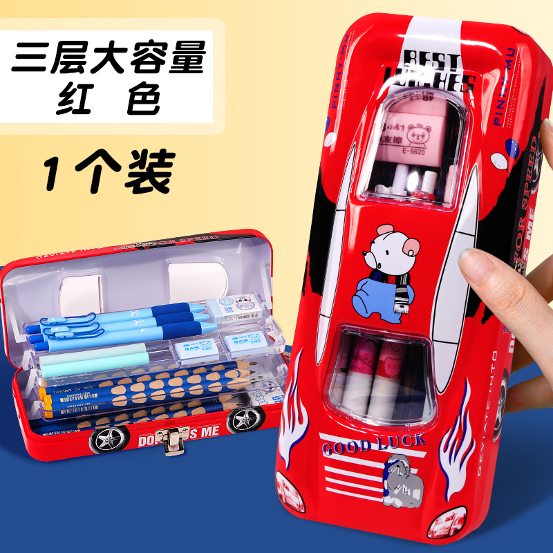 초등학생 어린이와 소년을위한 잠금 문구 상자가있는 다기능 자동차 모양의 철 대용량 기계 멋진 펜 상자스토어 가기