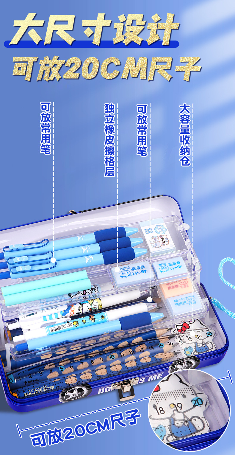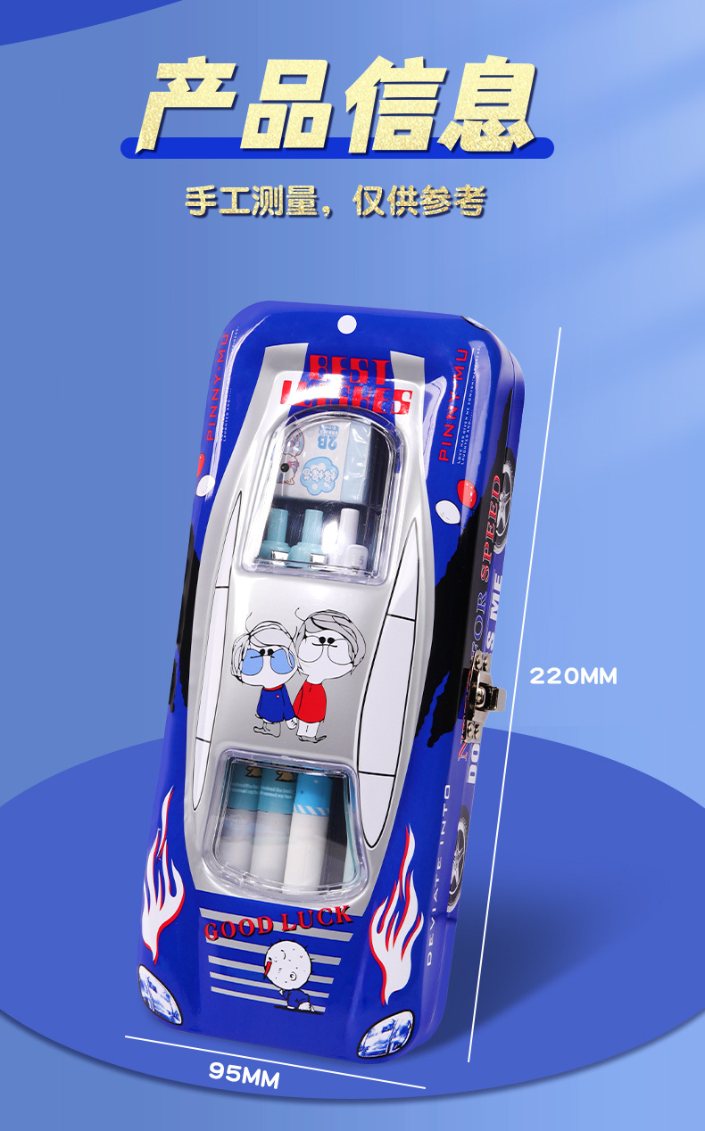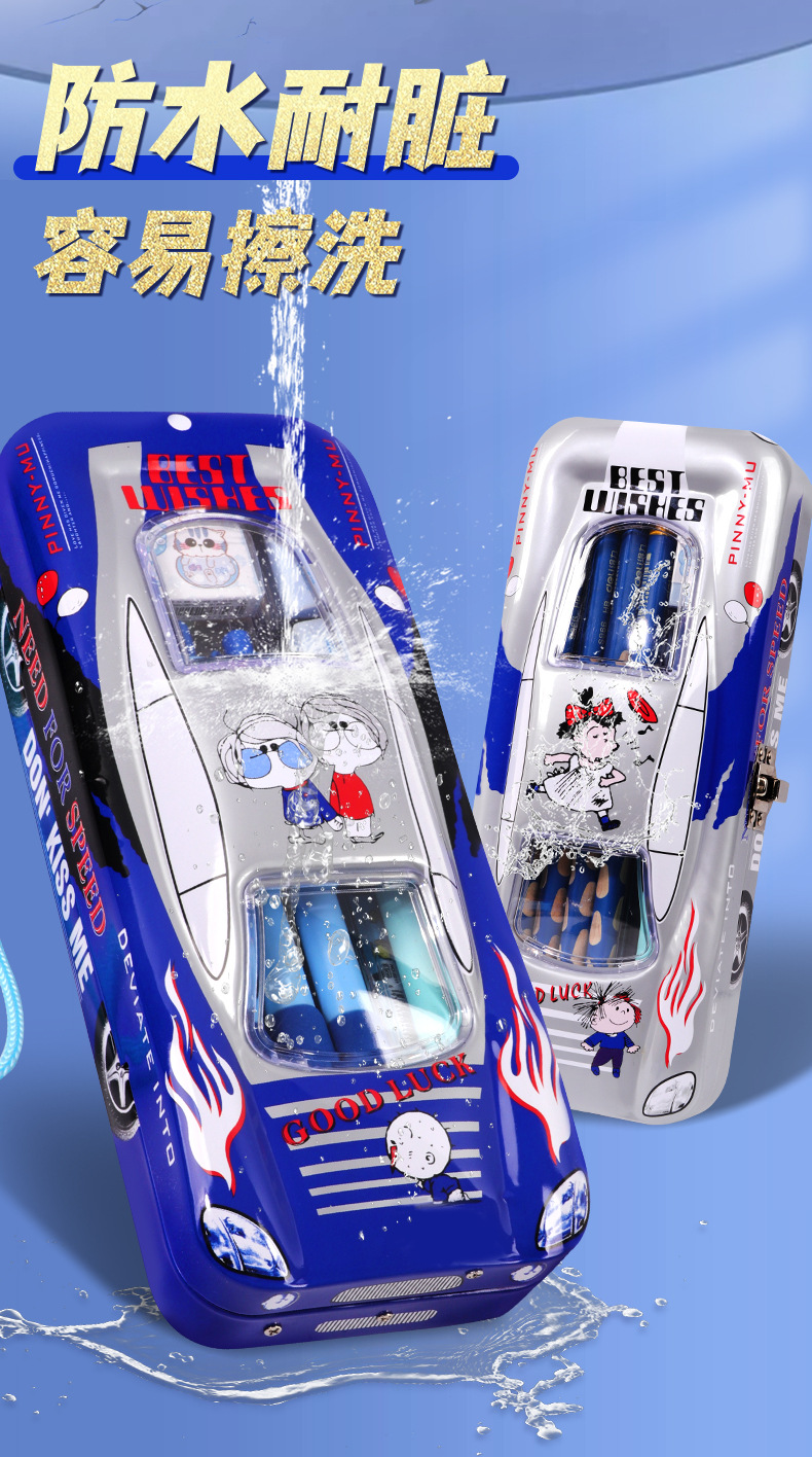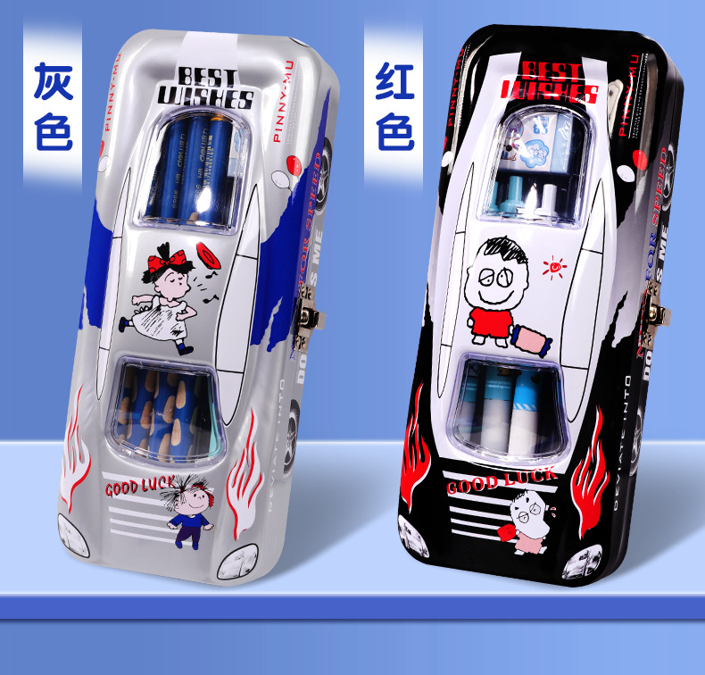 초등학생 어린이와 소년을위한 잠금 문구 상자가있는 다기능 자동차 모양의 철 대용량 기계 멋진 펜 상자스토어 가기