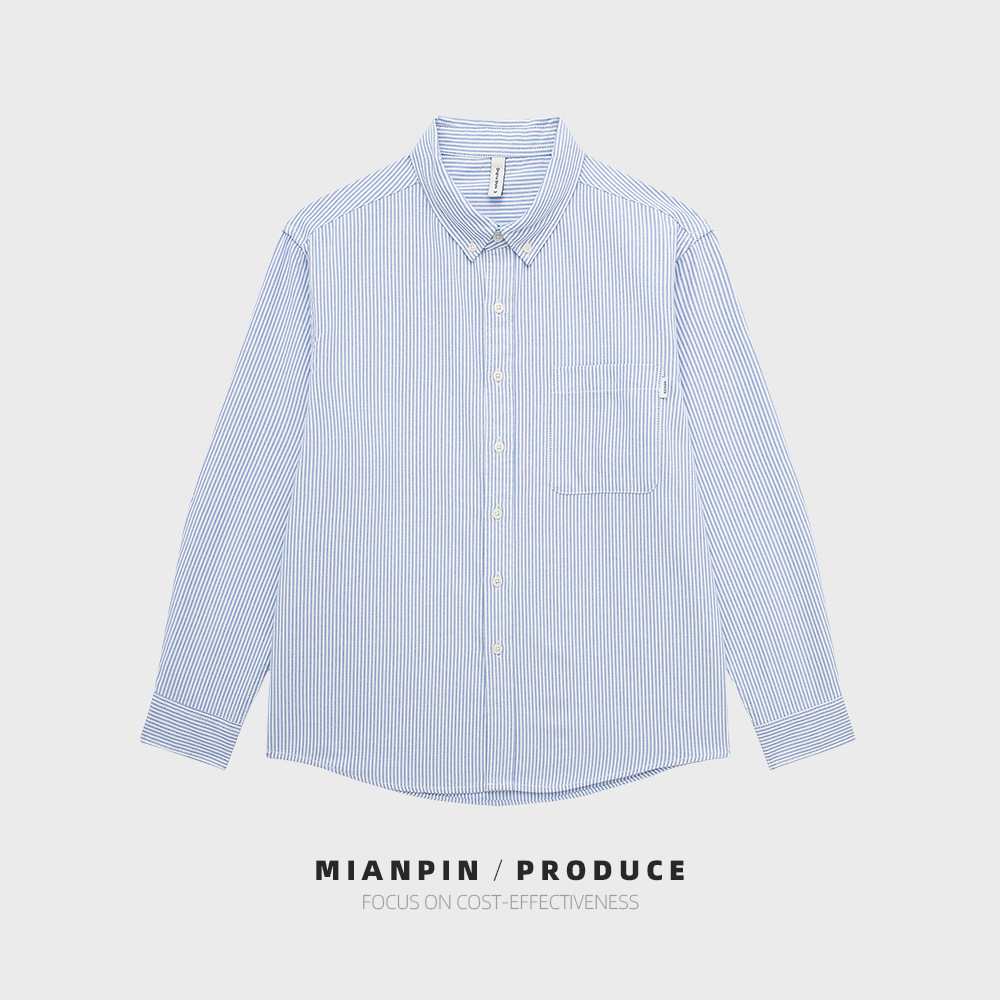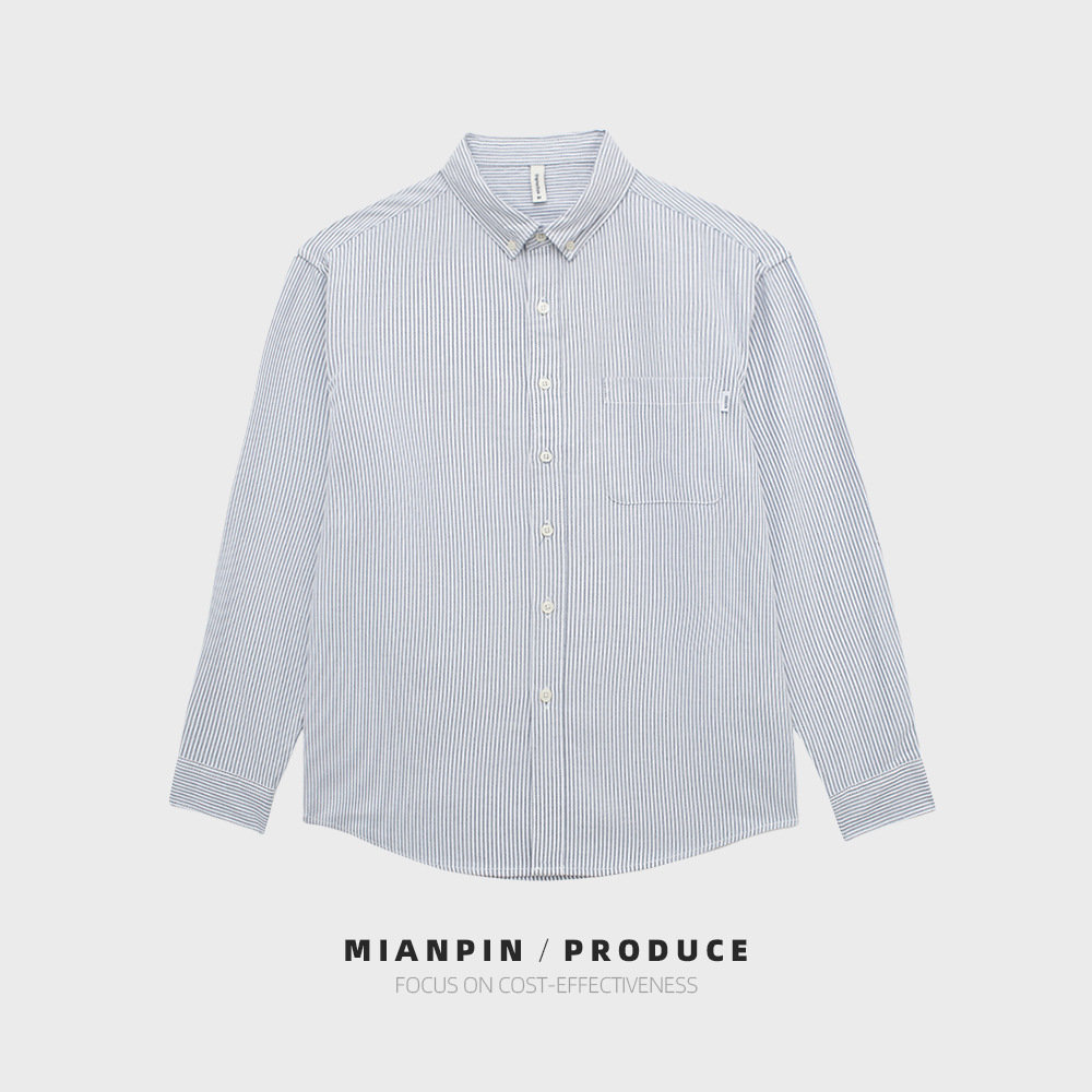 봄철 남성 긴팔 셔츠 세로 스트라이프 옥스퍼드 셔츠 살짝 루즈한 상의 D290 홍콩 스타일 트렌디 루즈핏