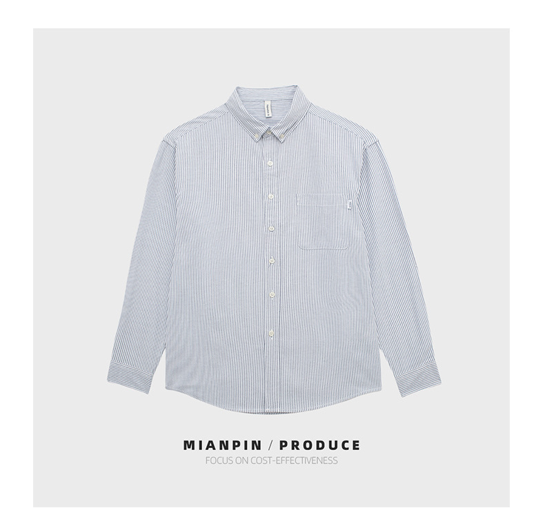 봄철 남성 긴팔 셔츠 세로 스트라이프 옥스퍼드 셔츠 살짝 루즈한 상의 D290 홍콩 스타일 트렌디 루즈핏스토어 가기