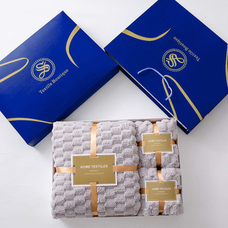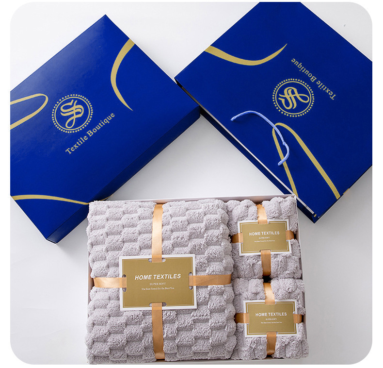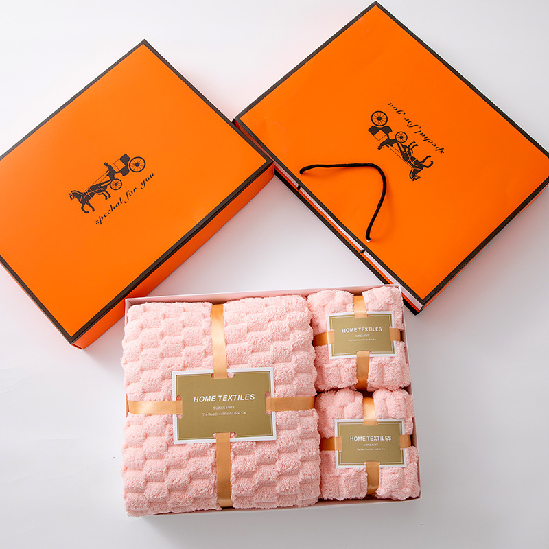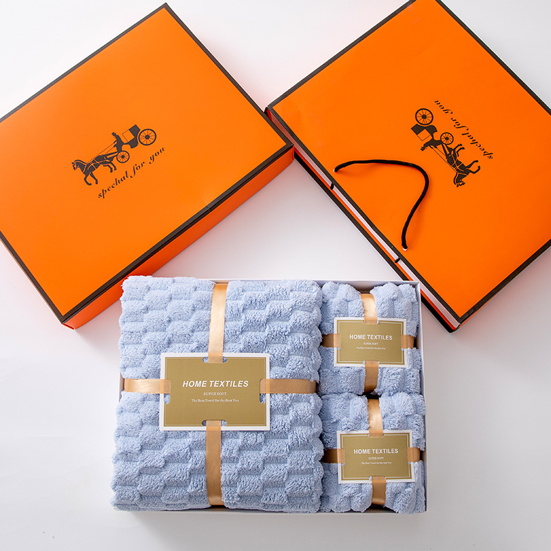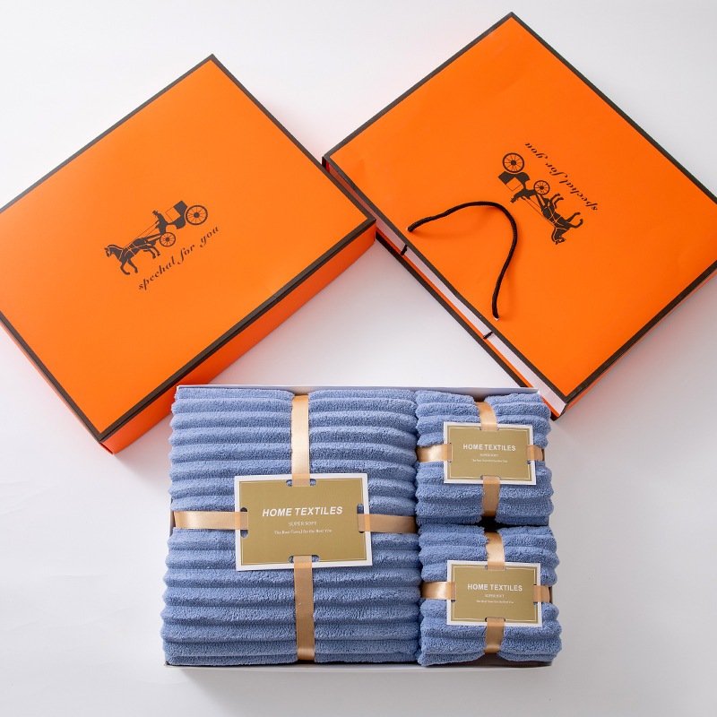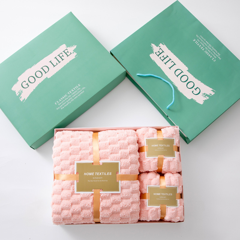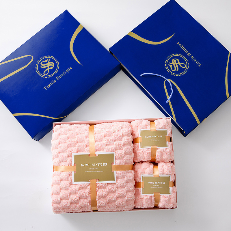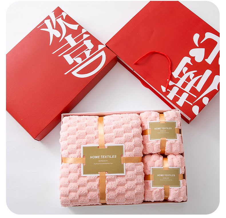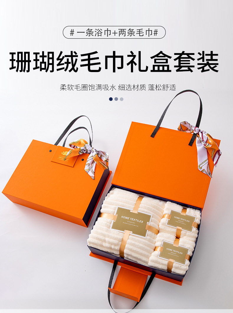 산호 벨벳 타월 3종 세트 선물 상자 맞춤형 기업 실용 기념품 세트 고급 선물 상자