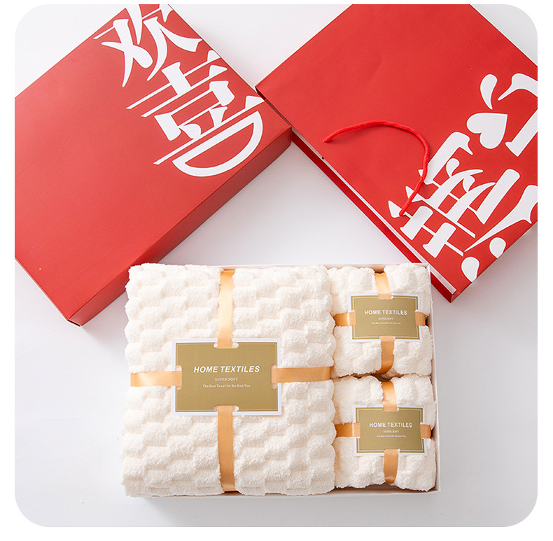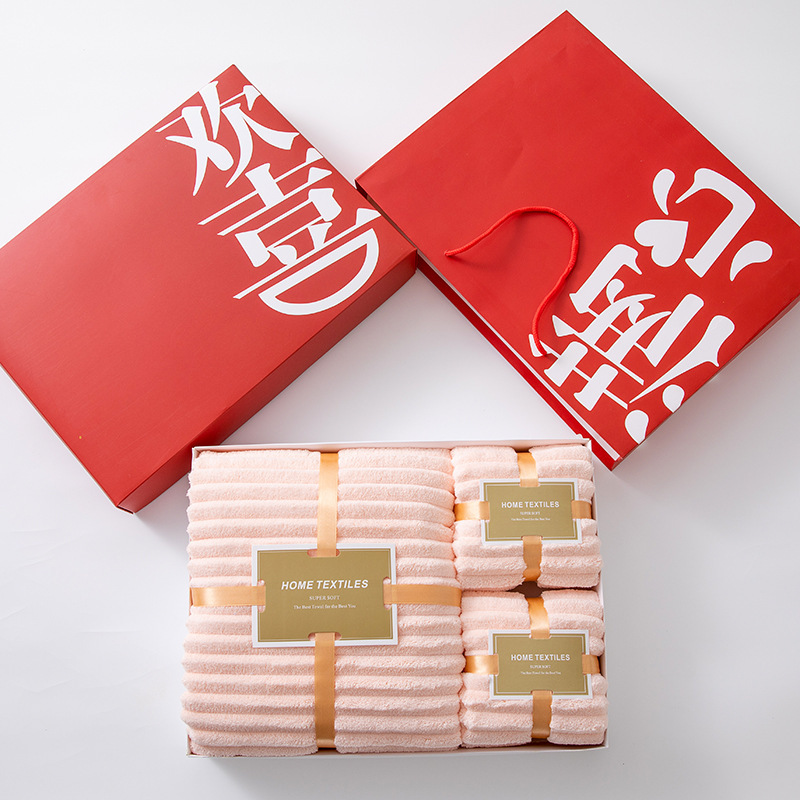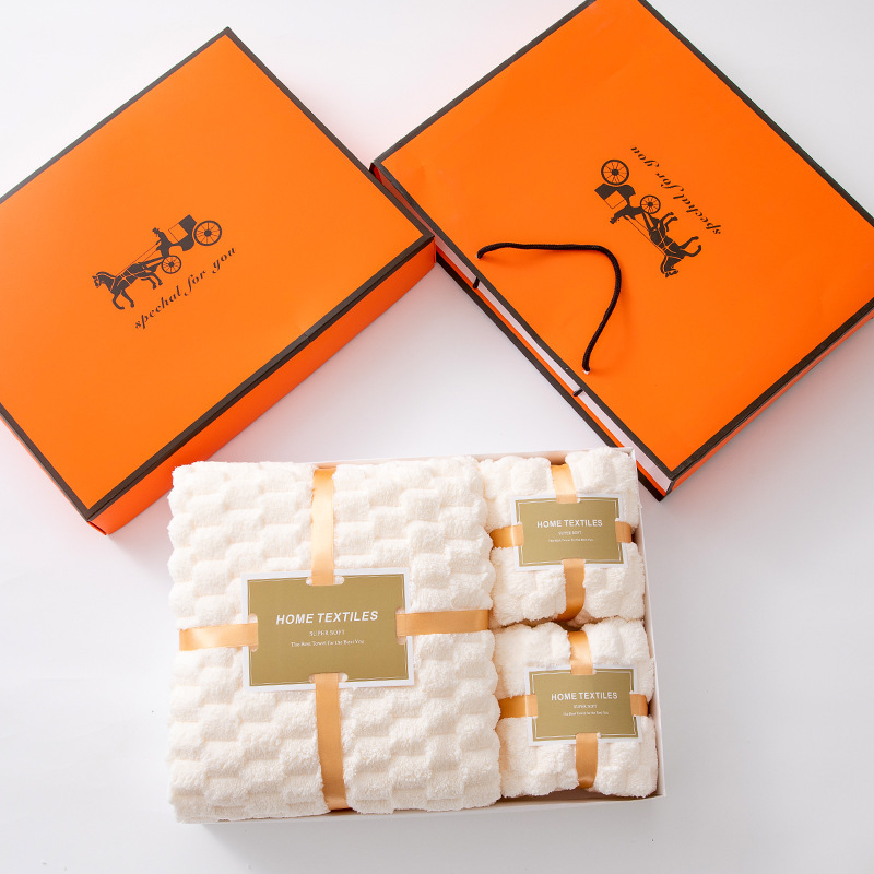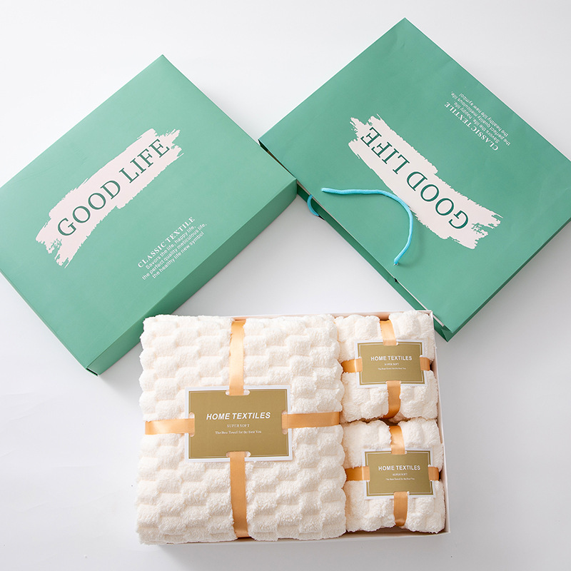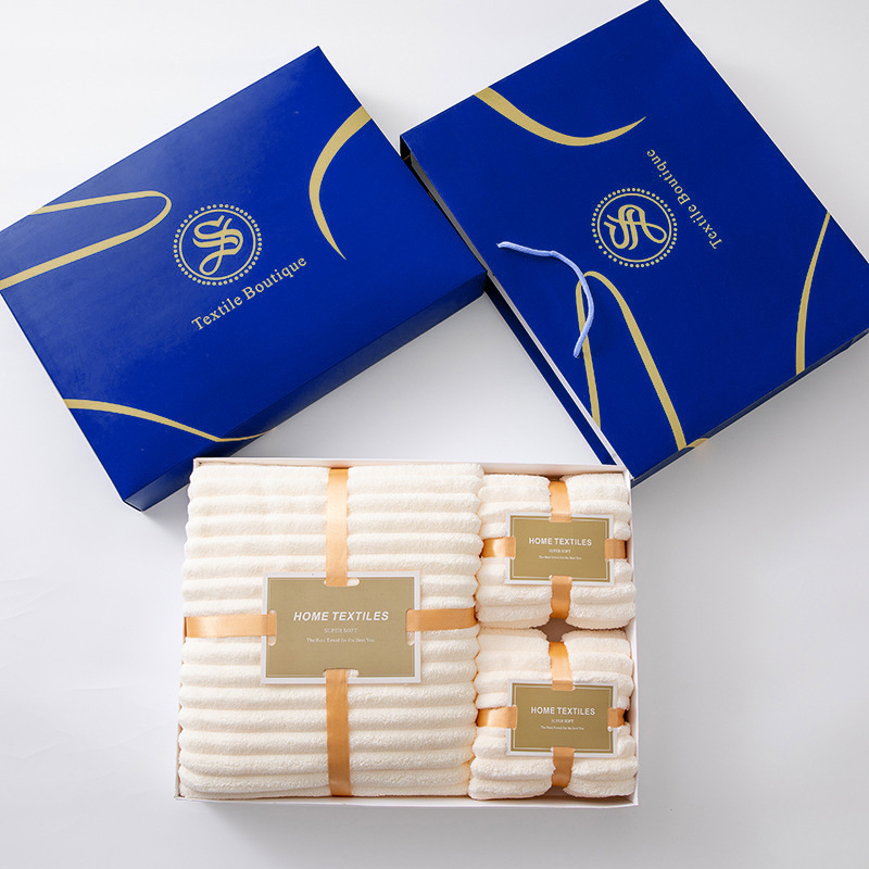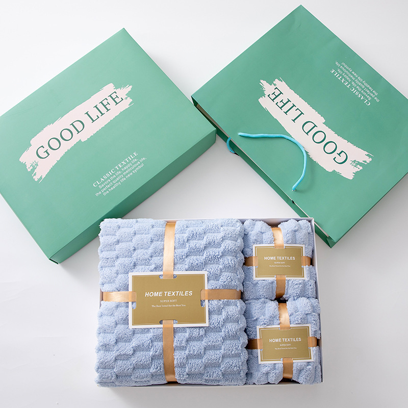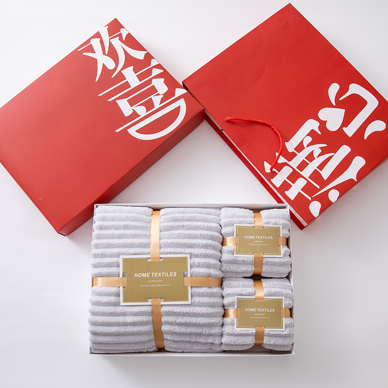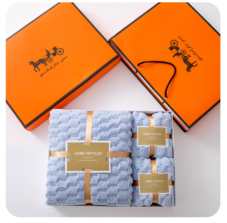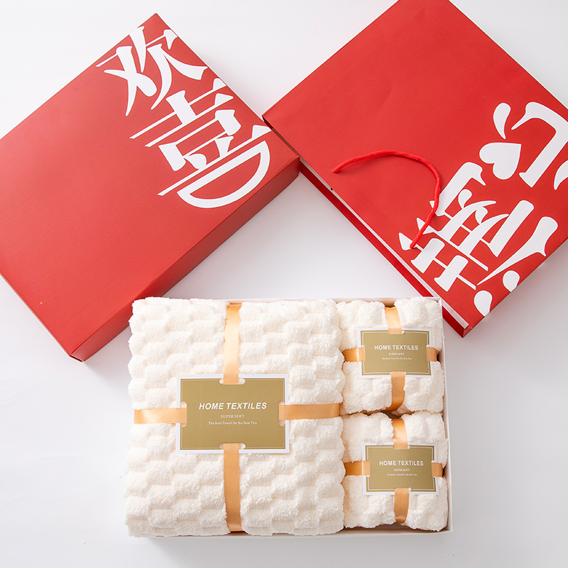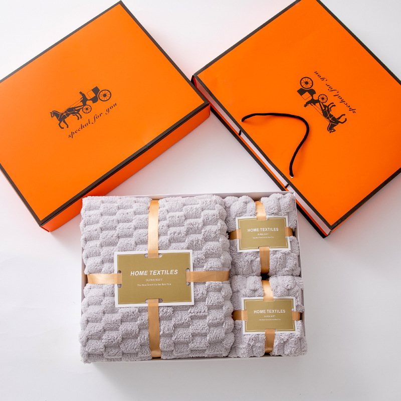 산호 벨벳 타월 3종 세트 선물 상자 맞춤형 기업 실용 기념품 세트 고급 선물 상자