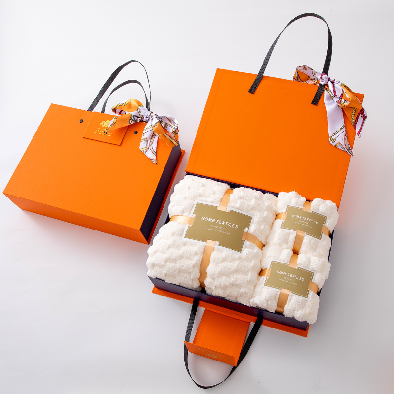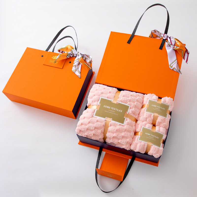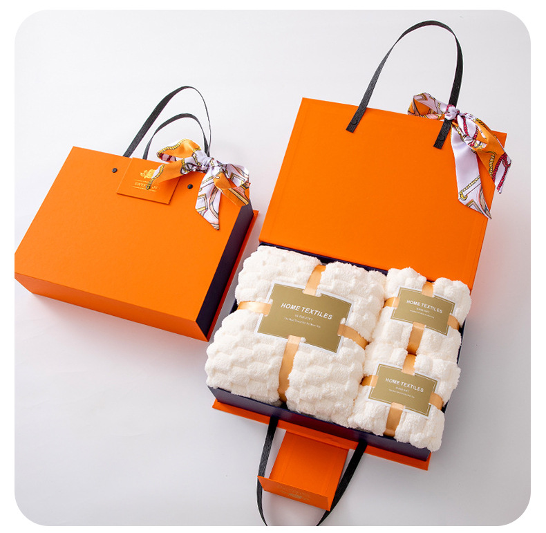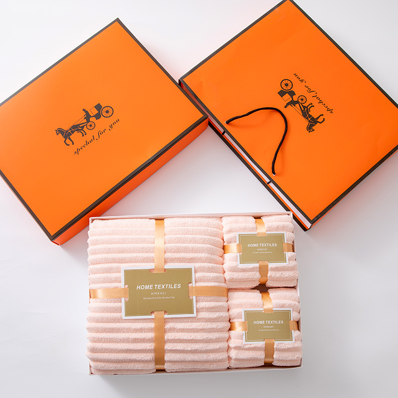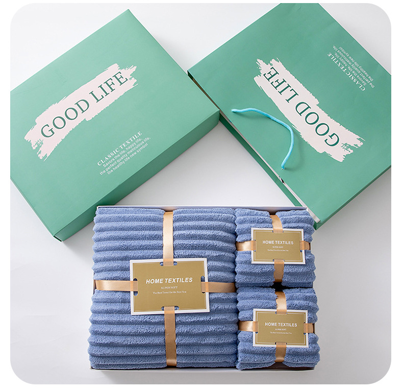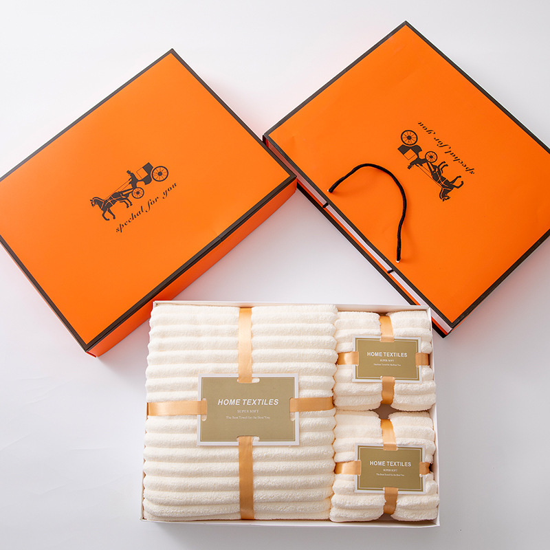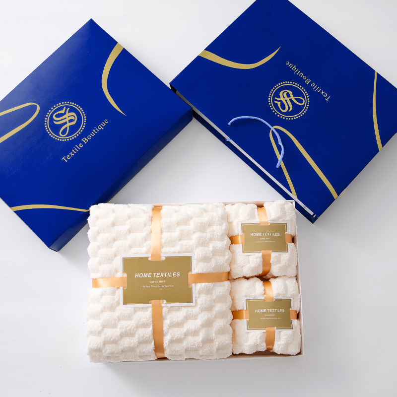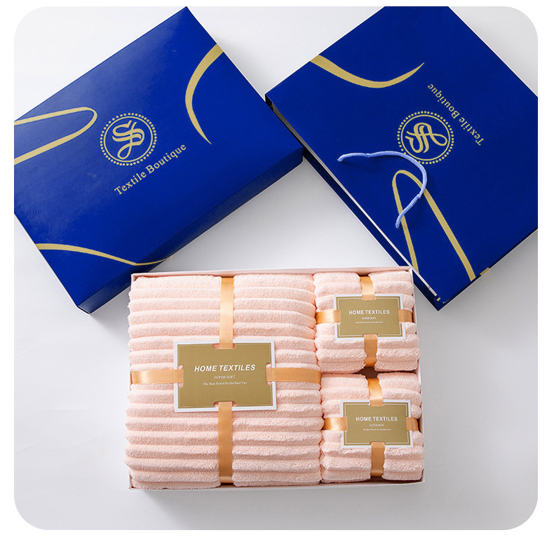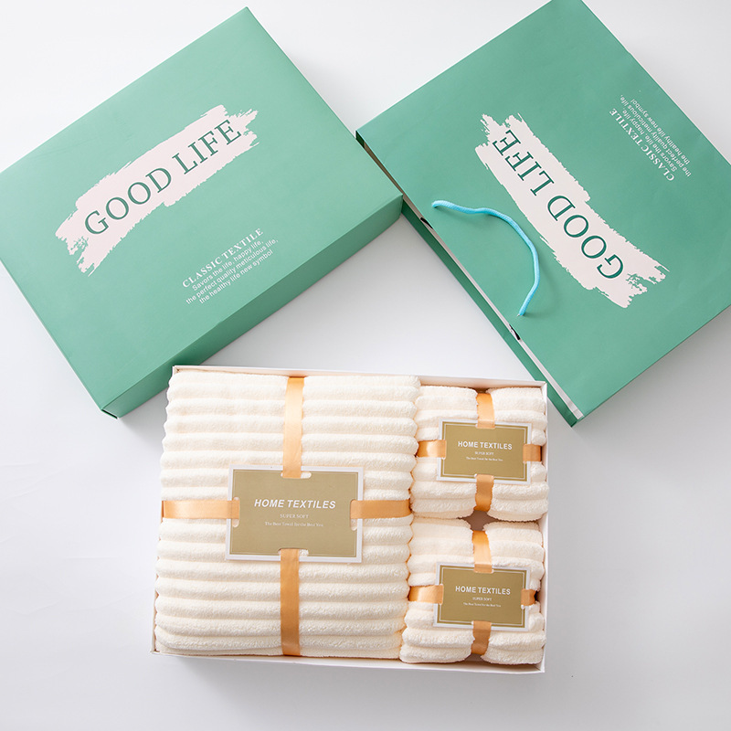 산호 벨벳 타월 3종 세트 선물 상자 맞춤형 기업 실용 기념품 세트 고급 선물 상자