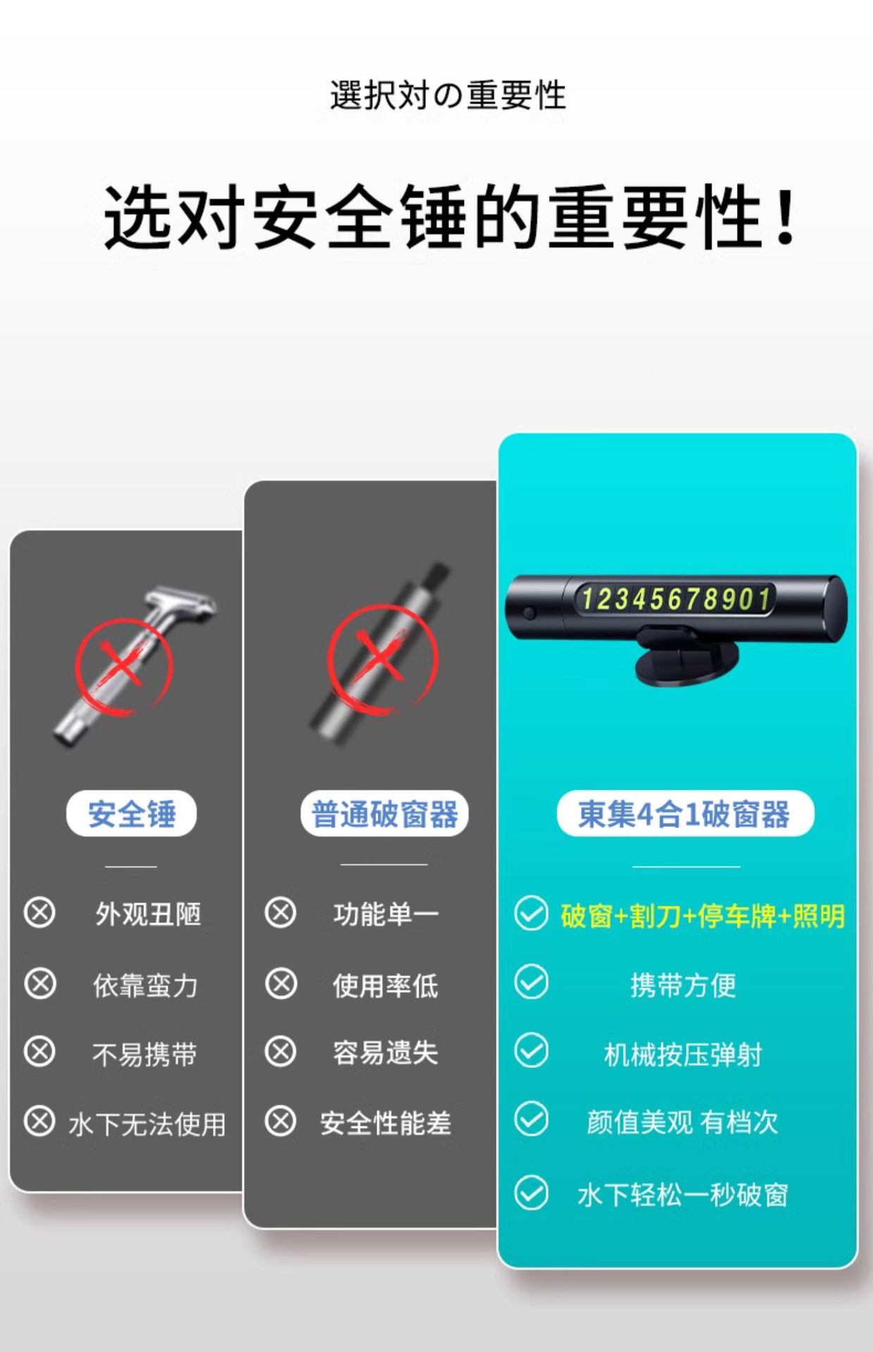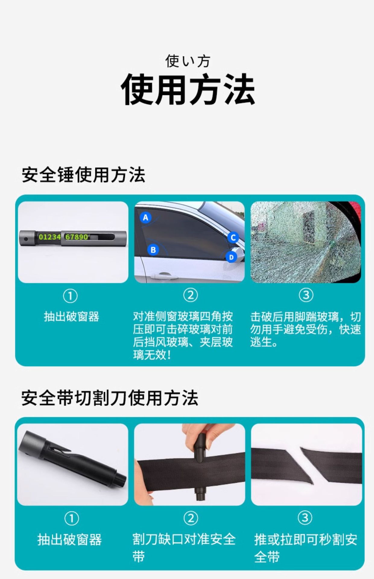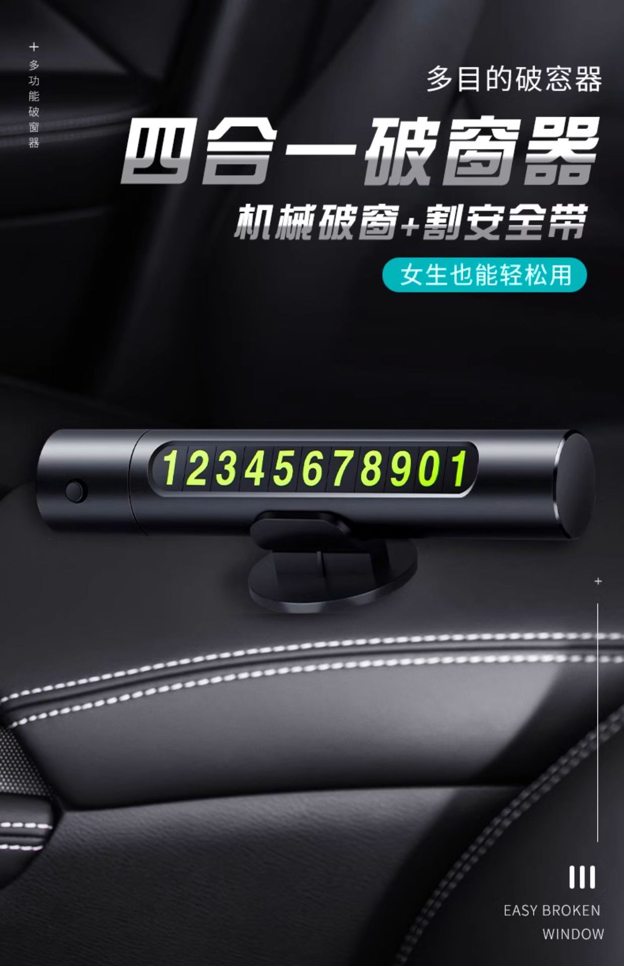 • 4-in-1 윈도우 브레이커 [클래식 블랙] 항공 합금★1초 만에 창문이 깨짐